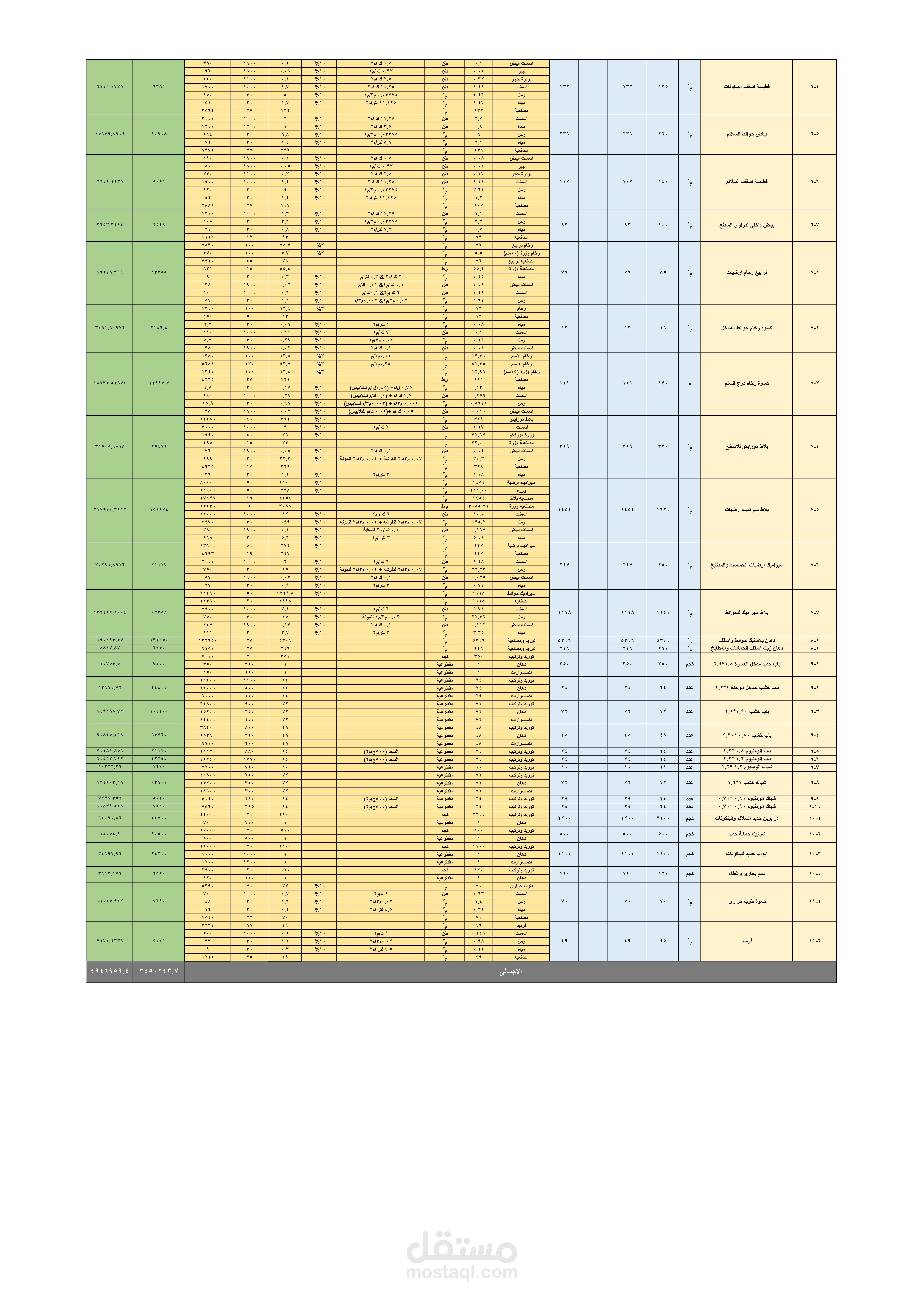 تحليل اسعار لمشروع انشاء عمارة سكنية بالمعادى - القاهرة