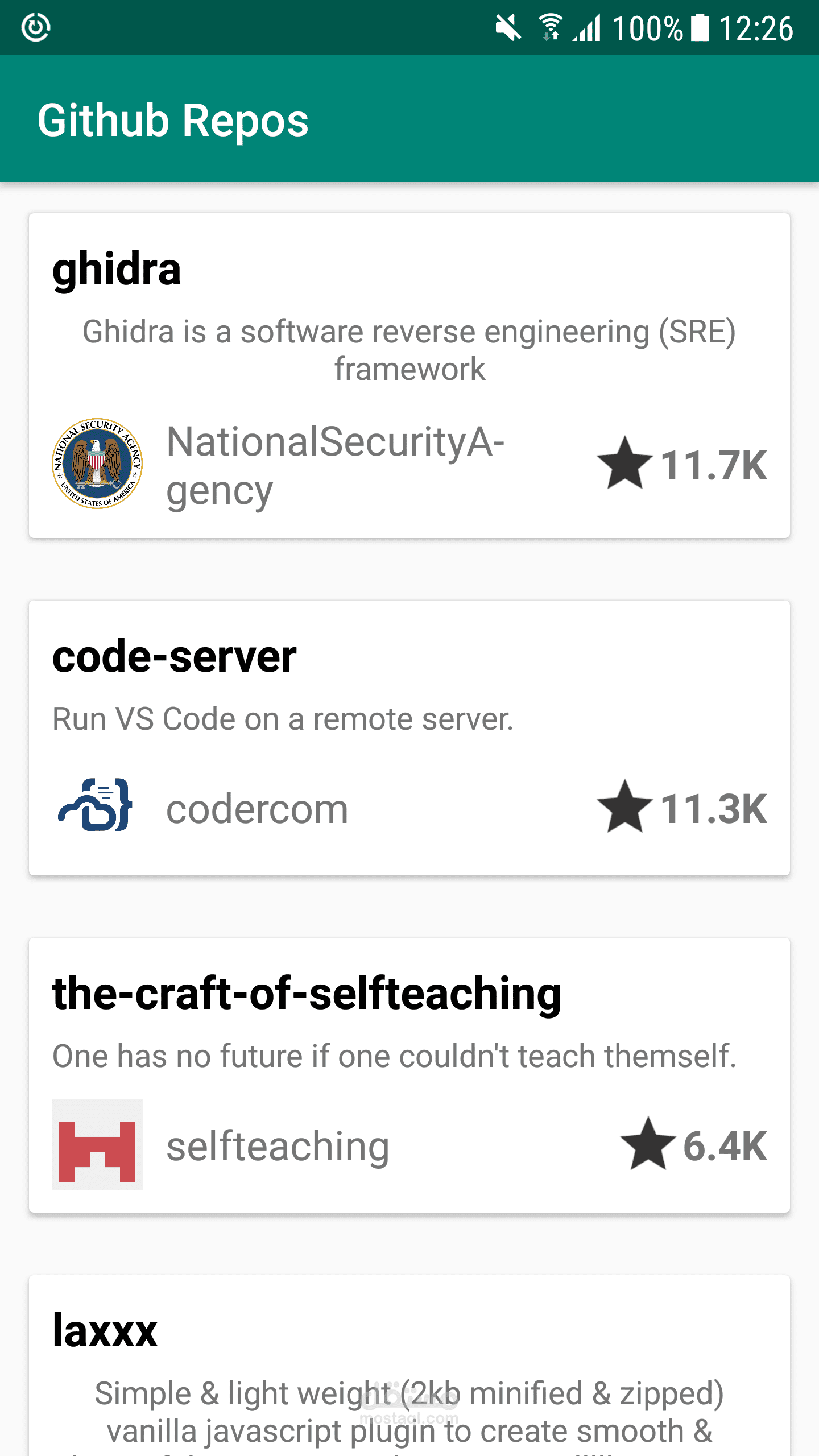 An android app that lists the most starred Github repos that were created in the last 30 days.