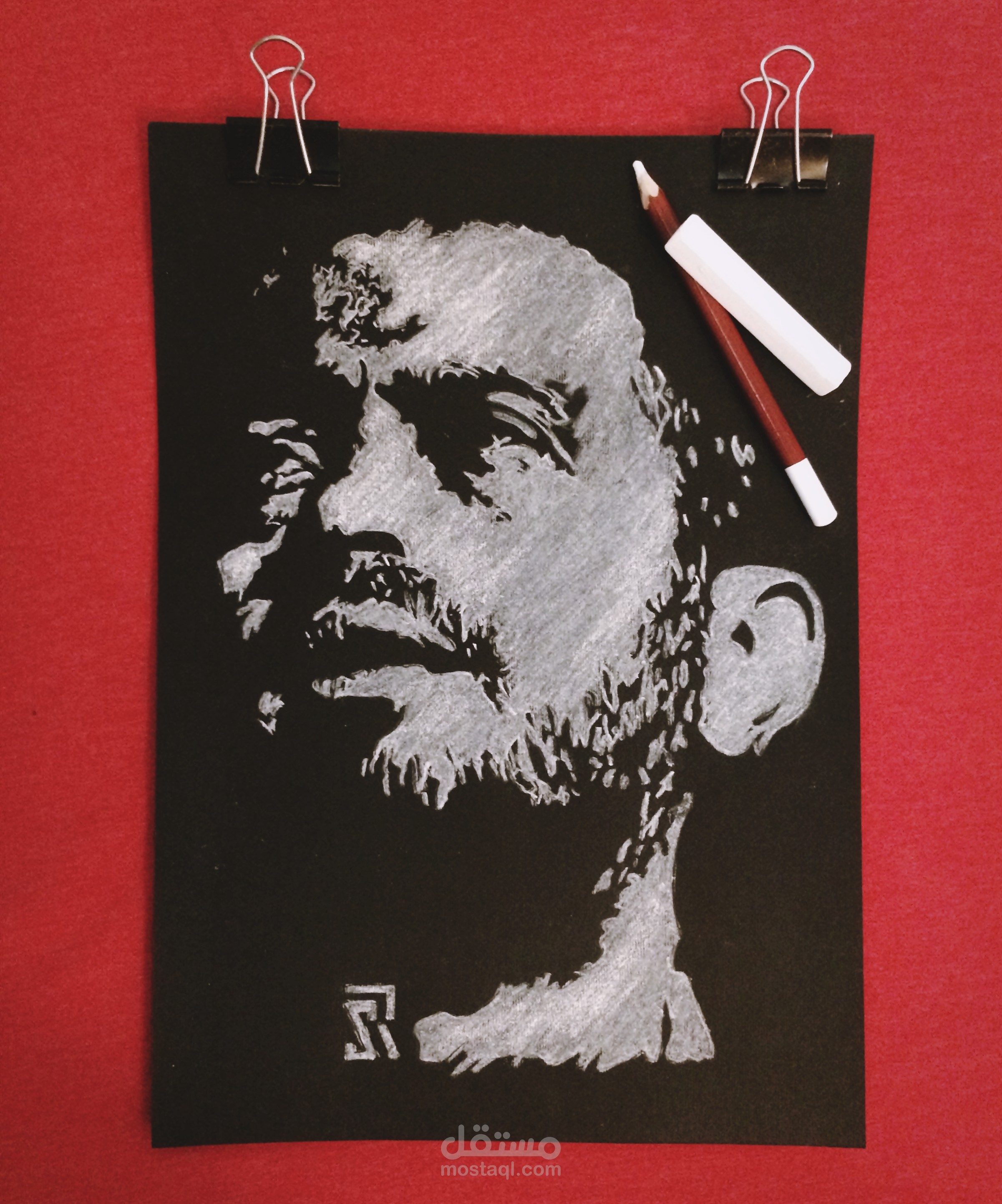 رسم شخصيات بالفحم الأبيض و الشمع يدويا على ورق الكانسون A4 او A3 الأسود