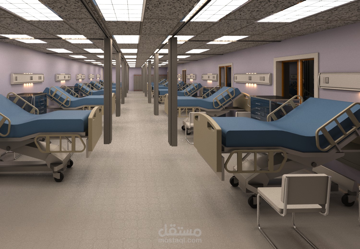 مشروع المستشفى قمت بتصميمه في فترة دراستي بالكلية . كان الاهتمام الأكبر في هذا المشروع بالتصميمات الداخلية للحيزات و ارتباطها ببعض و سير الحركة لكل المستخدمين في المبنى .