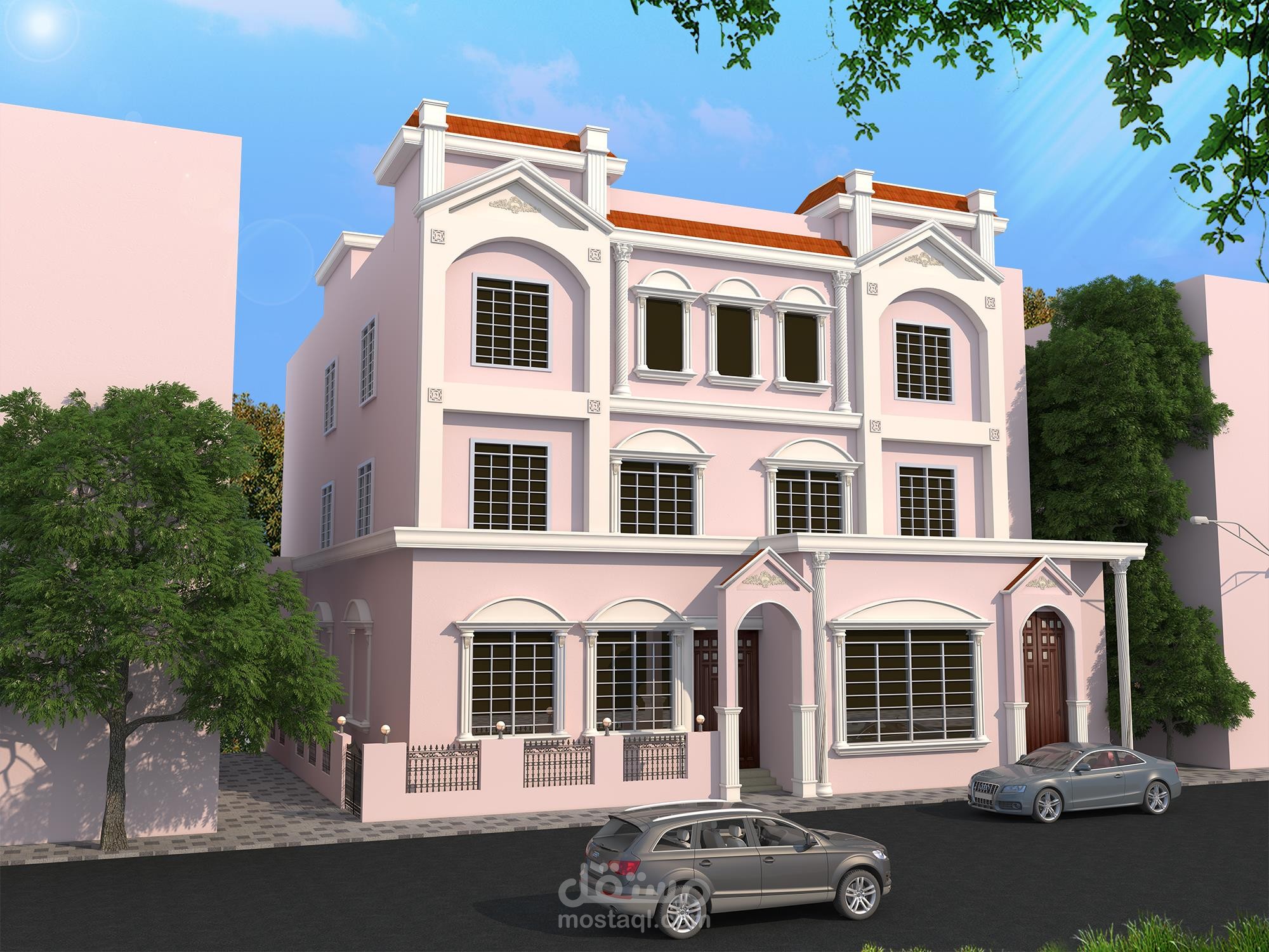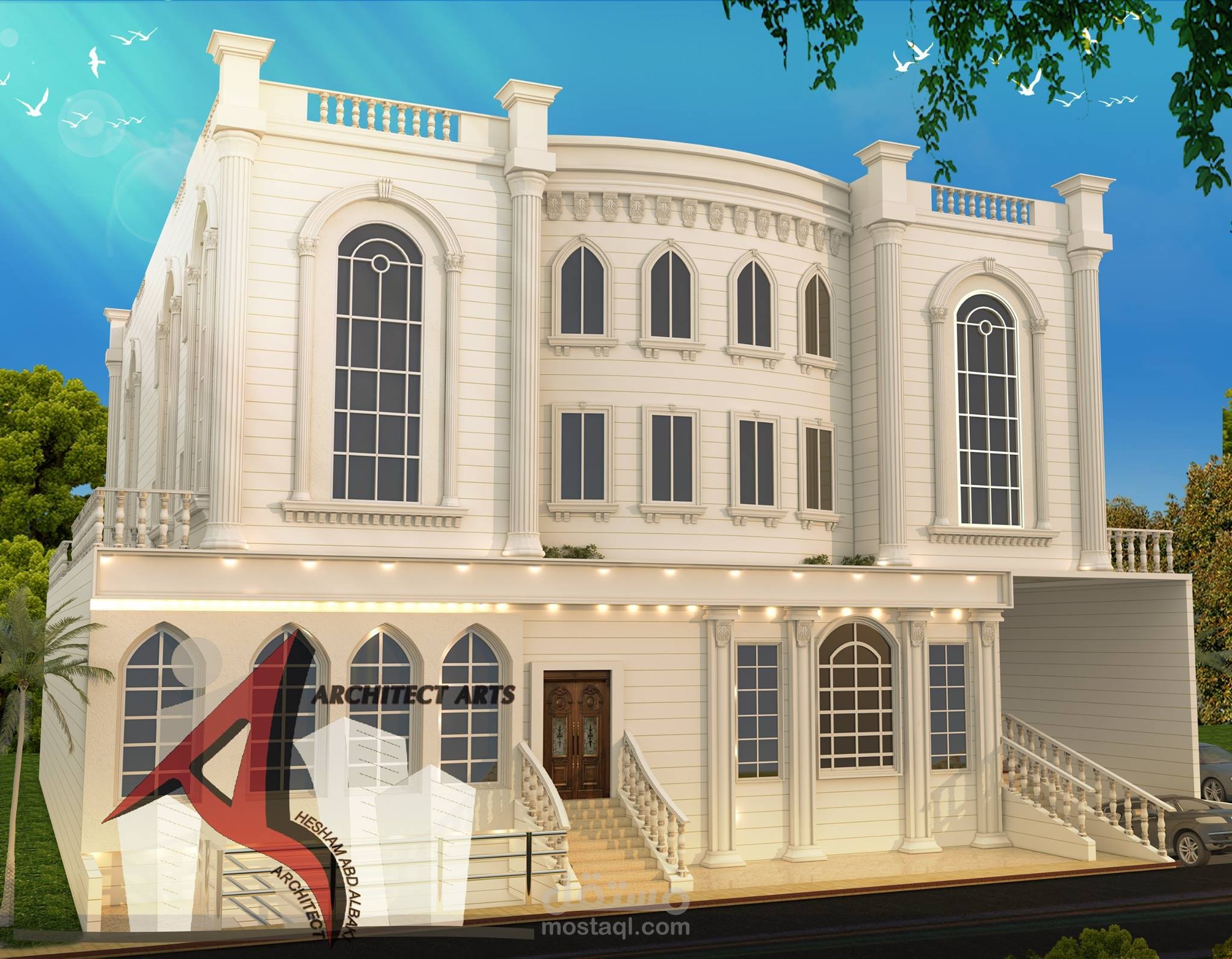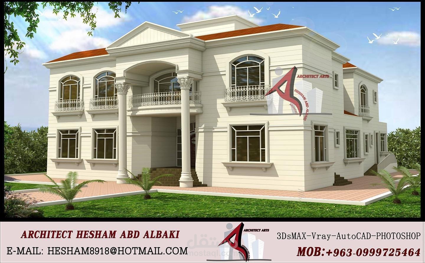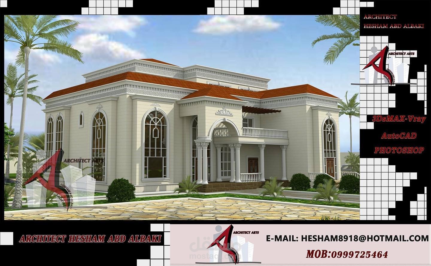 تصميم المساقط المعمارية والديكورات الداخلية تصميم الواجهات المعمارية رسم ثلاثي الابعاد مع المواد المستخدمة في الاكساء