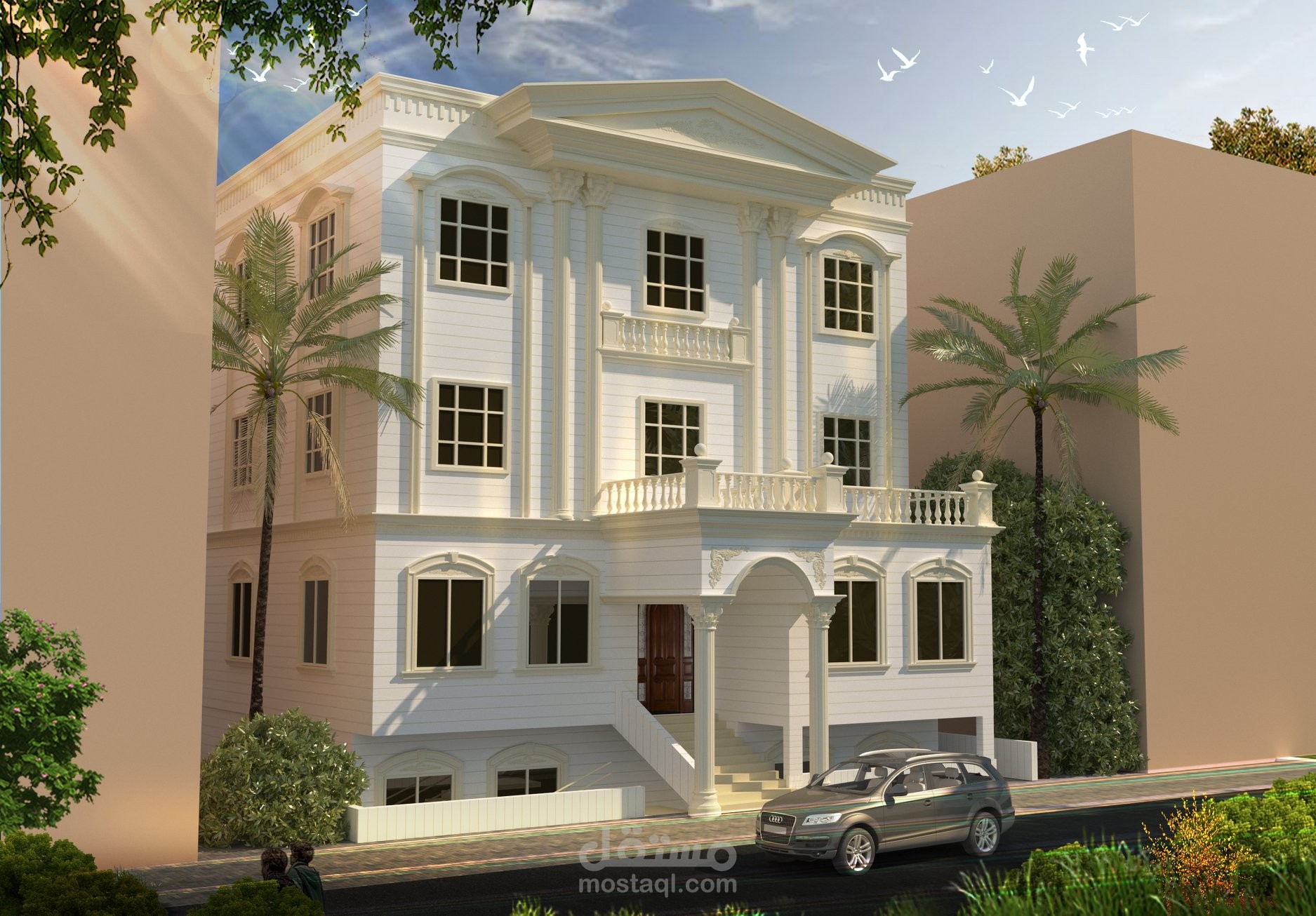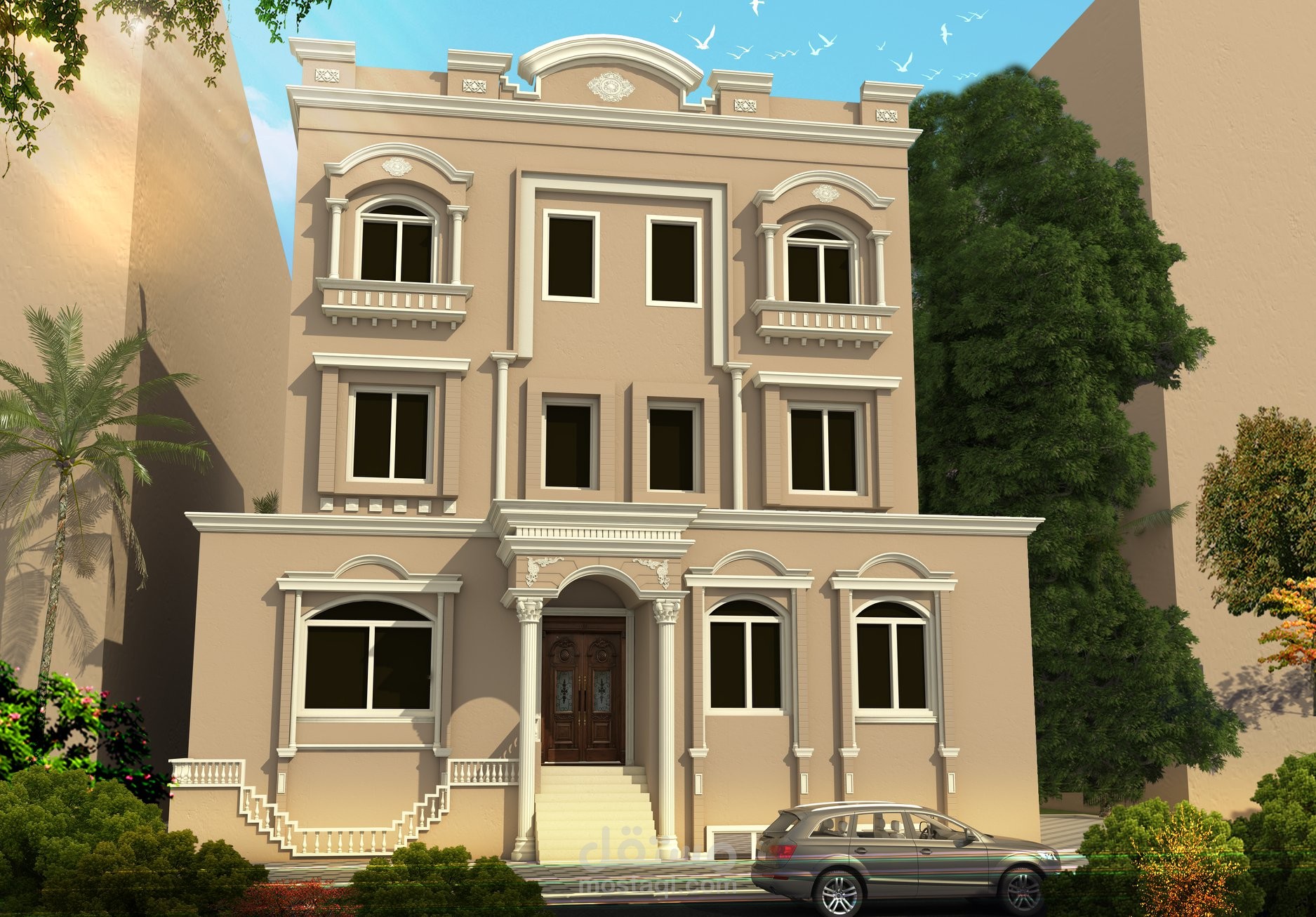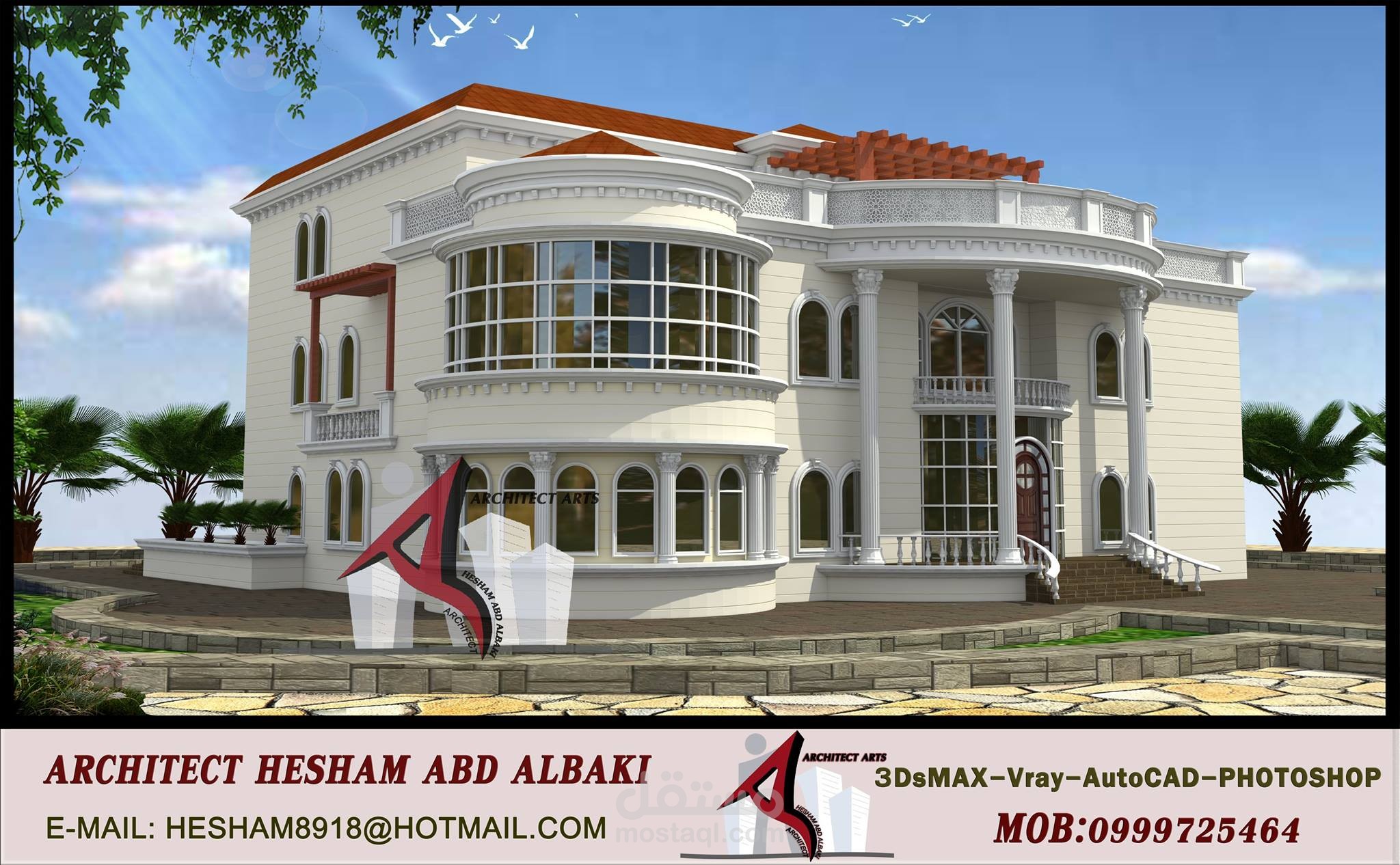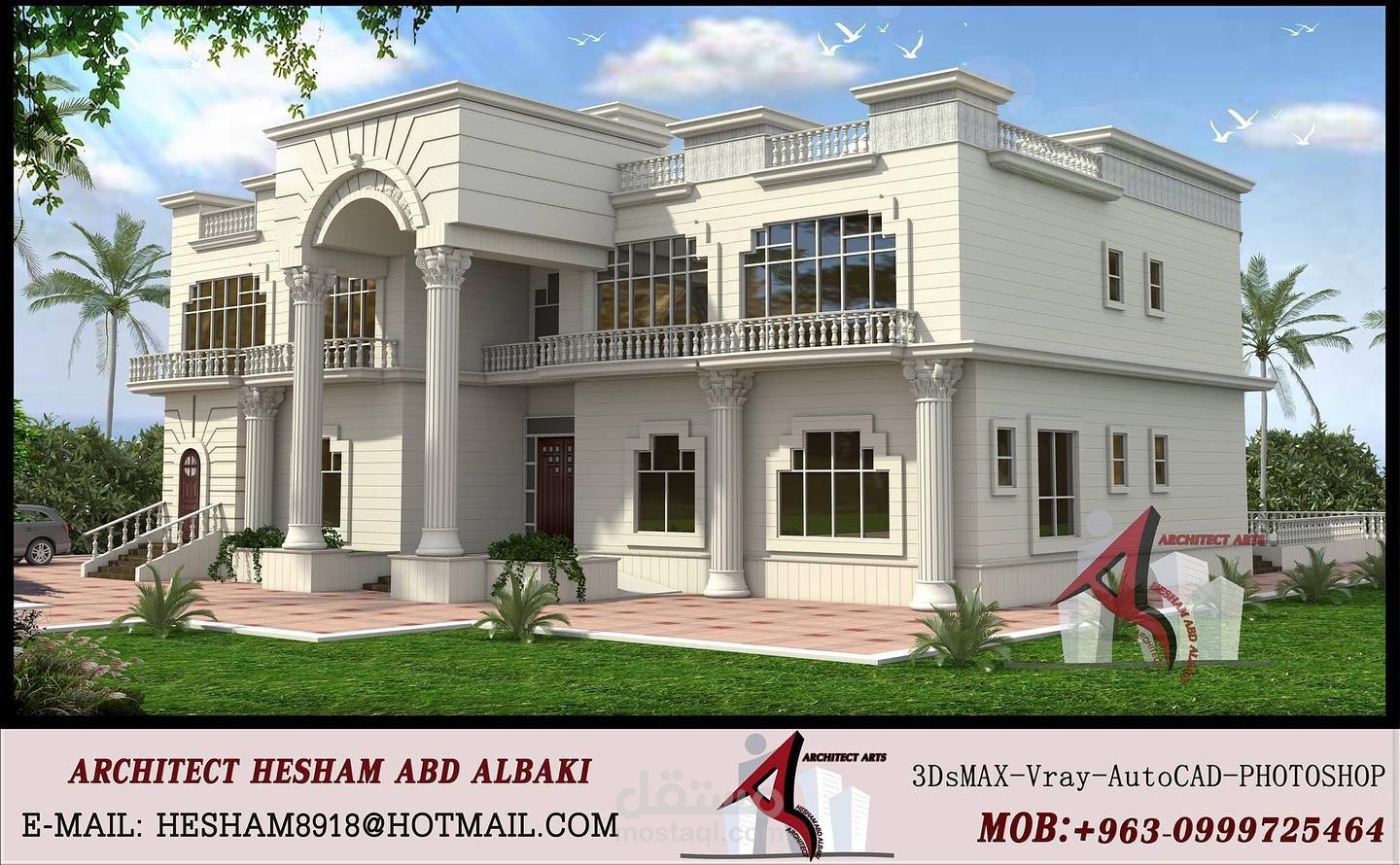 تصميم المساقط المعمارية والديكورات الداخلية تصميم الواجهات المعمارية رسم ثلاثي الابعاد مع المواد المستخدمة في الاكساء