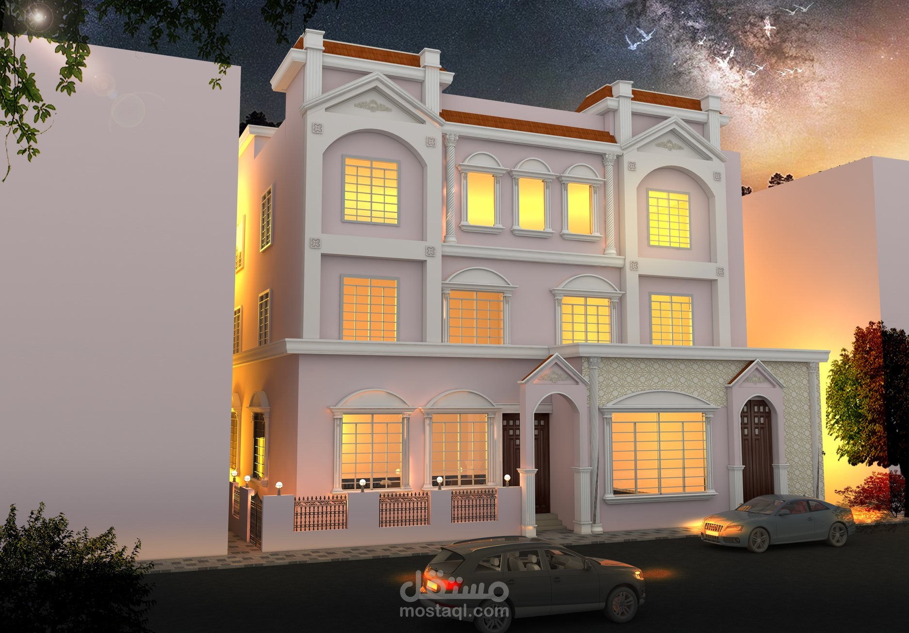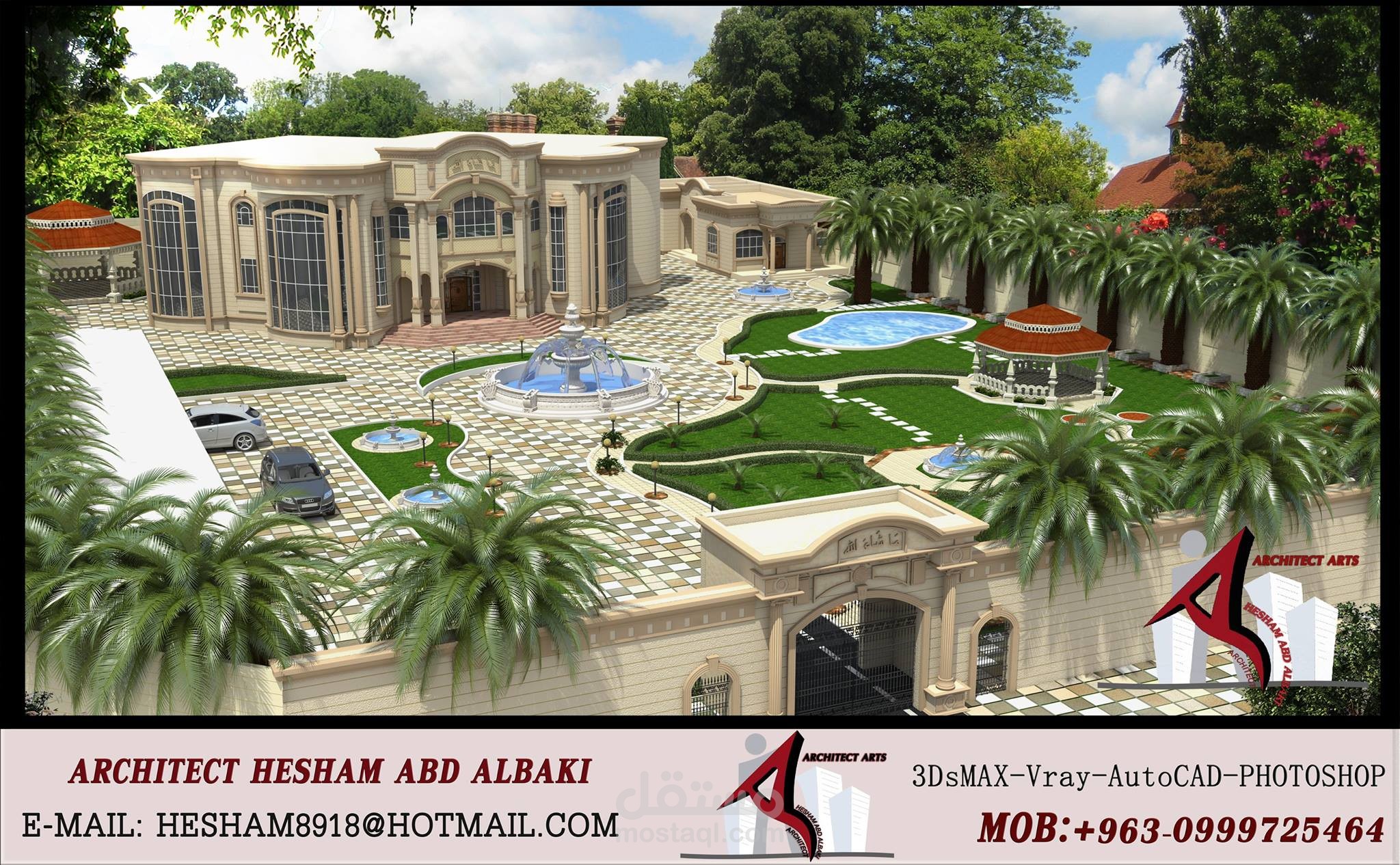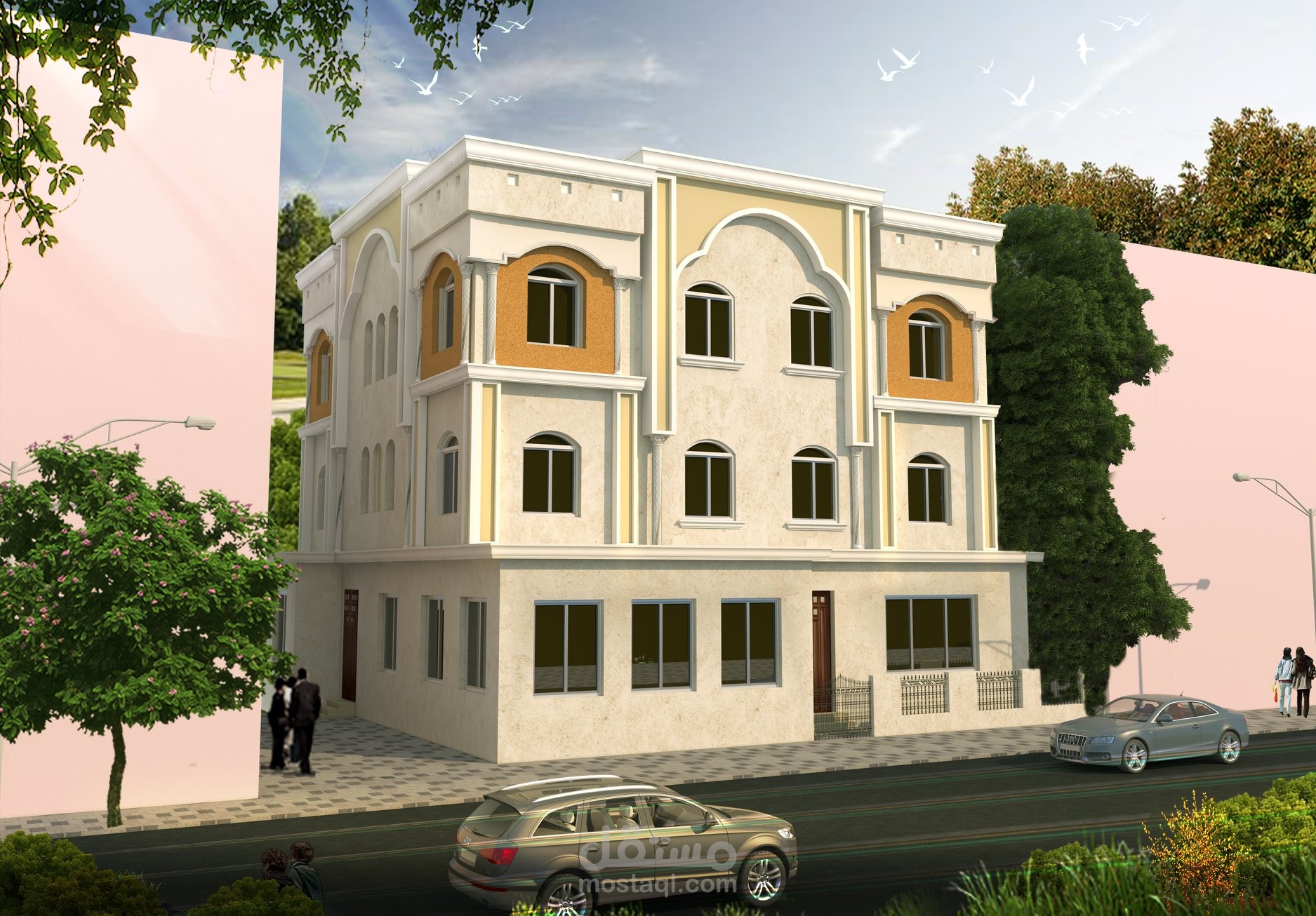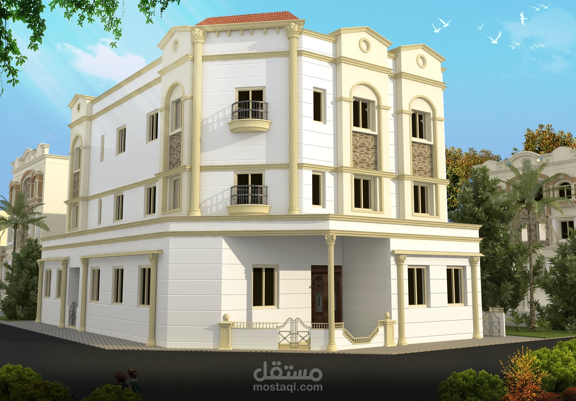 تصميم المساقط المعمارية والديكورات الداخلية تصميم الواجهات المعمارية رسم ثلاثي الابعاد مع المواد المستخدمة في الاكساء