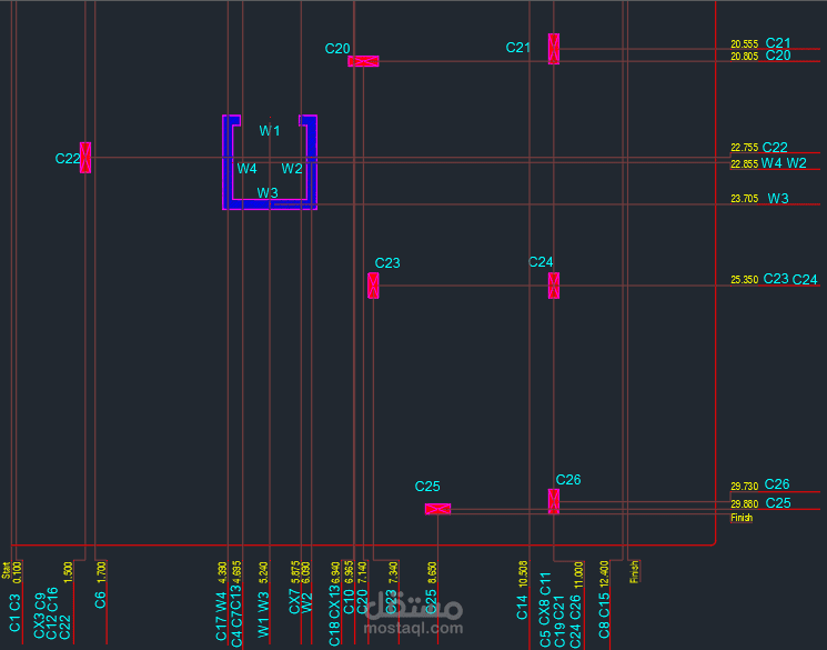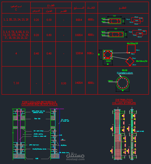 تم استخدام برنامج AutoCAD في عملية الرسم والإخراج الطباعي، كما تم استخدام برنامج Autodesk Robot في العملية التحليلية للعناصر الإنشائية.
