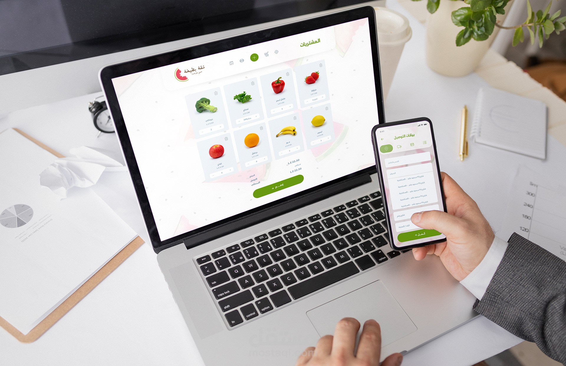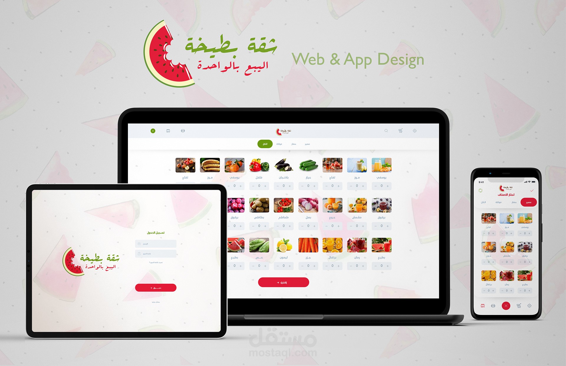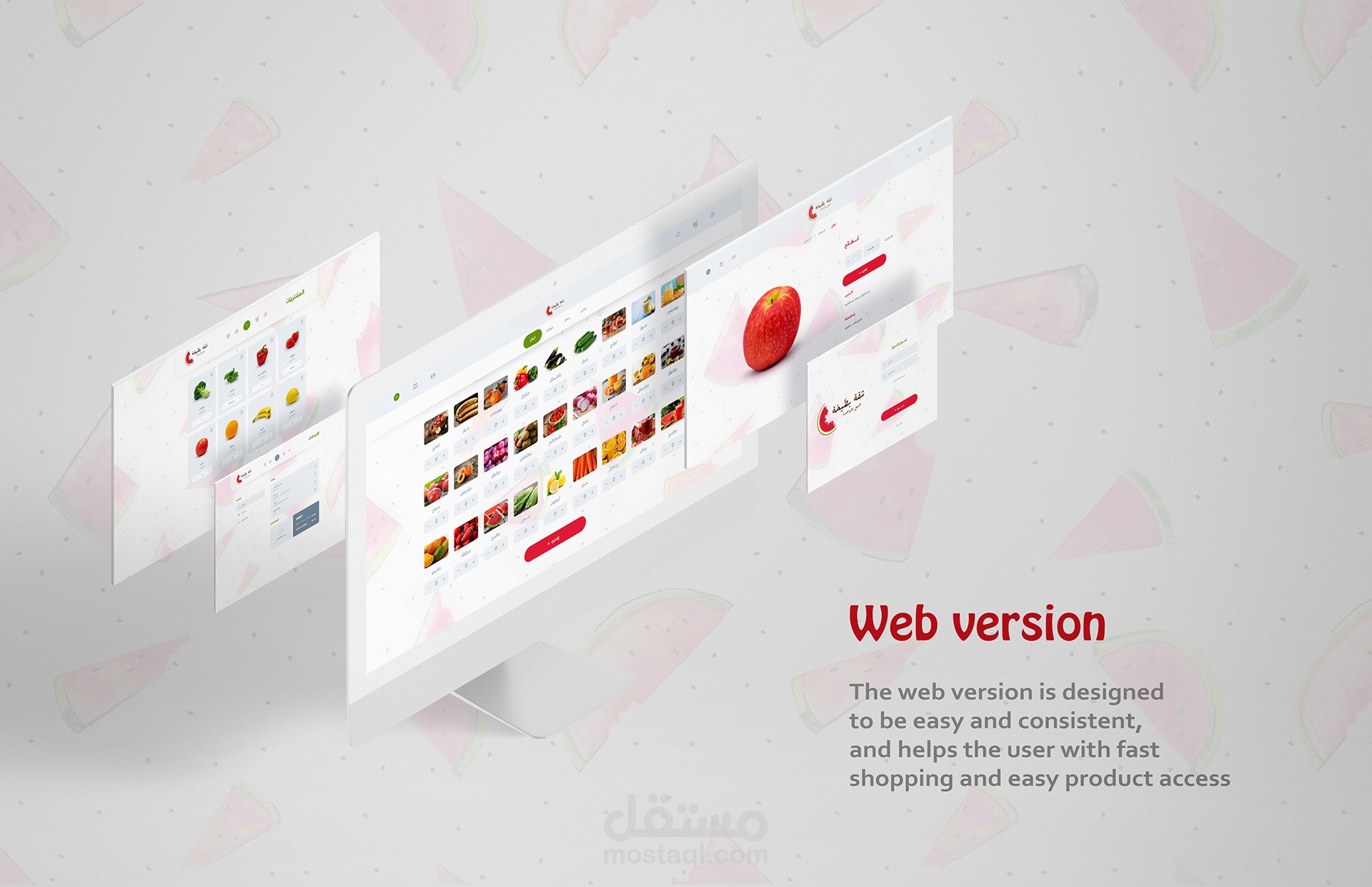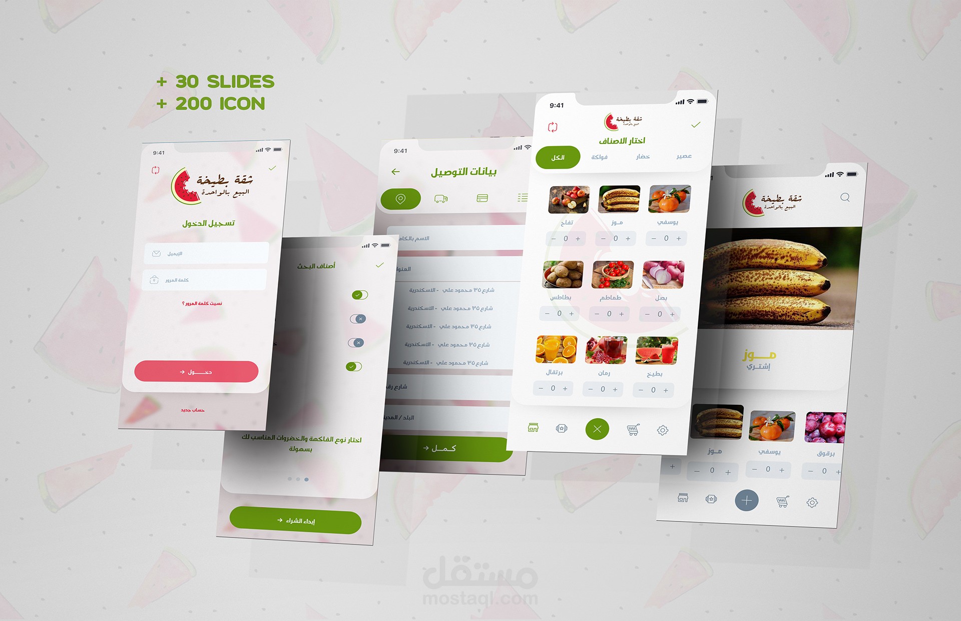 ui - ux design for Shopping application for vegetables and fruits by selling as a piece a new idea that is not present in Egypt