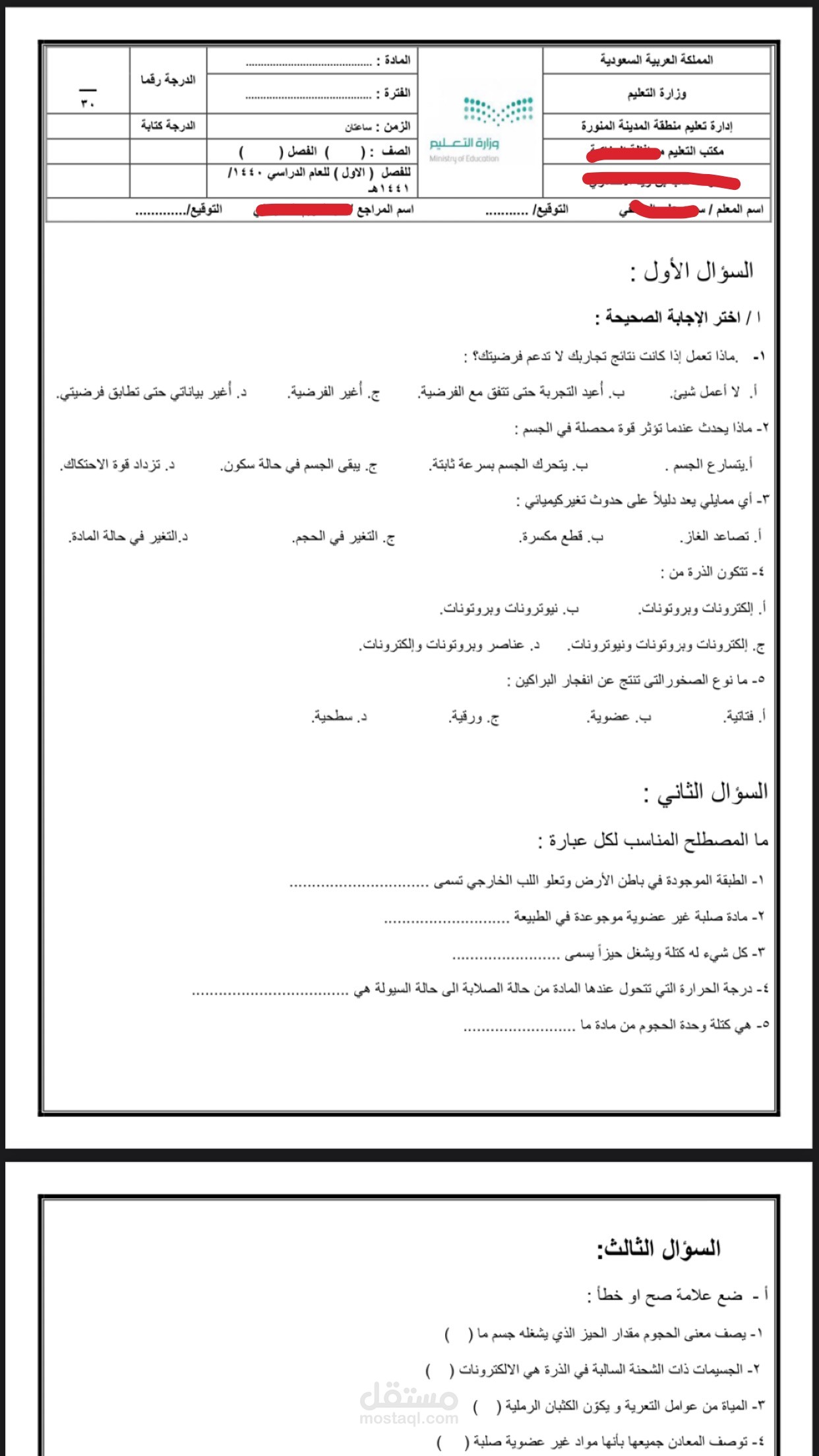 كتابة نماذج اسئلة اختبار لمعلم بالوورد