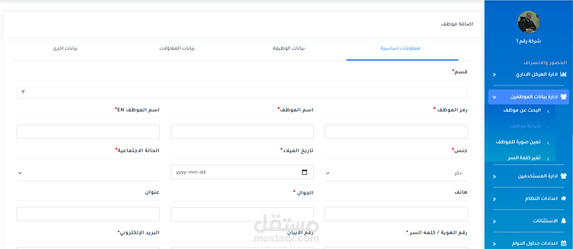 نظام لادارة الموارد البشرية كاملة تشمل تعريف موظفين وكافة بايناتهم الشخصية ومرتبات ومكافات وحوافز وحضور وانصراف ونسب خصومات وايضا اذونات انصراف مبكر وتقارير شاملة عن الحضور و الانصراف والاجازات والانذارات والعهدة وكذلك تدعيم اجهزة الحضور والانصراف والبصمة و البصمه عن طريق الموقع الجغرافي