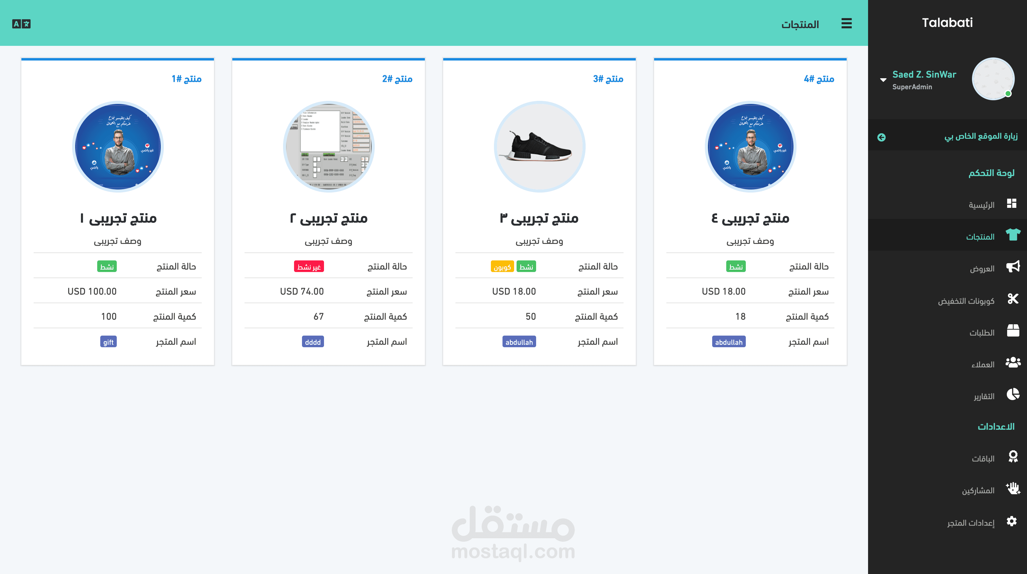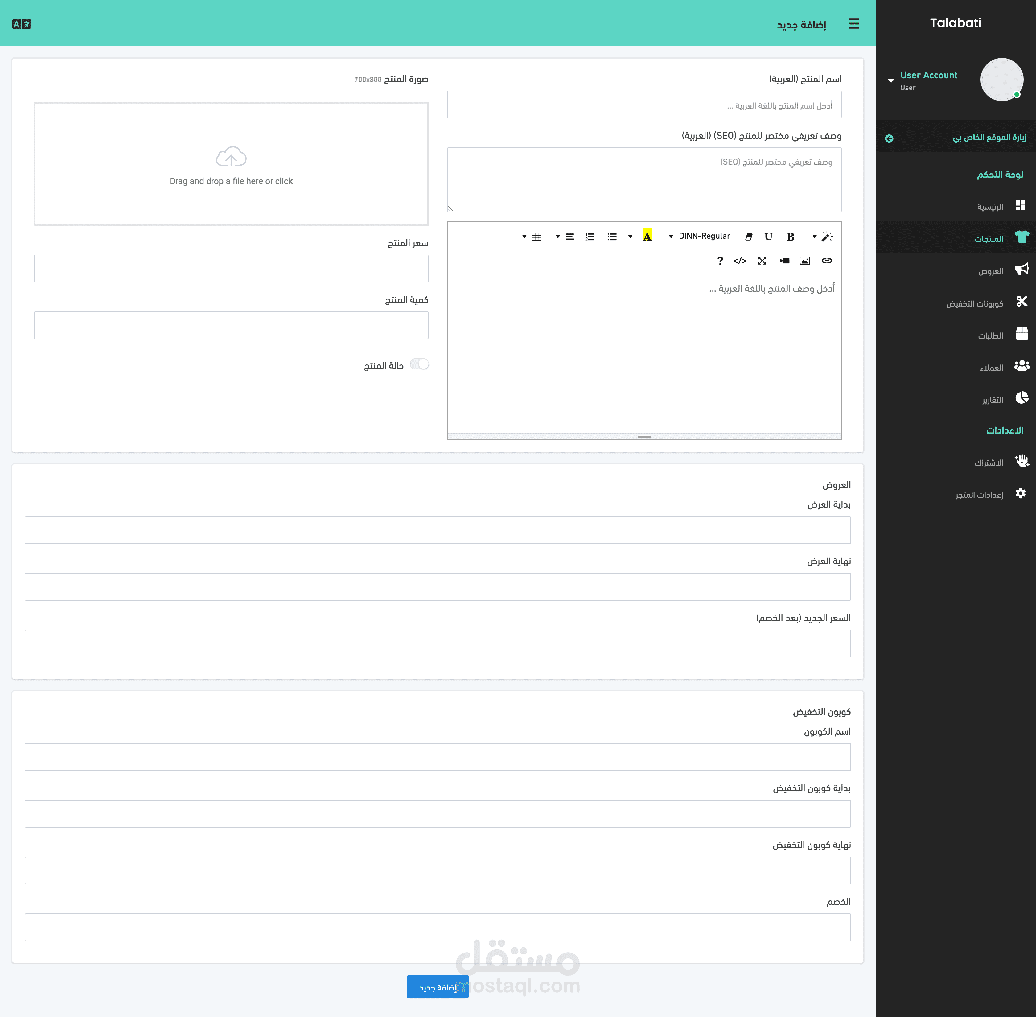 (ملاحظة: تم تصميم واجهة المنصة متطابقة تماماً لمنصة Salla، حسب طلب العميل)