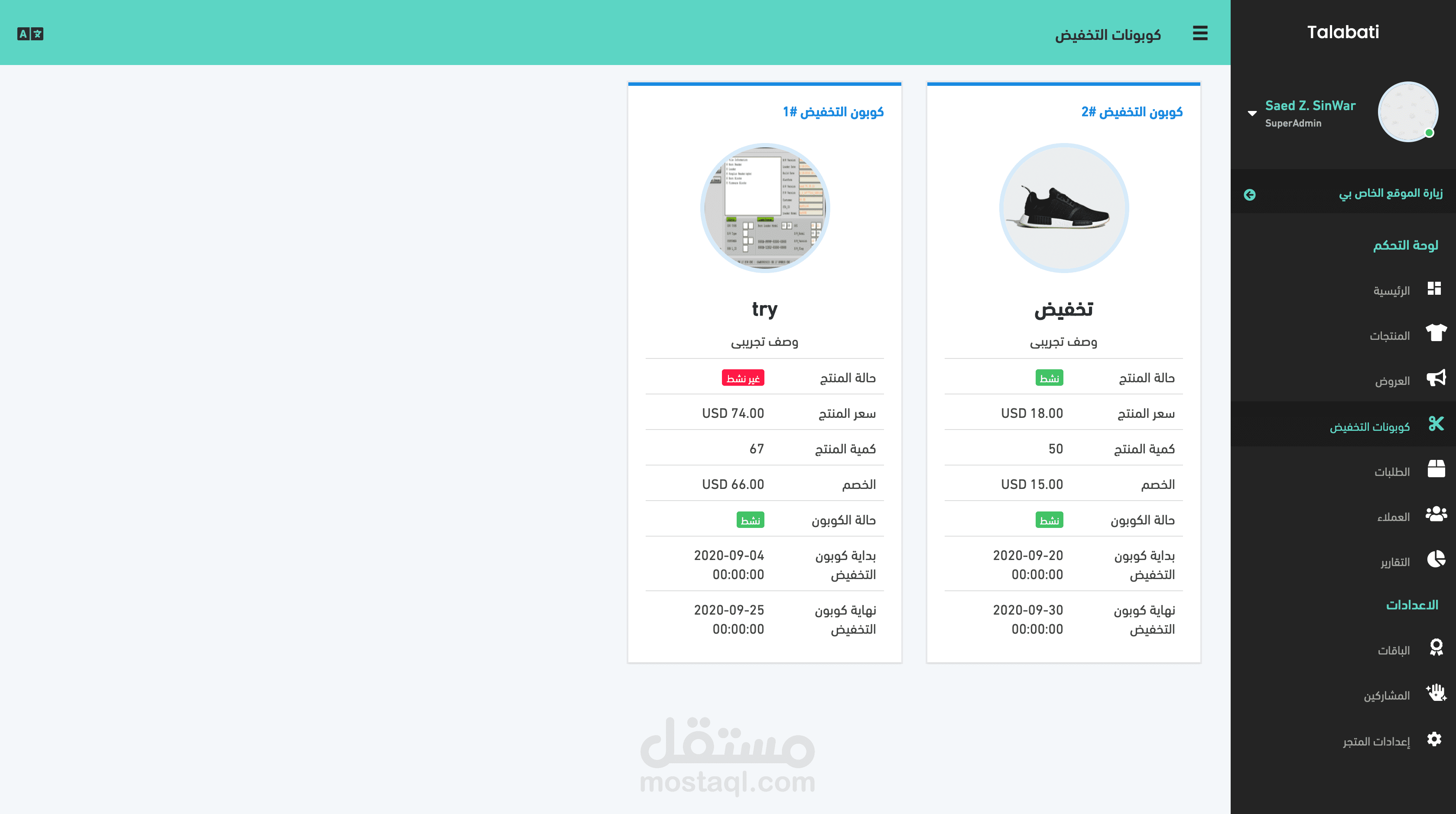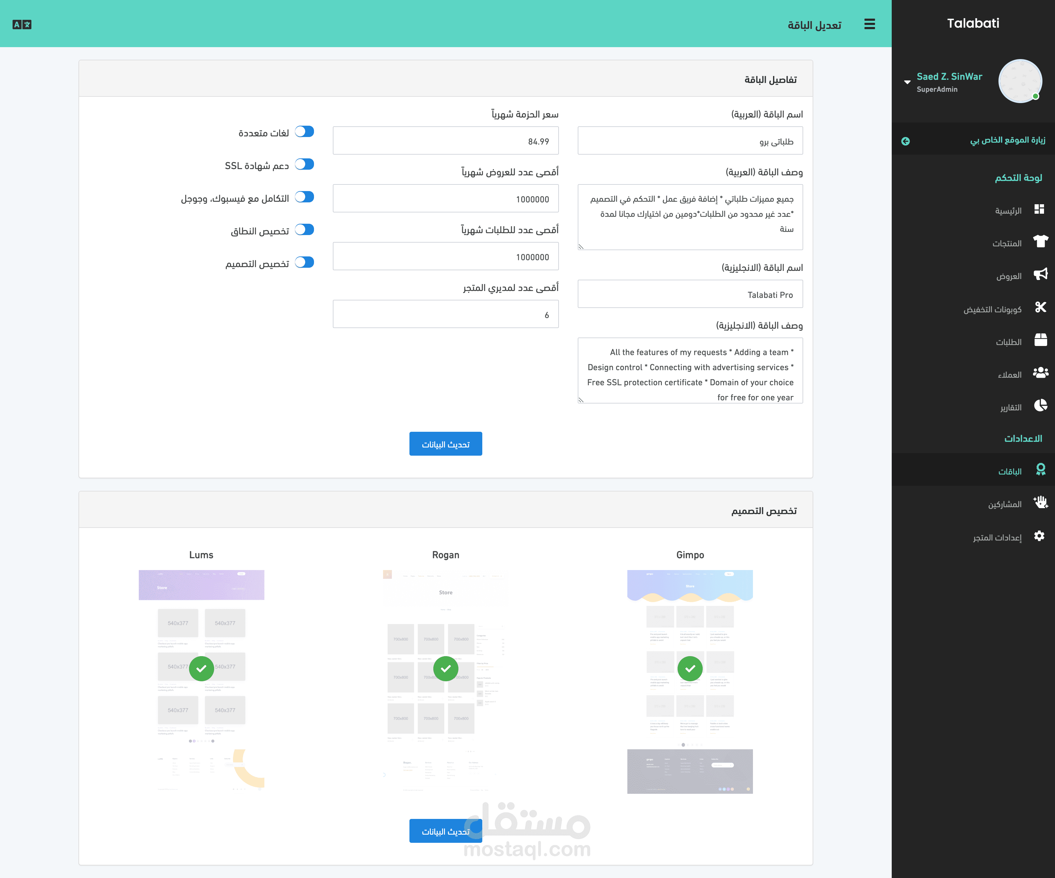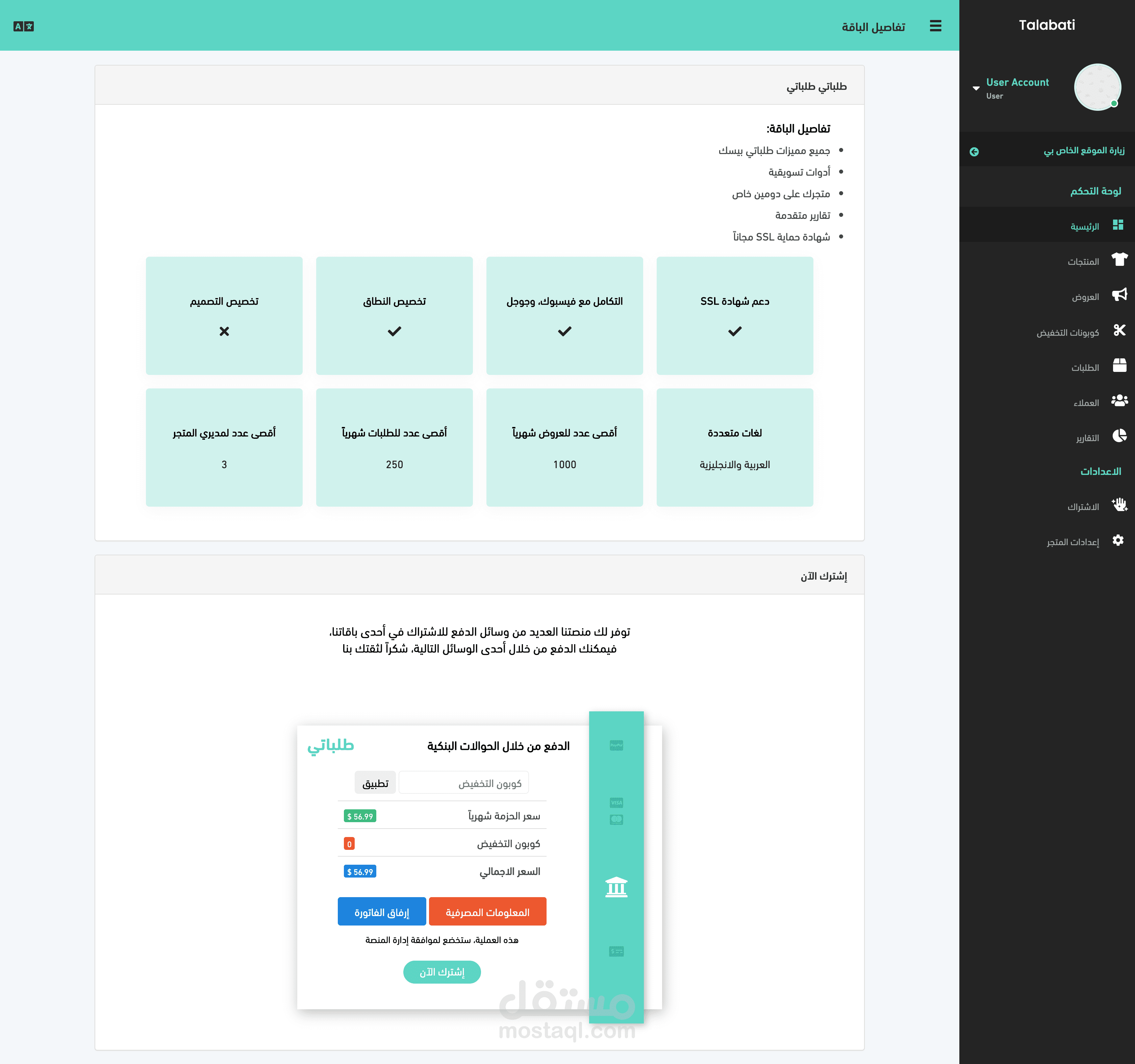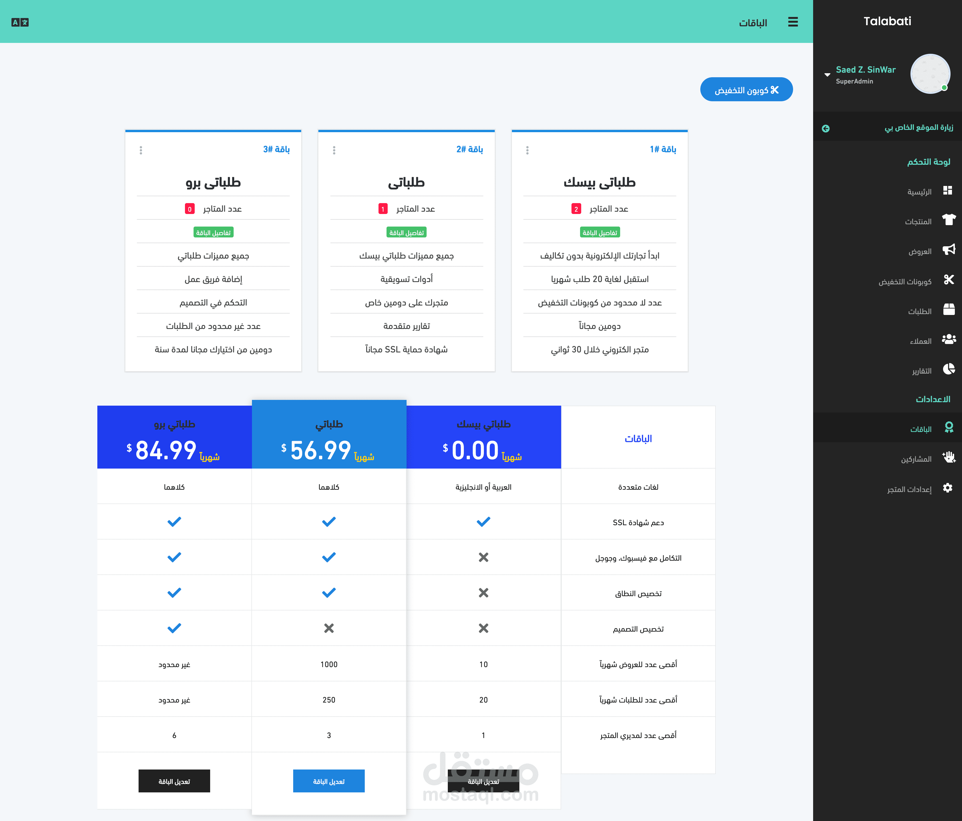 - إدارة الباقات وإضافة كوبون خصم، لأي باقة
