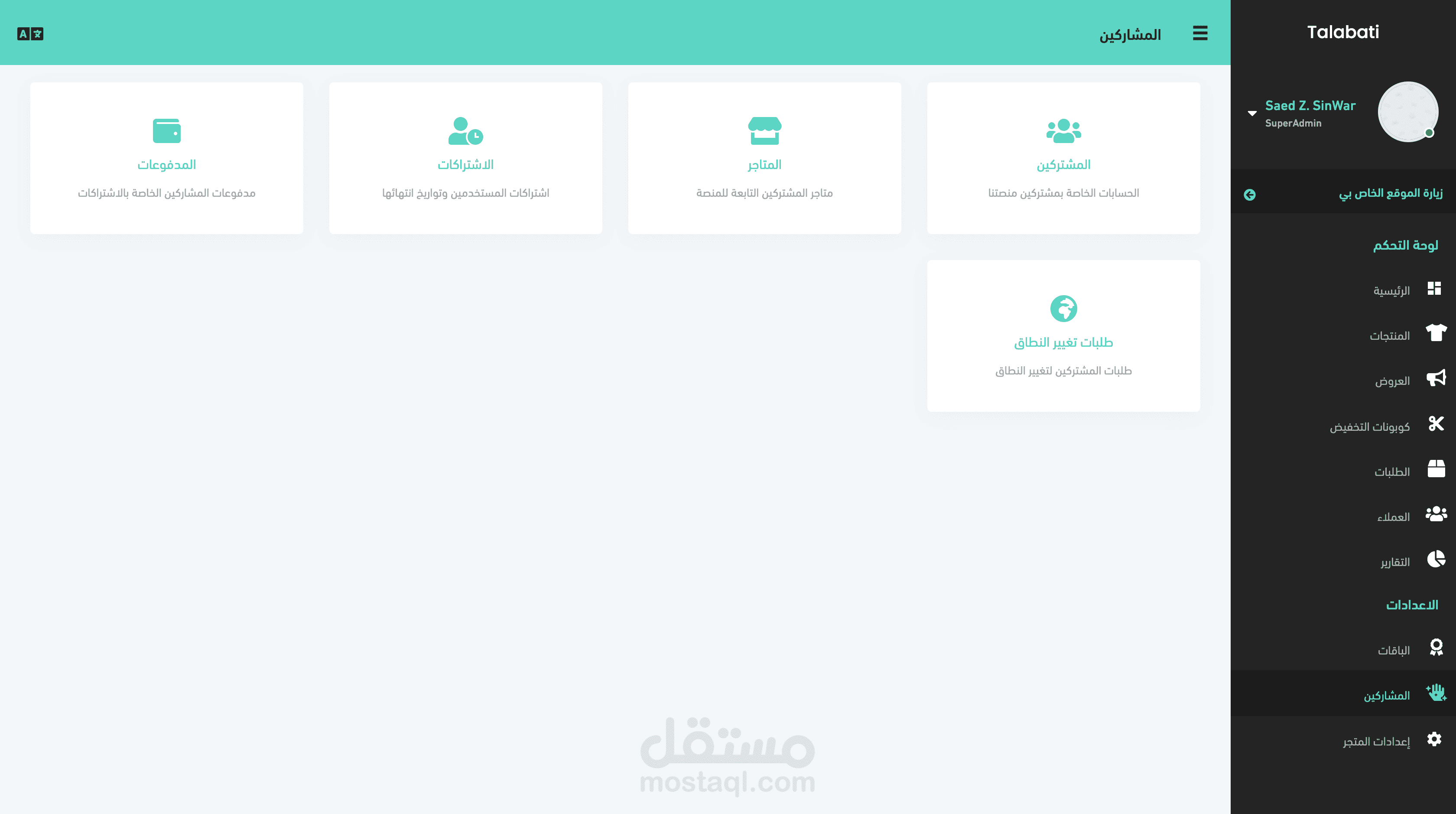 تحتوي المنصة على لوحة تحكم شاملة (خاصة بإدارة المنصة) وفيها يتم التحكم بتصميم واجهة المنصة، وإضافة أي مميزات أو عروض على الباقات، وكذلك الرد على استفسارات الزوار، وإرسال الإشعارات للبريد الالكتروني الخاص بهم، وتتمكن الإدارة من تحديد مميزات كل باقة والسعر الخاص بها وتحديد التصميم المتوفر لكل باقة (حيث تم تزويد المنصة بعدة تصاميم يمكن لكل إدارة متجر اختيار التصميم المناسب له ولمبيعاته)، وإضافة كوبونات التخفيض، وتتابع كذلك اشتراكات المتاجر، وعمليات الدفع.