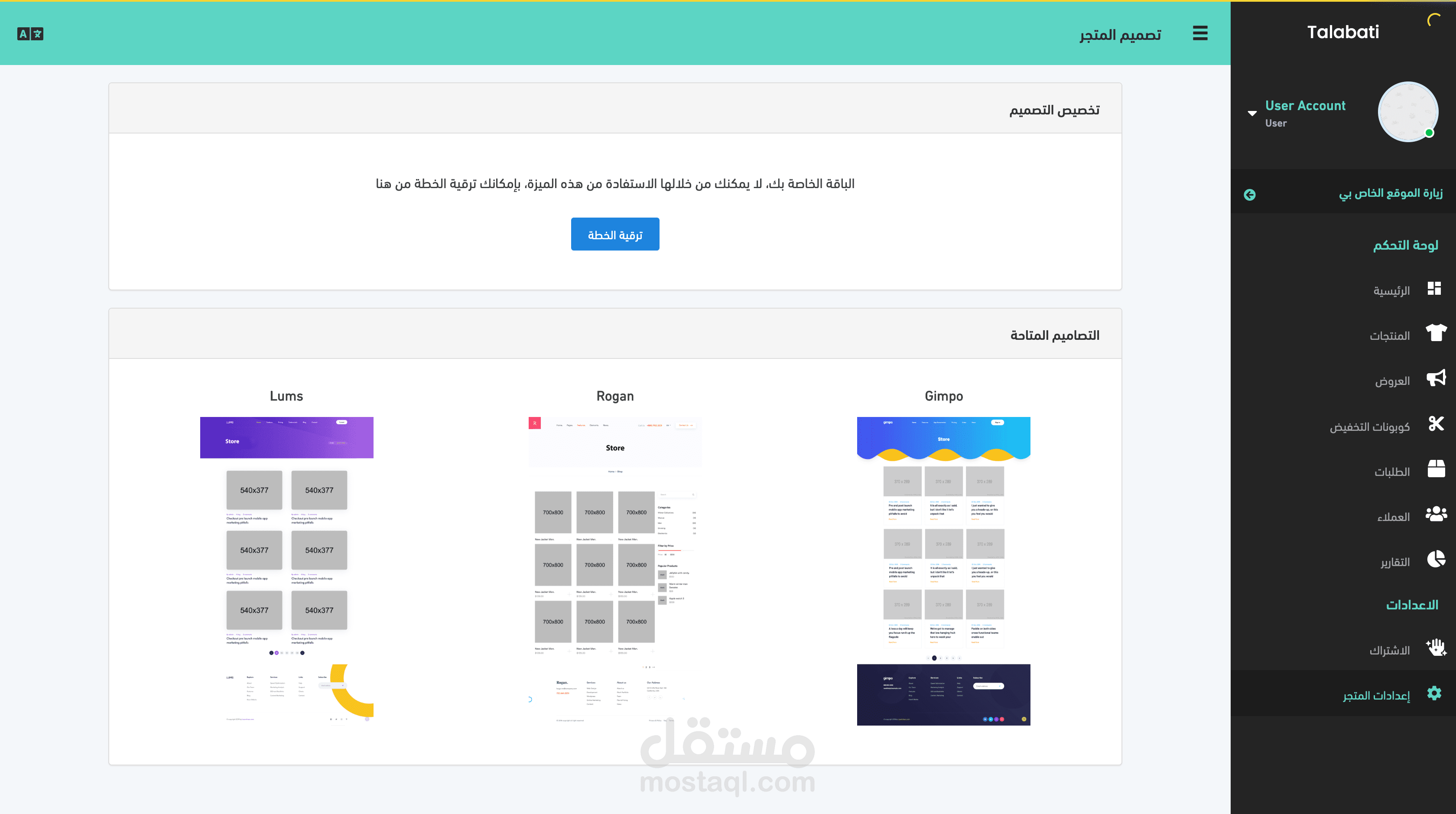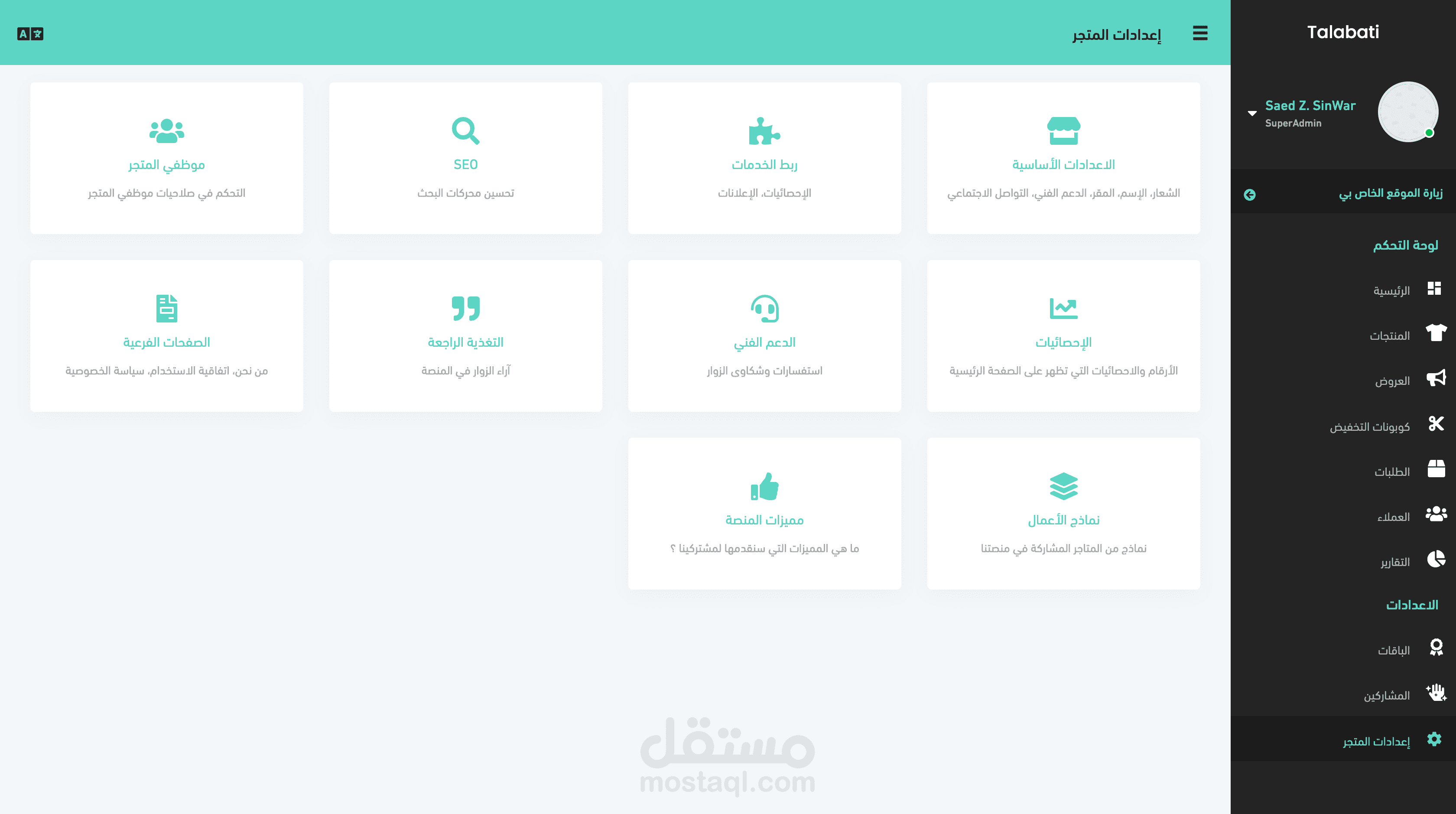 - التحكم في تصميم المتجر، شعار المتجر وبيانات المتجر ومنصات التواصل الاجتماعي