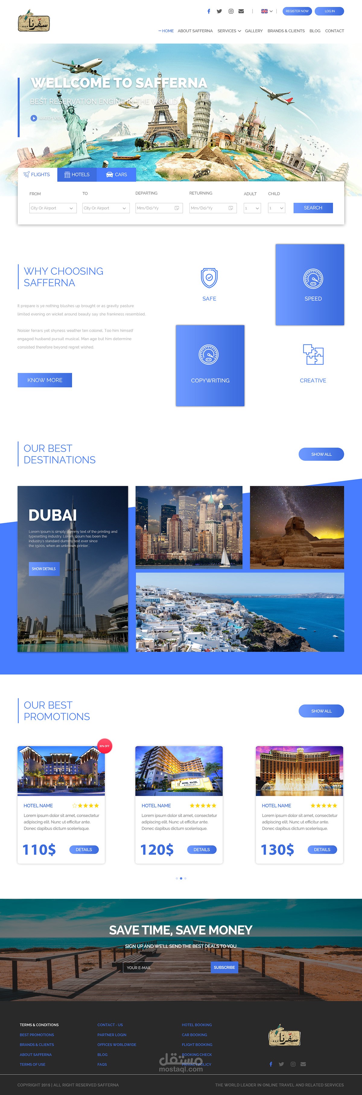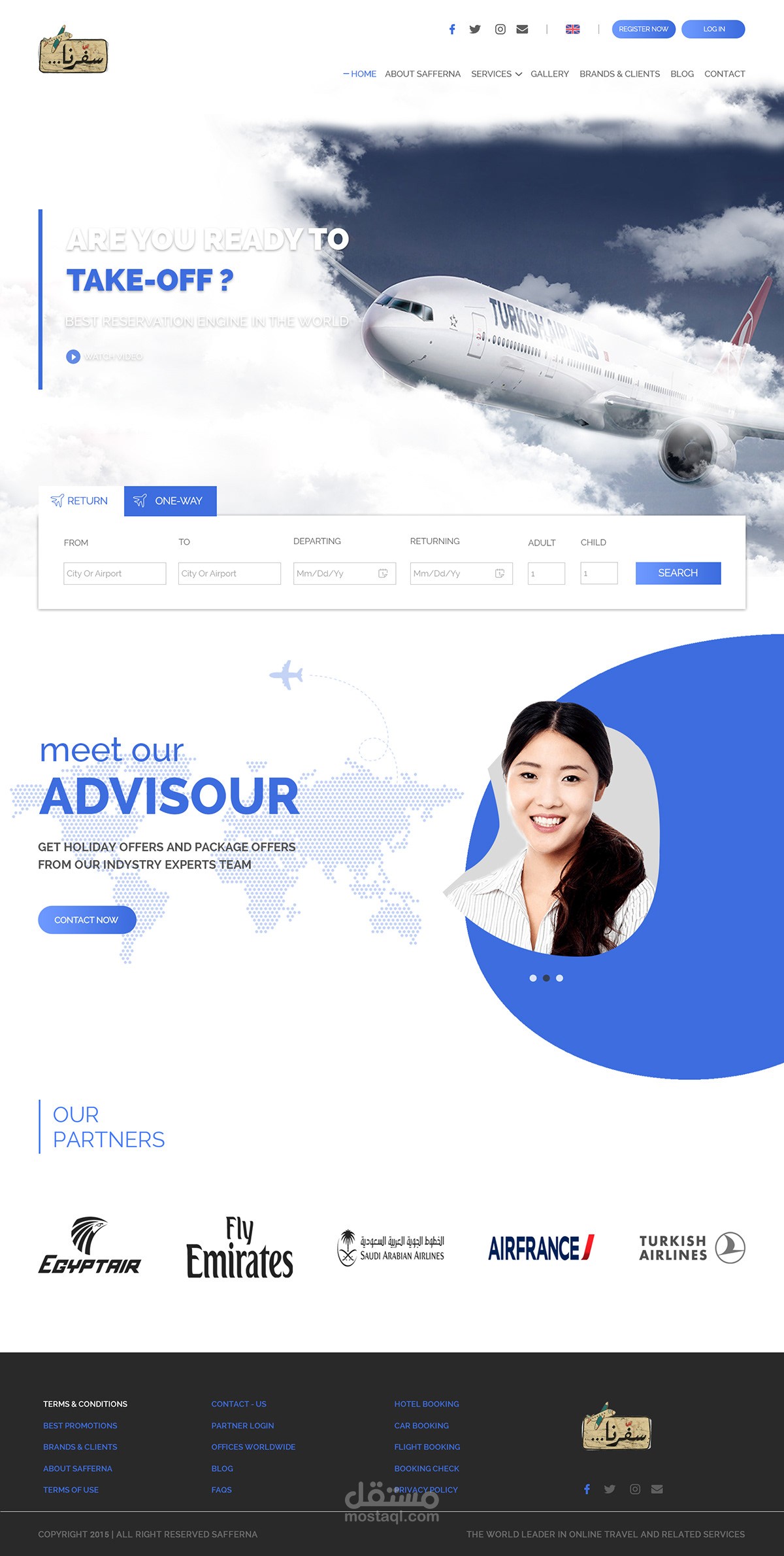 تصميم الموقع الالكتروني الخاص بشركه سفرنا بالمملكه الاردنيه ،، وهي شركه متخصصه بحجوزات الطيران والسيارات والكروزات البحرية والفنادق .