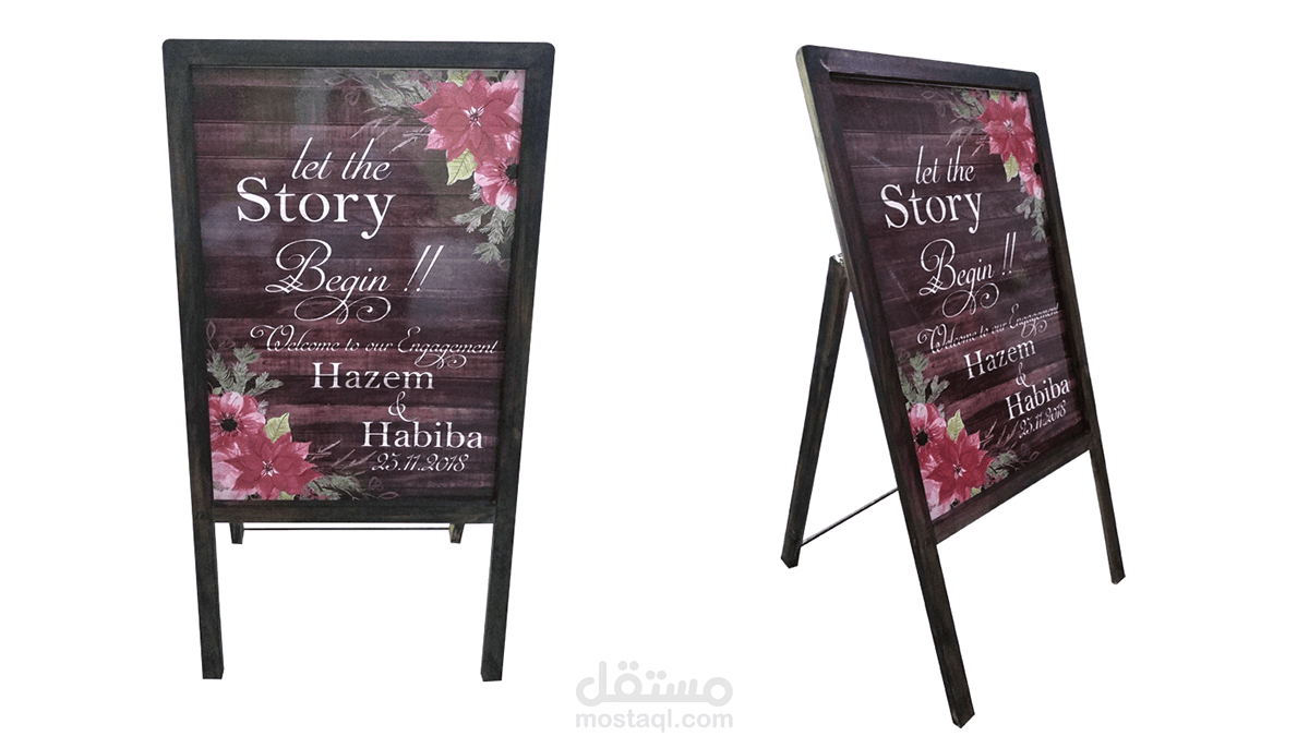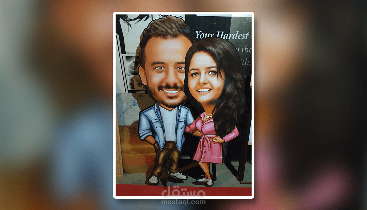 تصميم مجسم عريس وعروسة لحفل الخطوبة ولوحة الترحيب