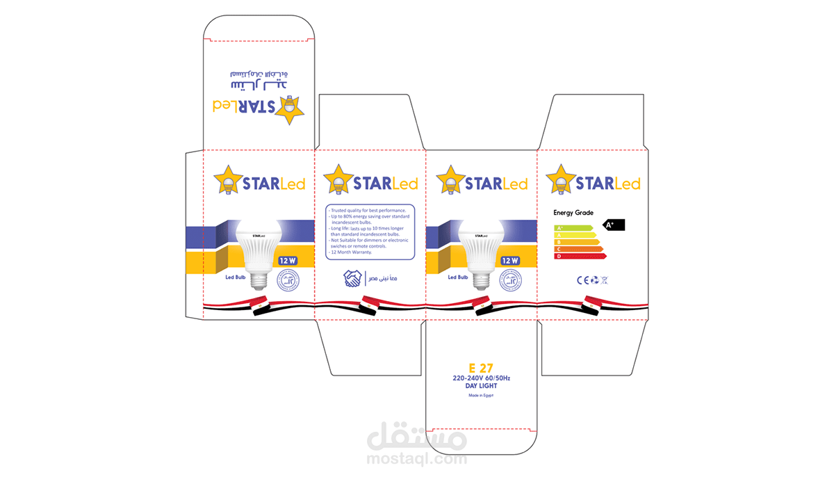 تصميم علبة تغليف لمبات كهربائية موفرة شركة "ستار ليد" للأدوات الكهربائية