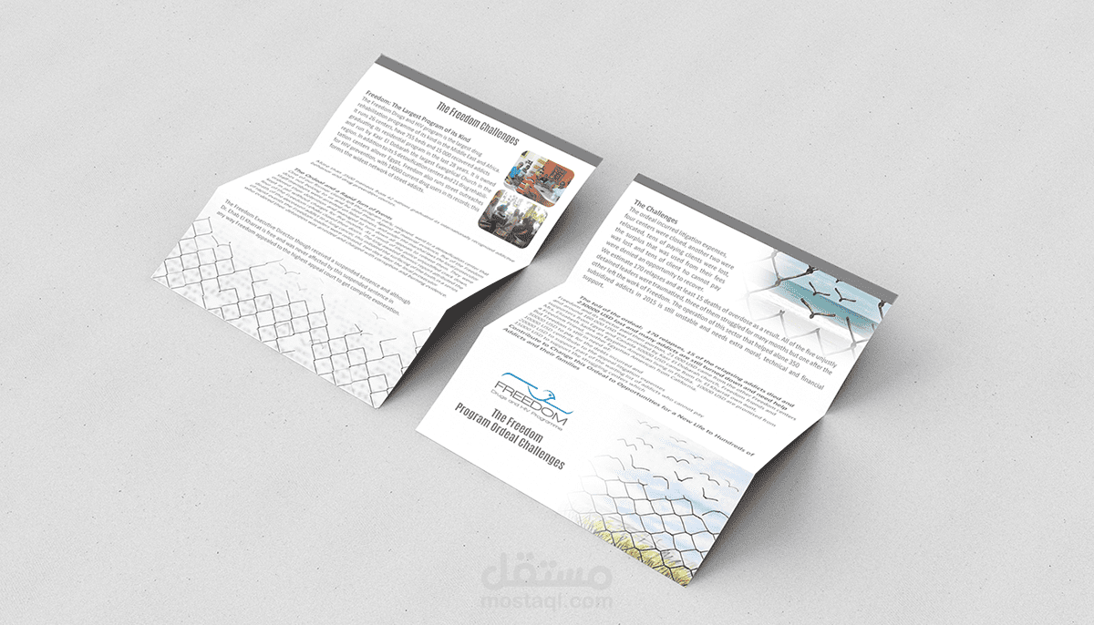تصميمات لبروشور لجمعية "الحرية لعلاج مرضى الإدمان والإيدز"