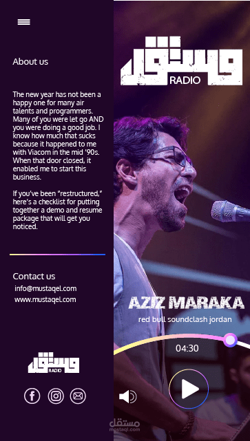 تطبيق موبايل لتشغيل البث لراديو مستقل
