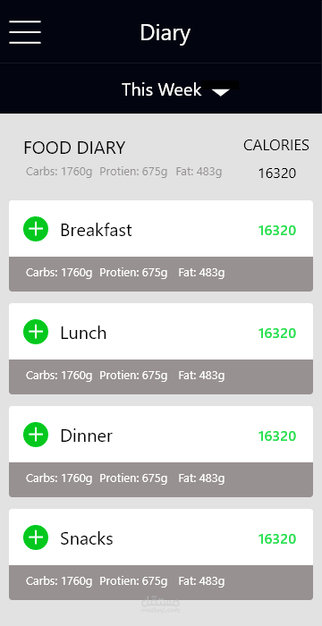 4- مذكرة طعام مع حساب كمية الكربوهيدرات والبروتين والدهون(نظام غذائي).