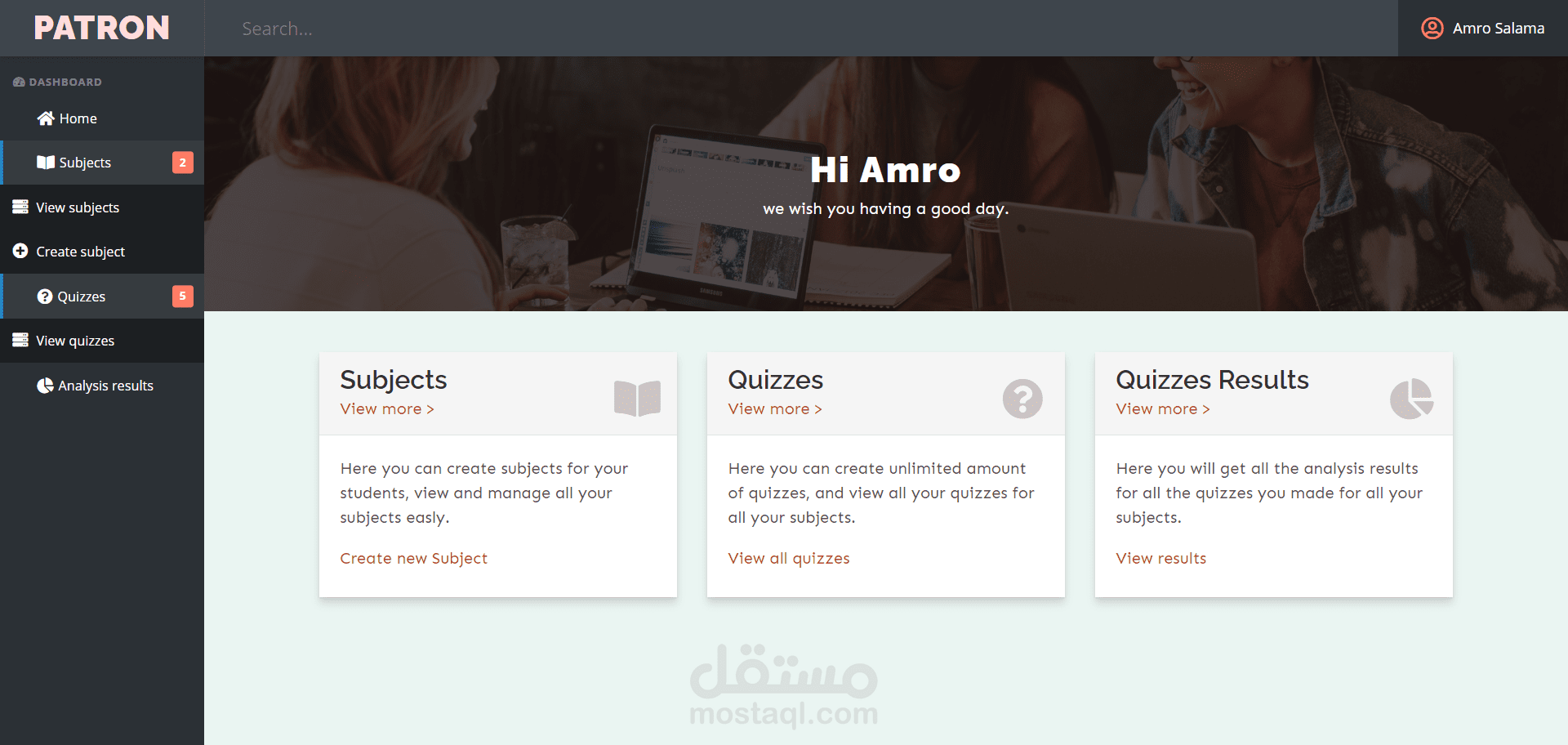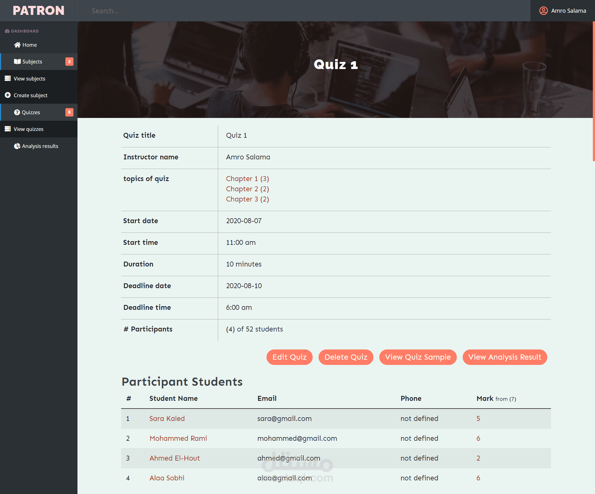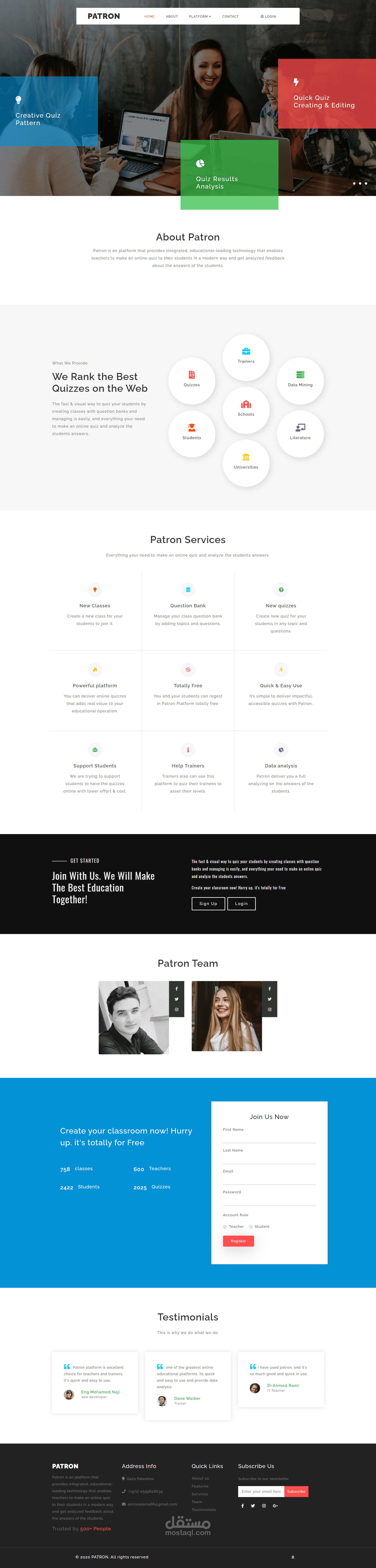 منصة لتمكين المدربين والمدرسين للقيام بعمل صفوف افتراضية يمكنهم من خلالها اضافة طلابهم و عمل امتحانات الكترونية لتدعيم التعليم عن بعد وللتسهيل على المدرسين والطلاب عملية تقديم الاختبارات بشكل سهل و مريح بدون تكلفة او جهد