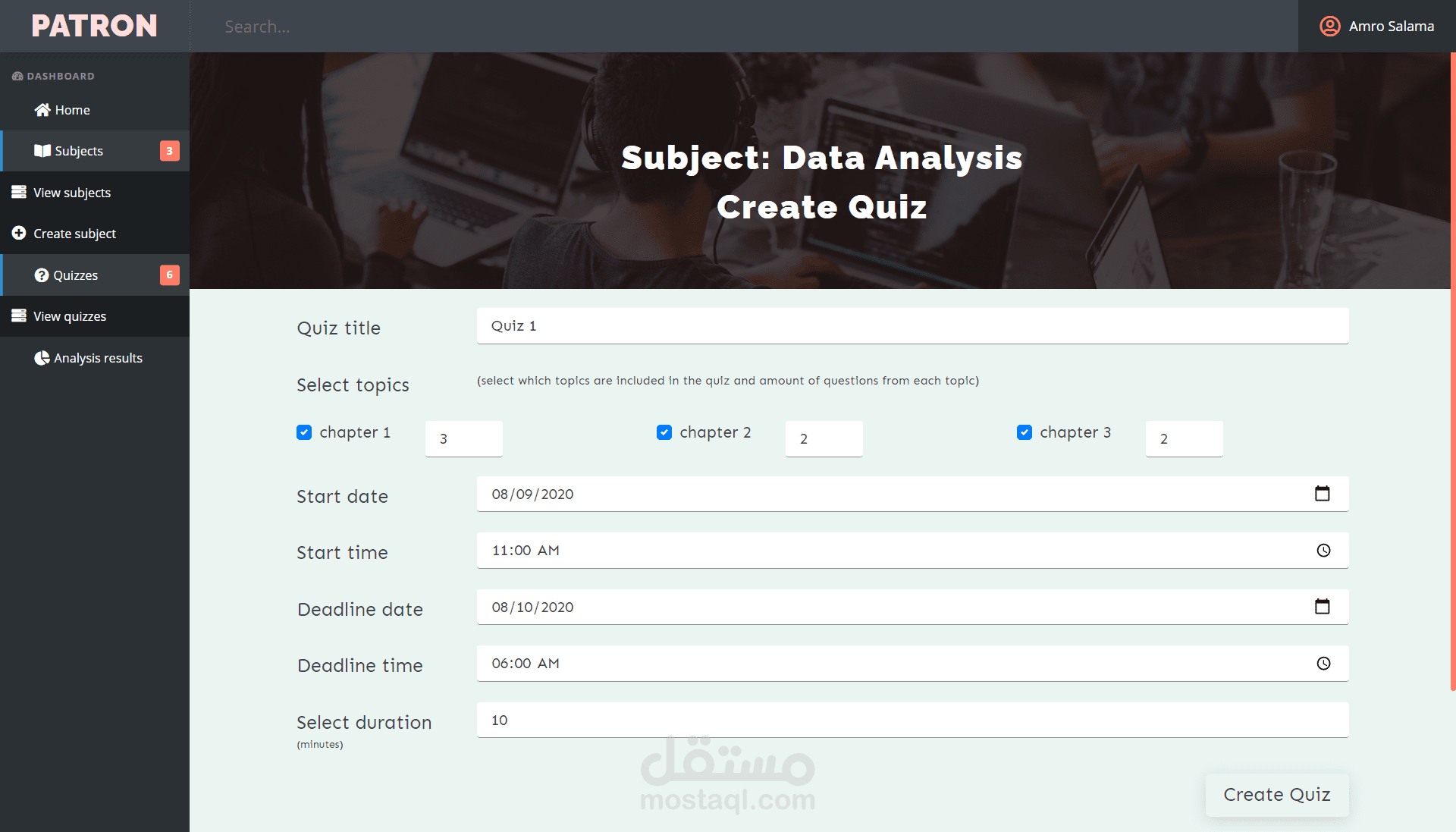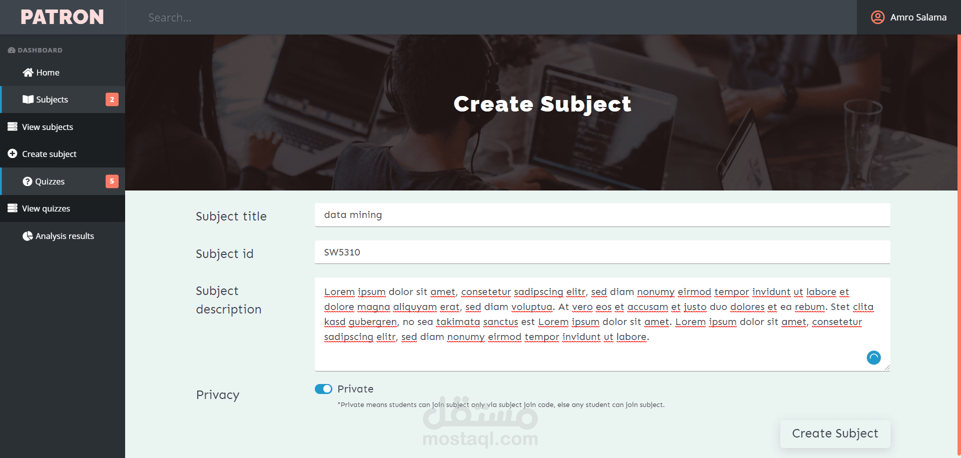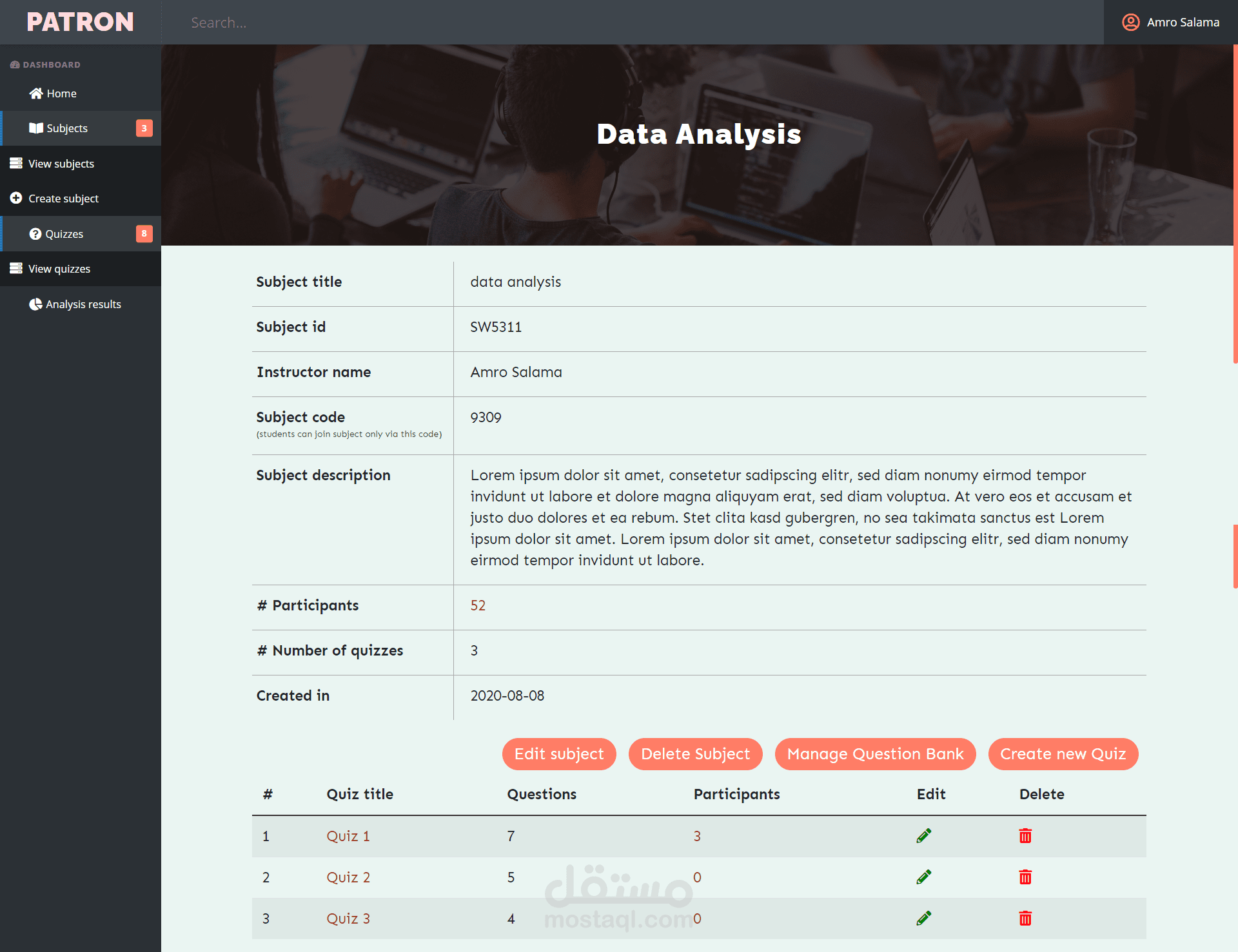 منصة لتمكين المدربين والمدرسين للقيام بعمل صفوف افتراضية يمكنهم من خلالها اضافة طلابهم و عمل امتحانات الكترونية لتدعيم التعليم عن بعد وللتسهيل على المدرسين والطلاب عملية تقديم الاختبارات بشكل سهل و مريح بدون تكلفة او جهد