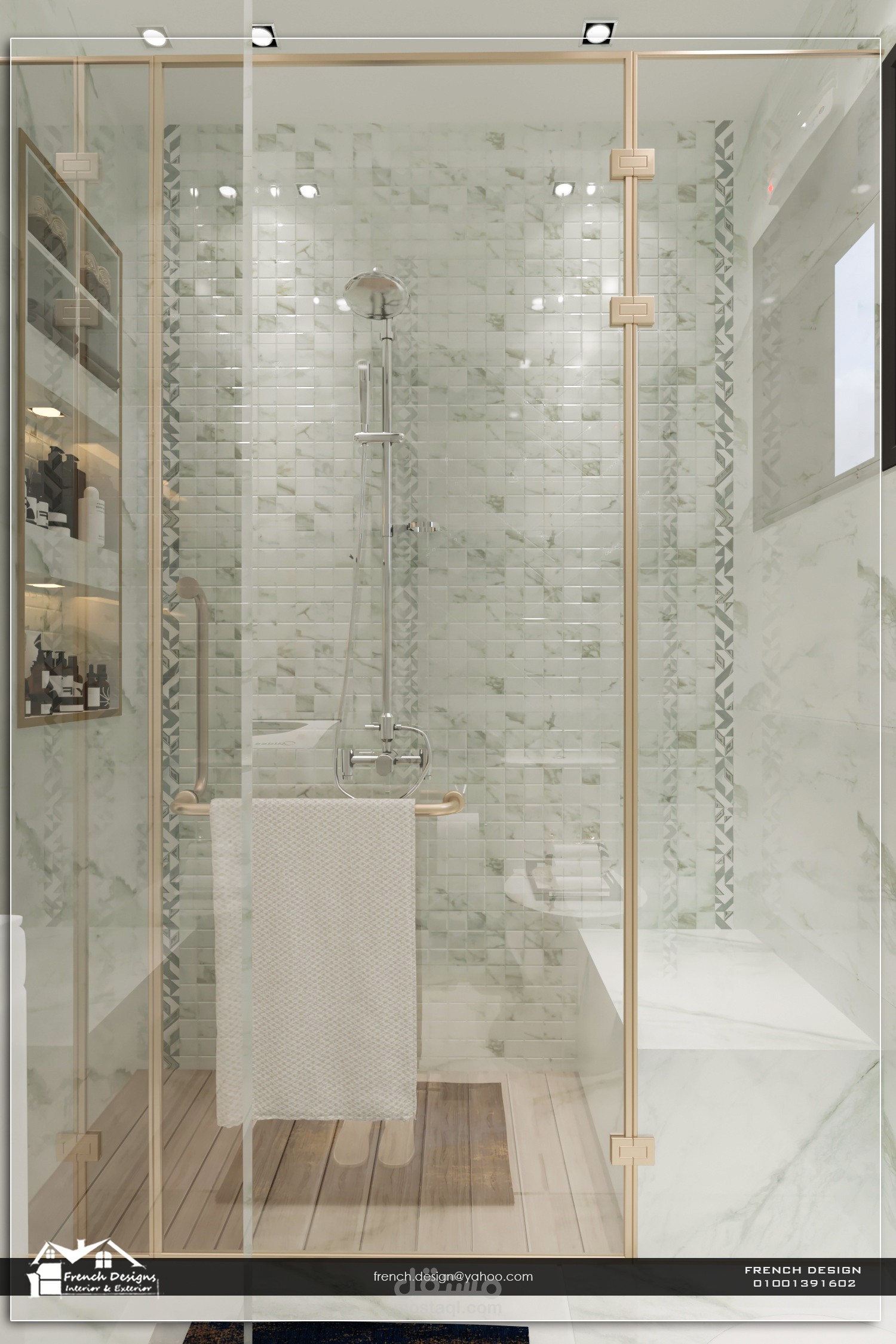 شغلى لصالح مكتب بمصر ، تصميم حمام غرفة ماستر باستخدام برنامج الـ 3ds max و vray و psd