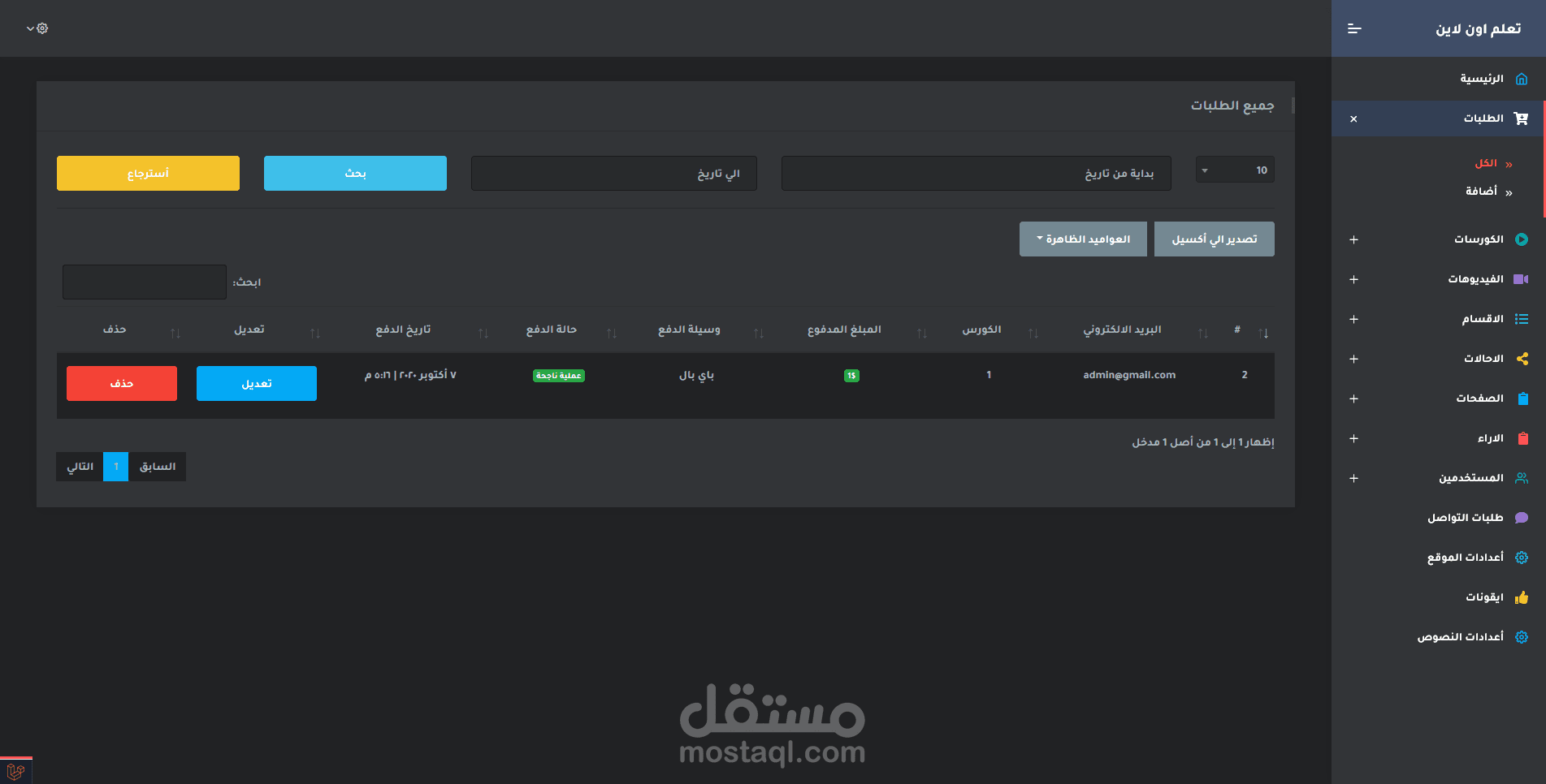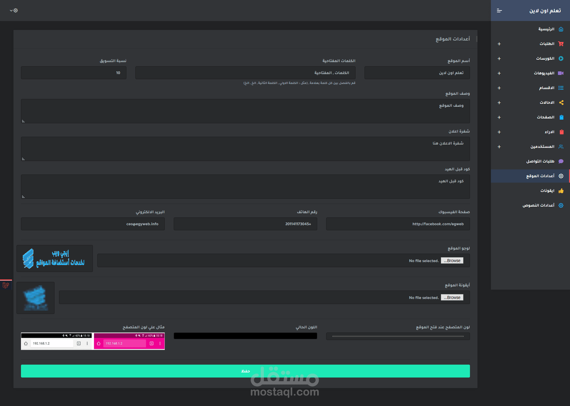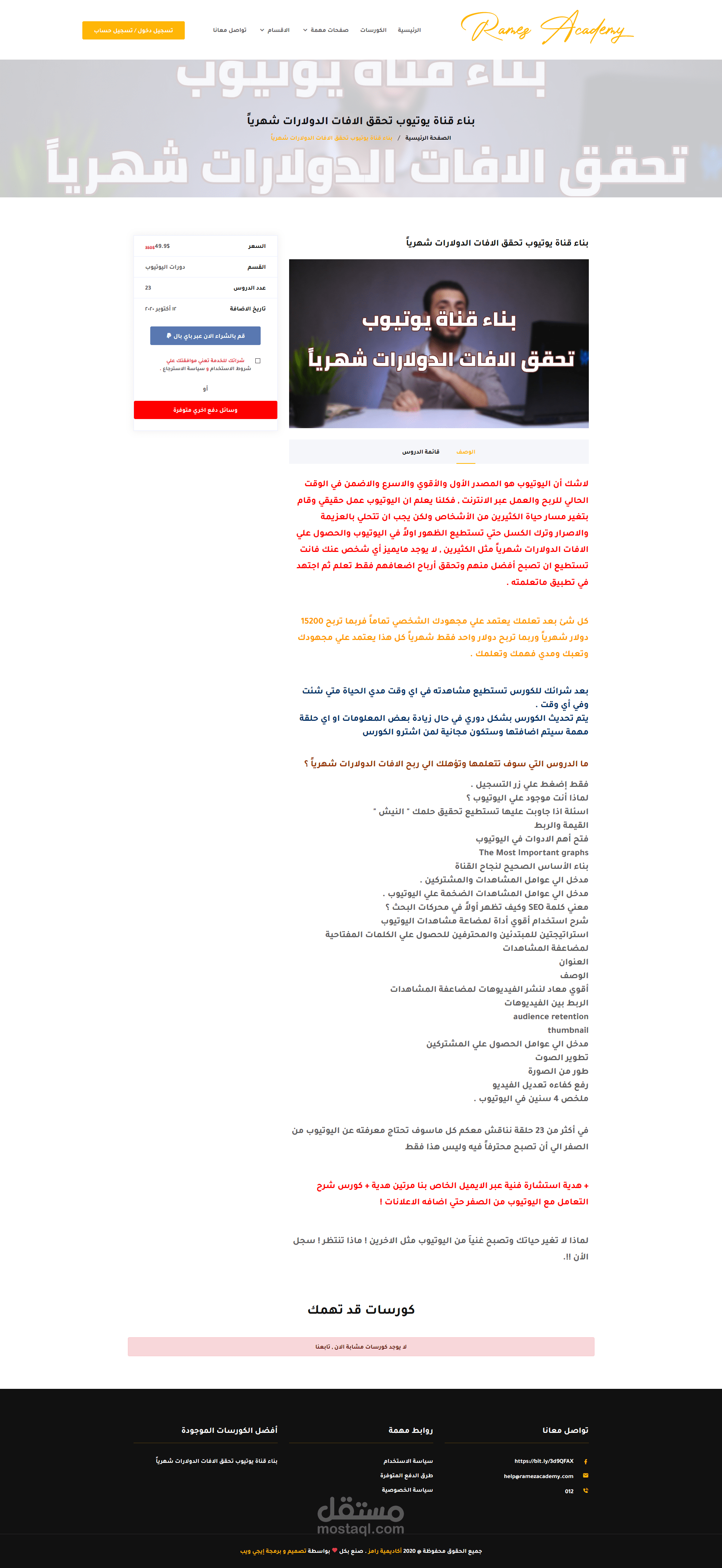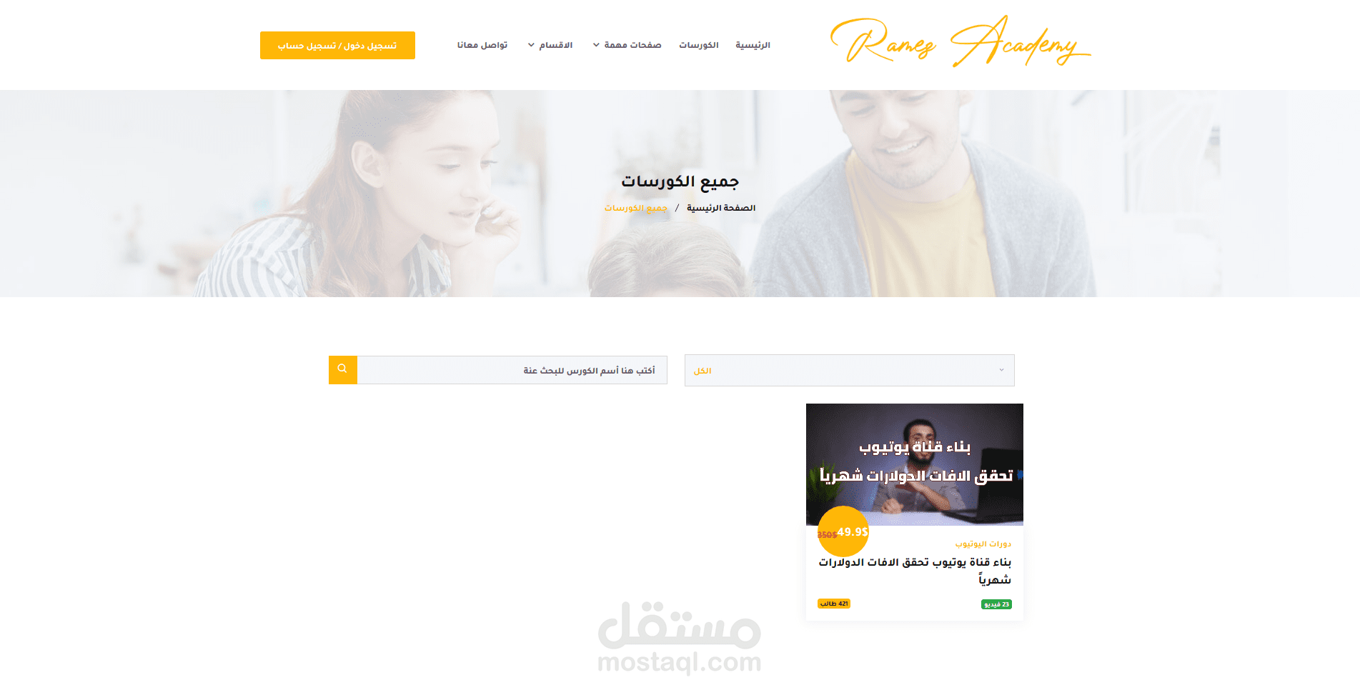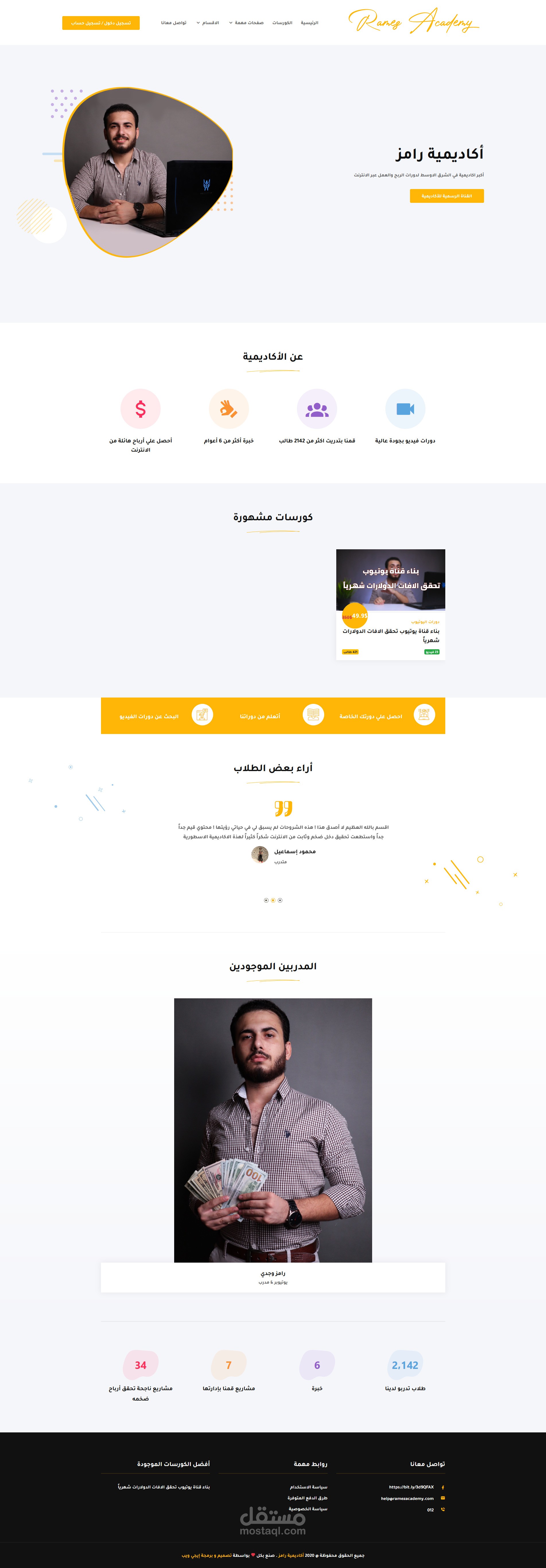 تنفيذ موقع كورسات متكامل بأسم أكاديمية رامز لليوتيوبر رامز وجدي