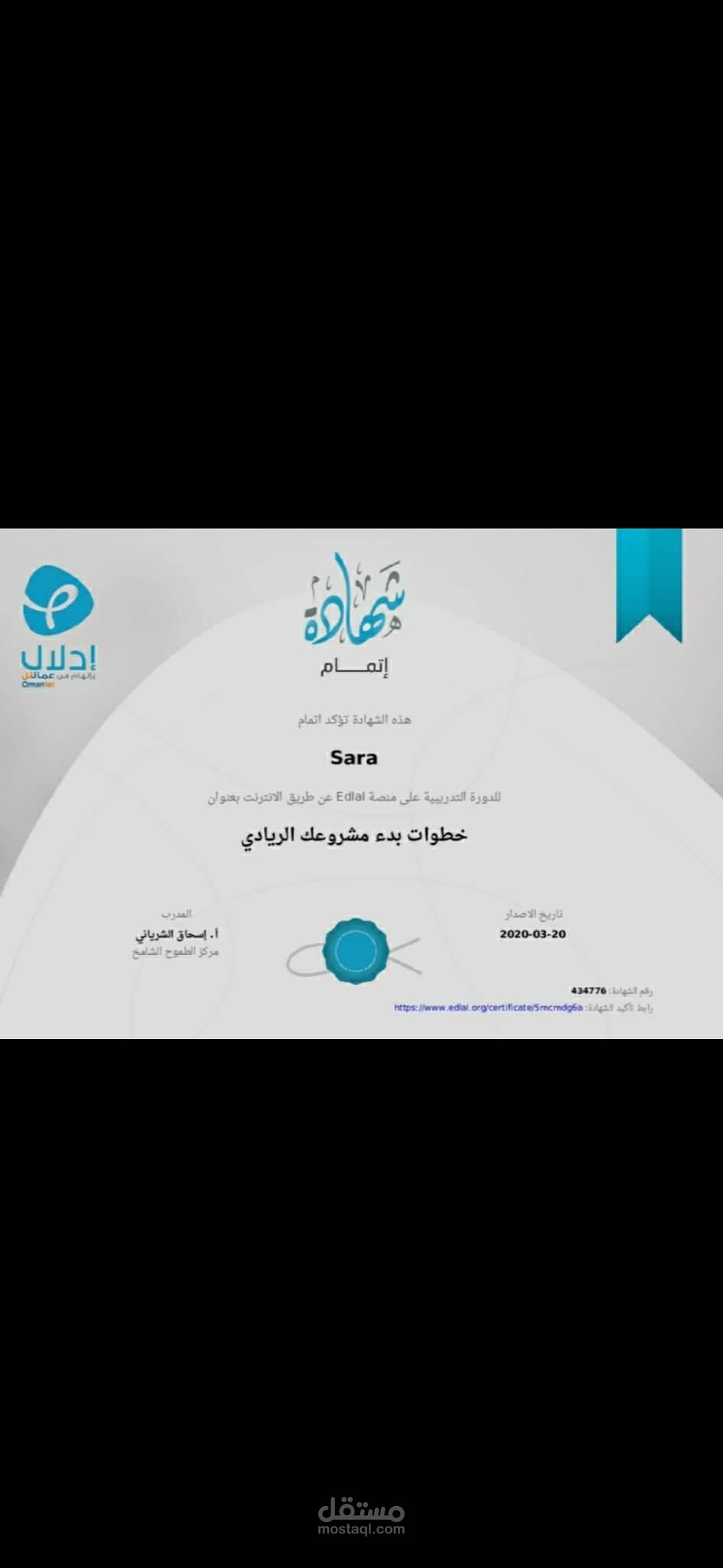 شهادة من منصه ادلال
