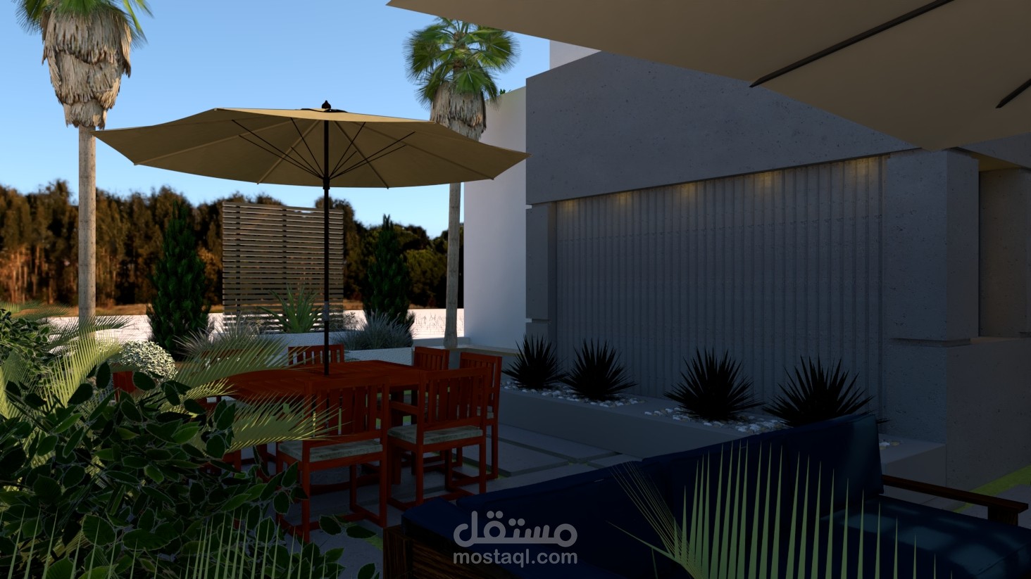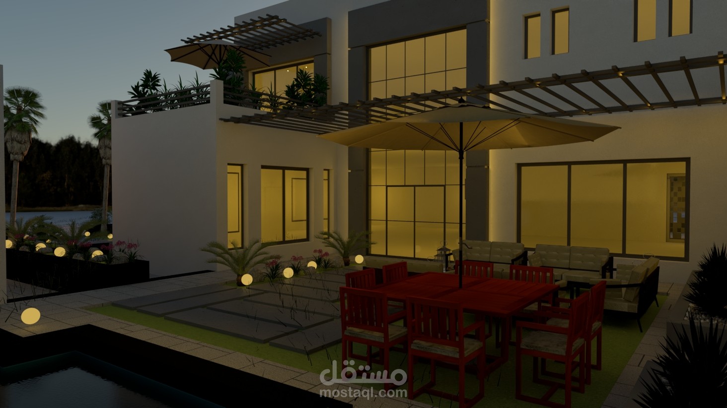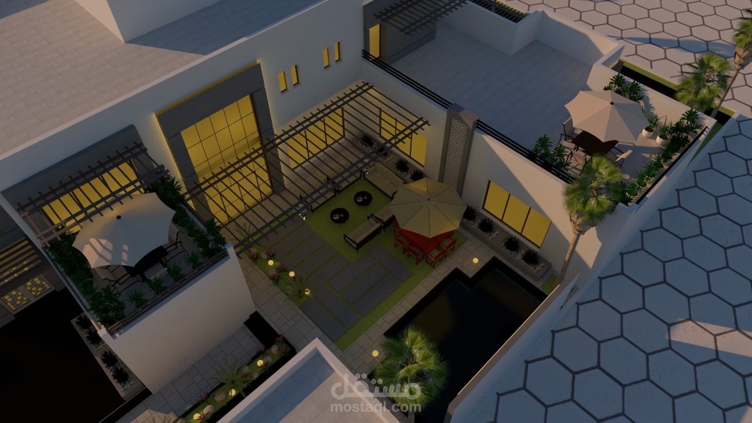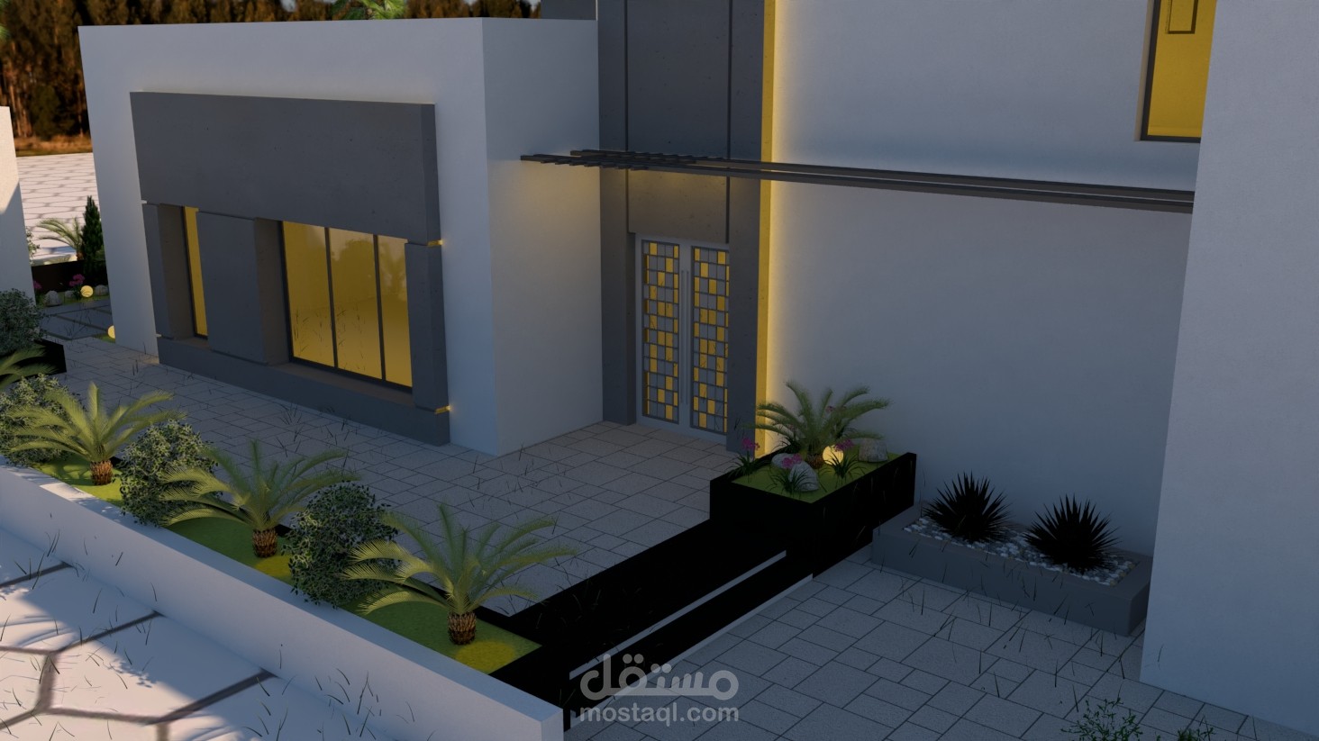 تم العمل مع صاحب المشروع على خلق فضاءات مفتوحة في ايطار تصميم مودرن منسجم مع البيئة المحيطة حيث ان المنطقة زراعية (مدينة الخرج) تم تصميم كافة المخططات التنفيذية بالاضافة الى تصميم الواجهات 3D وعمل مخططات تنفيذية لها ، وكذلك تصميم الحدائق واعداد المخططات التنفيذية لها..