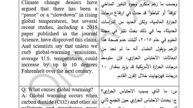 ترجمة مقال عن الاحتباس الحراري 100% High-quality-Human Translation