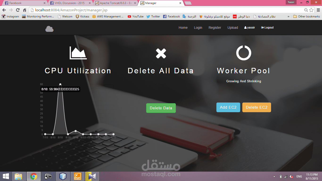 لوحة تحكم لل admin يمكنه من خلالها حزف جميع الصور من s3 وانشاء ec2 جديد وايقاف الحالي