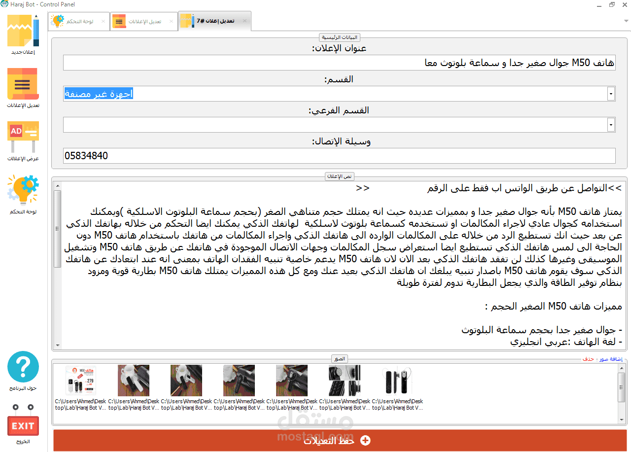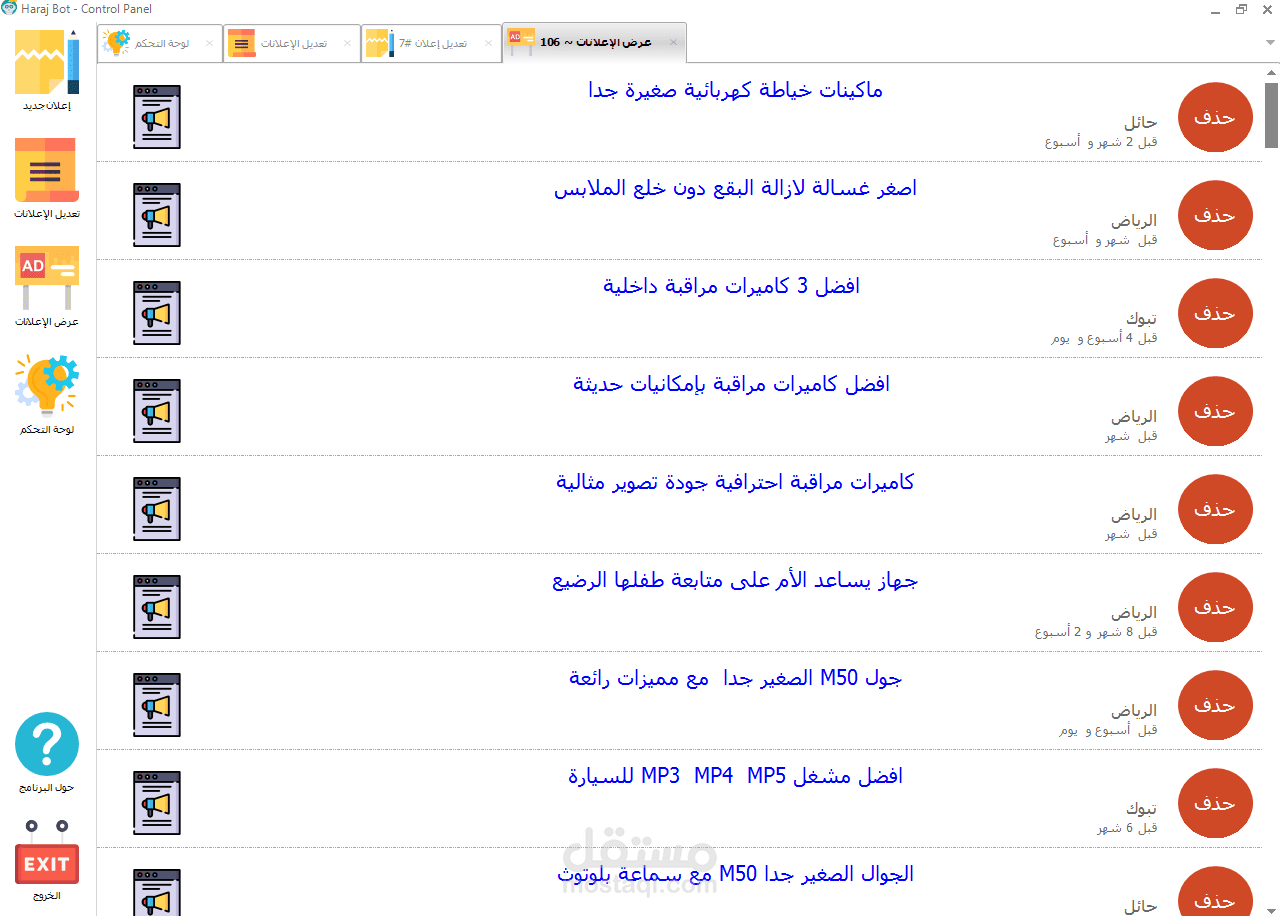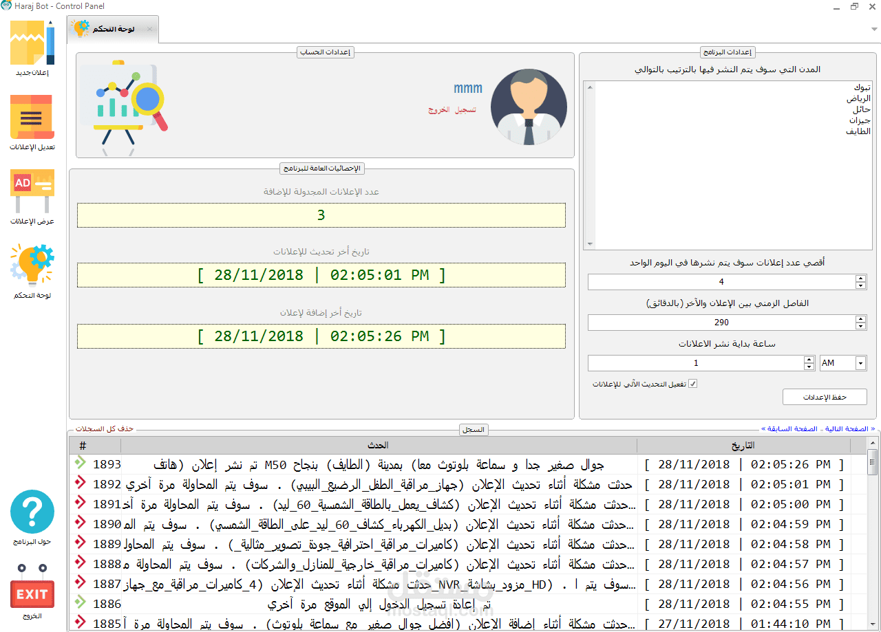 Haraj Bot is an automation desktop application that updates old advertisements on Haraj Site (Advertisements Site) and Upload advertisements in a specific time which you were specified and manage existing ads and delete it if you want. it's full local control panel for site & Auto-Publish ads with schedule
