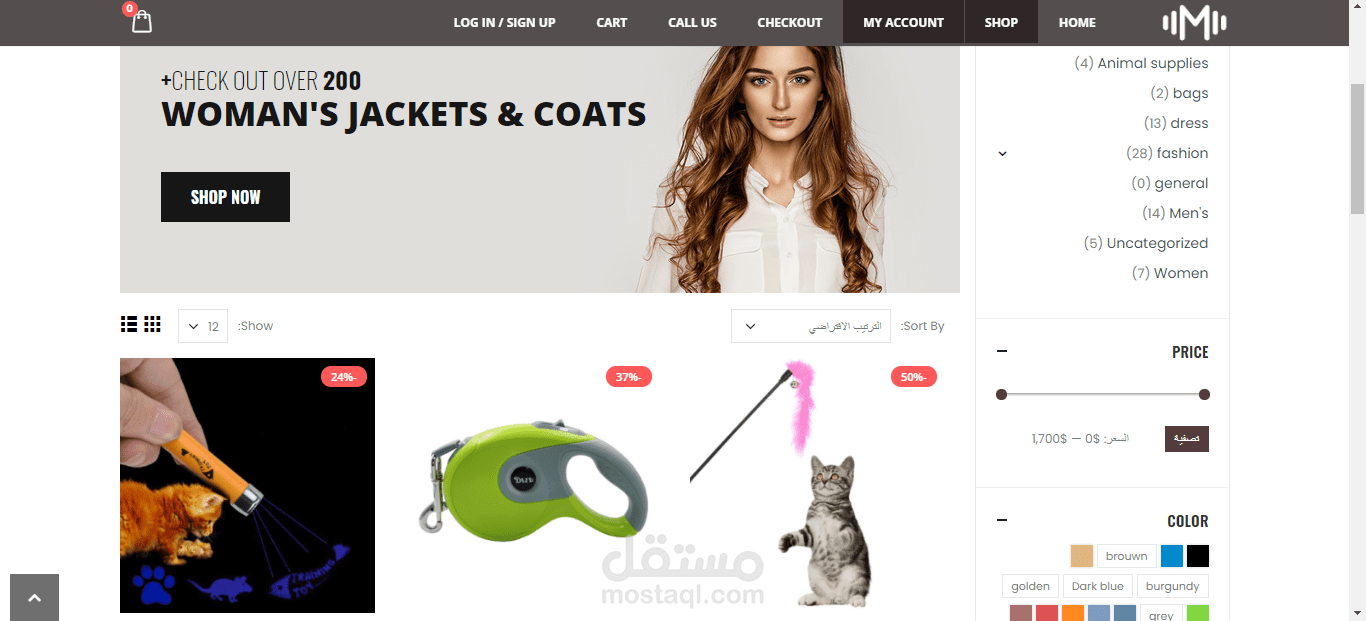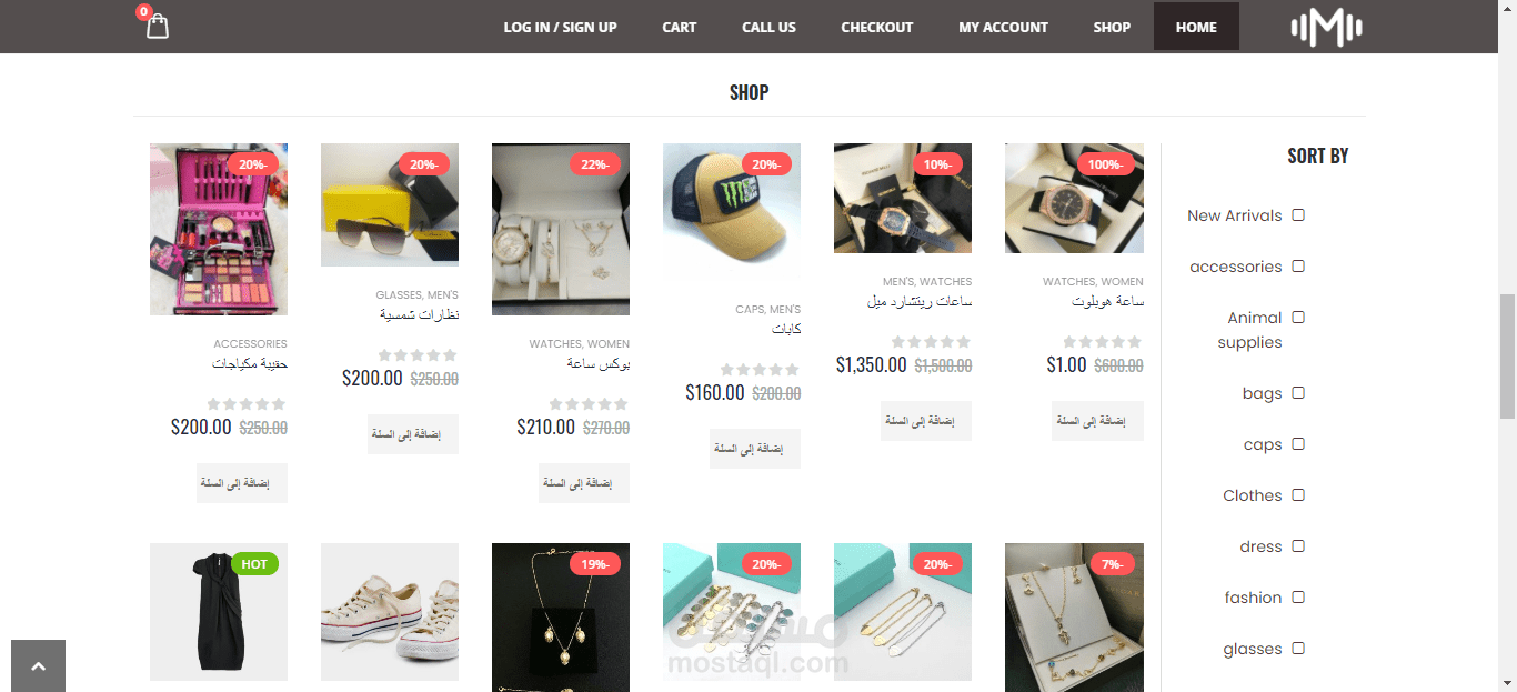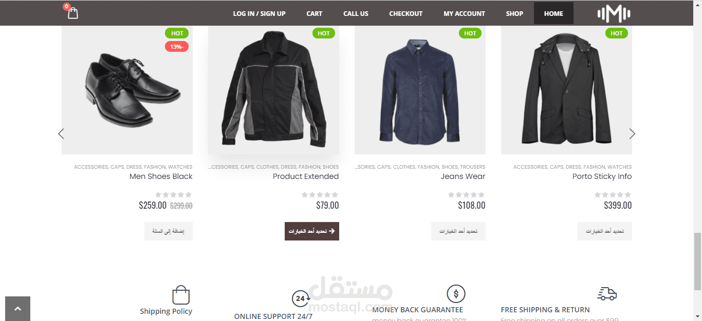 متجر الكتروني يقوم بعرض بعض الملابس والاكسسوارات