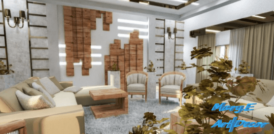 تصميم مجلس 3D بالديكور و الفرش و الدهانات