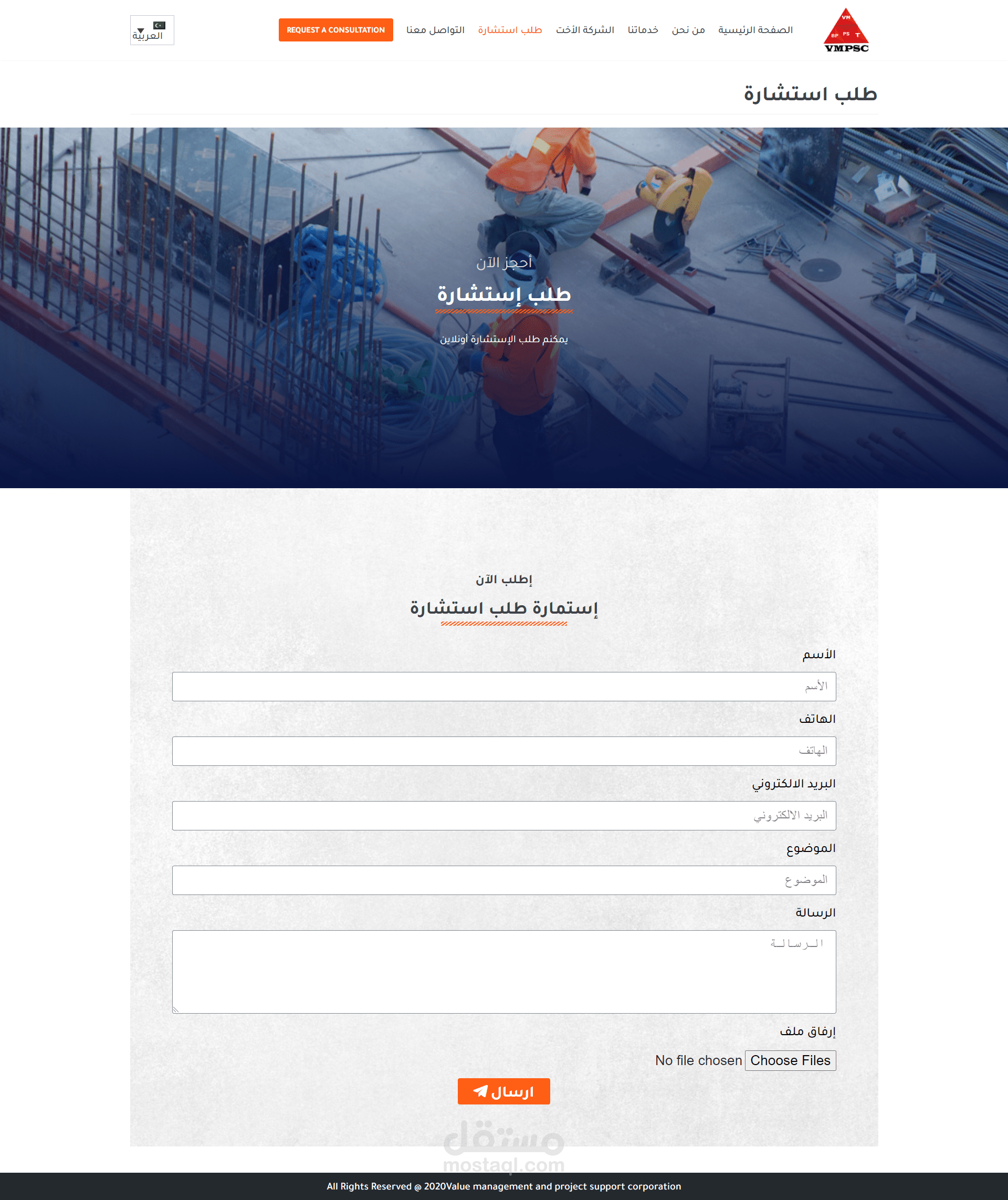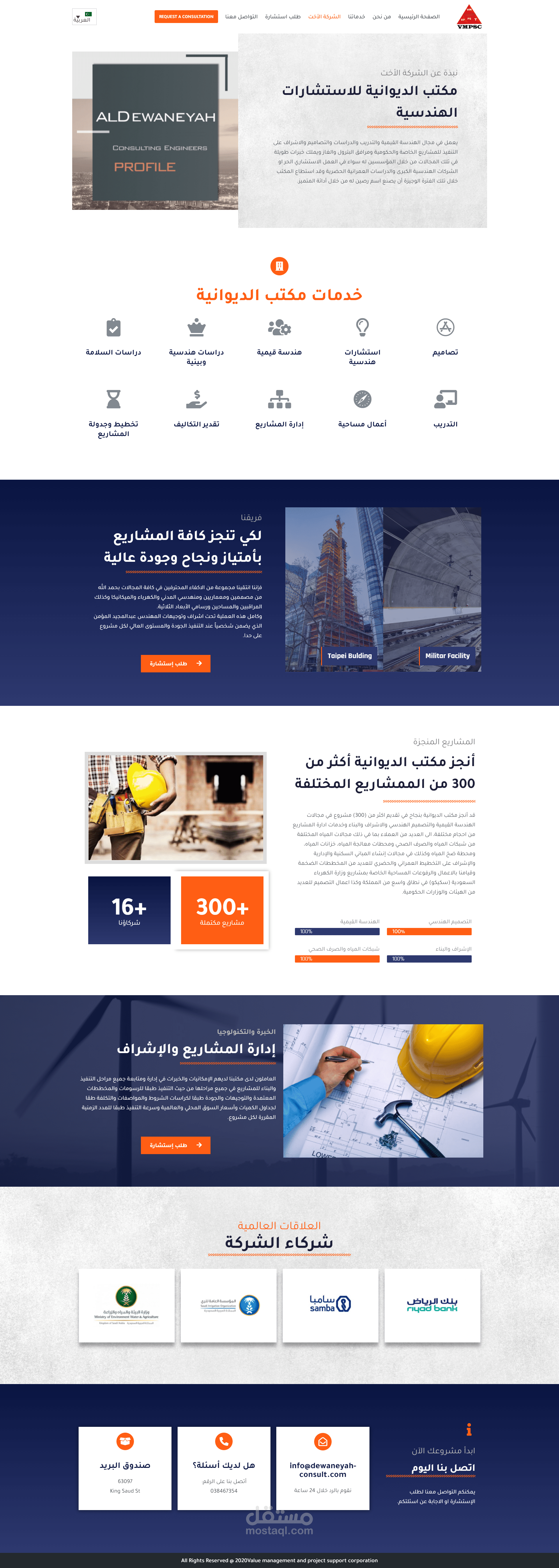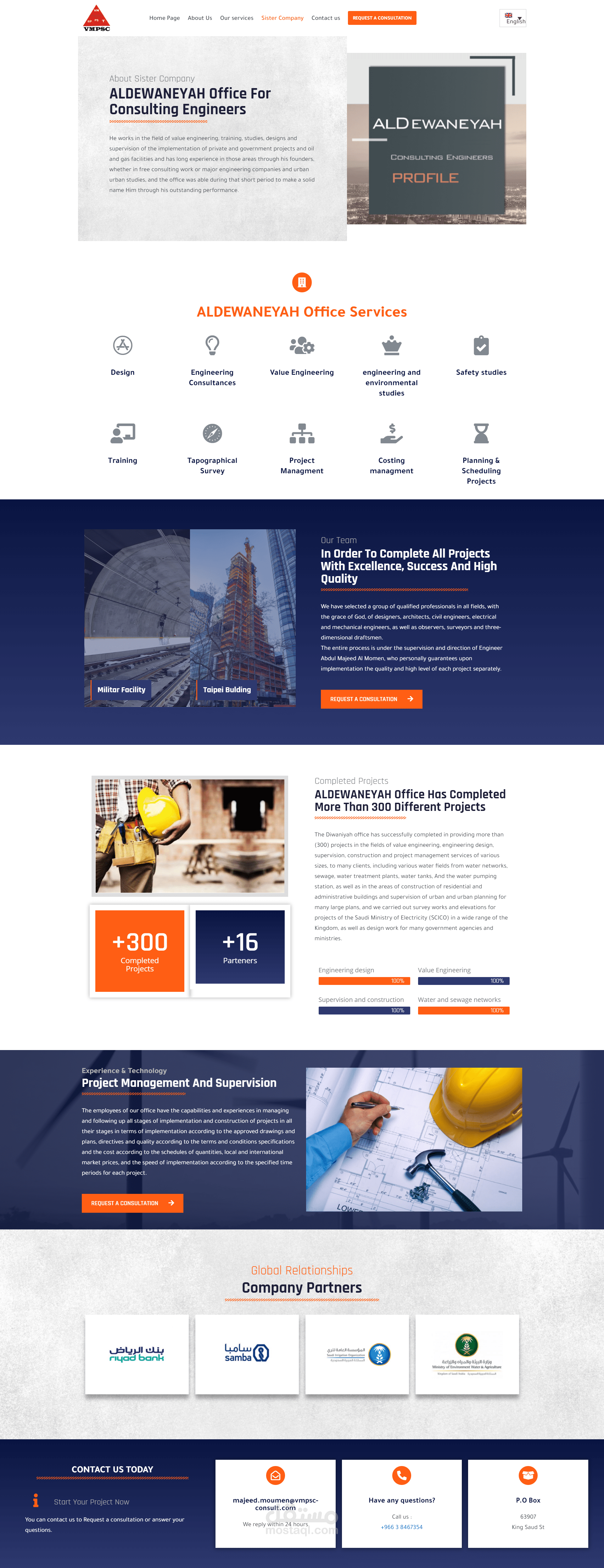 تم تصميم موقع استشارات هندسية متعدد اللغات عربي انجليزي من الصفر باستخدام Elementor Page Buldier for Wordpress