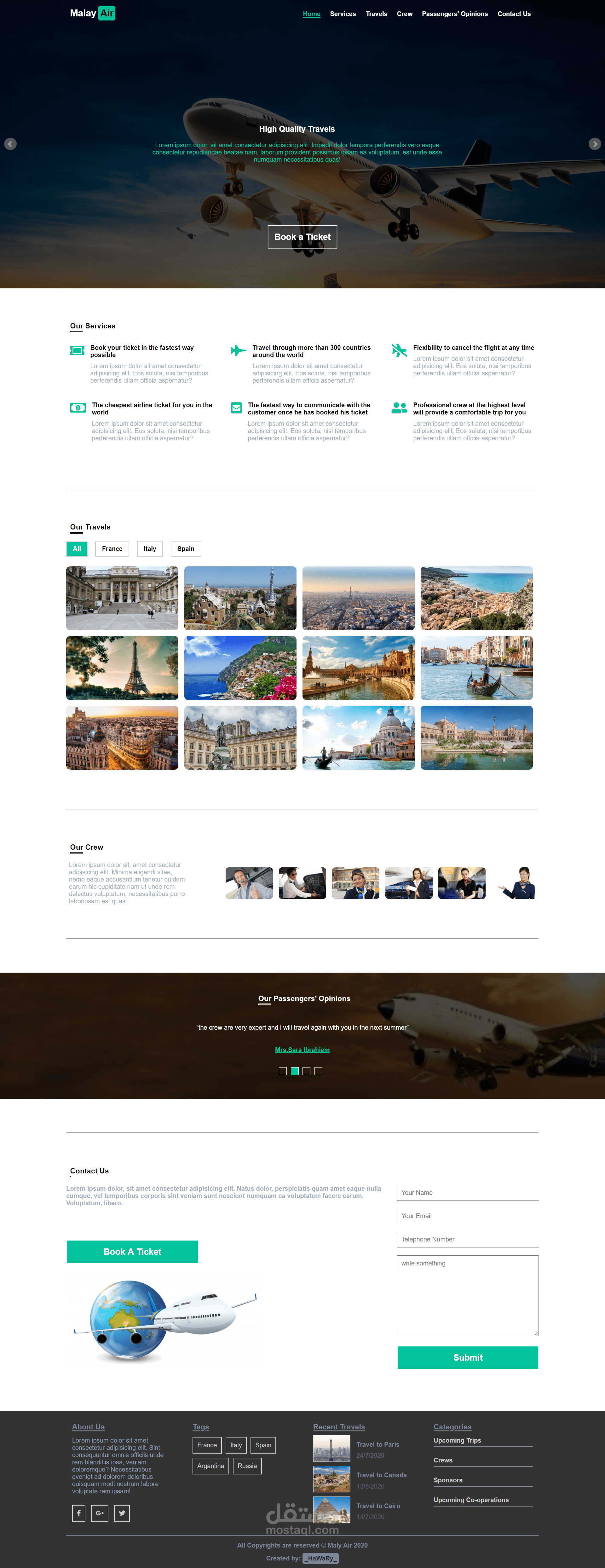 قالب صفحة HTML5 واحدة لشركة طيران أجنبية.