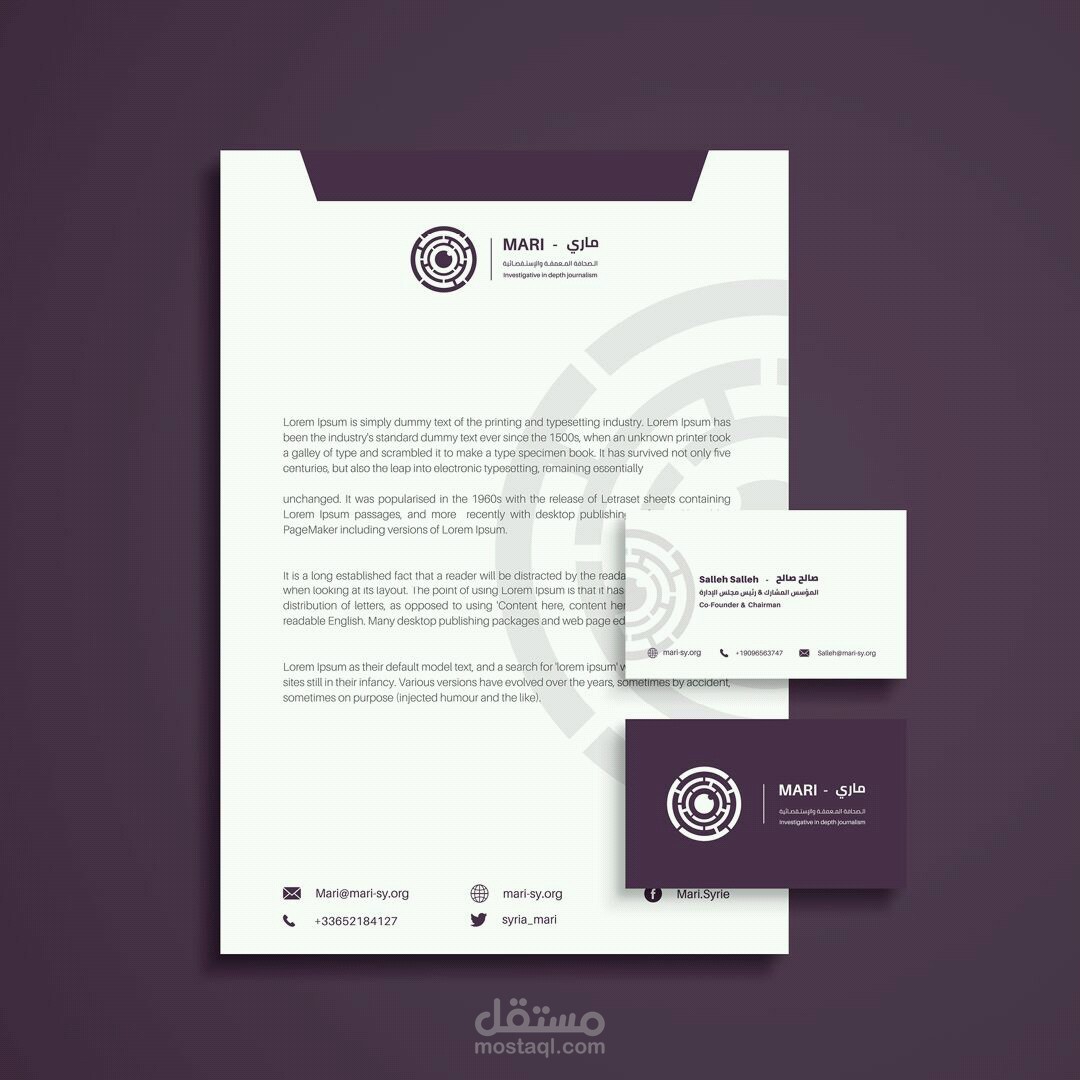 تصميم هوية بصرية متكاملة لمؤسسة ماري للصحافة المعمقة والإستقصائية.