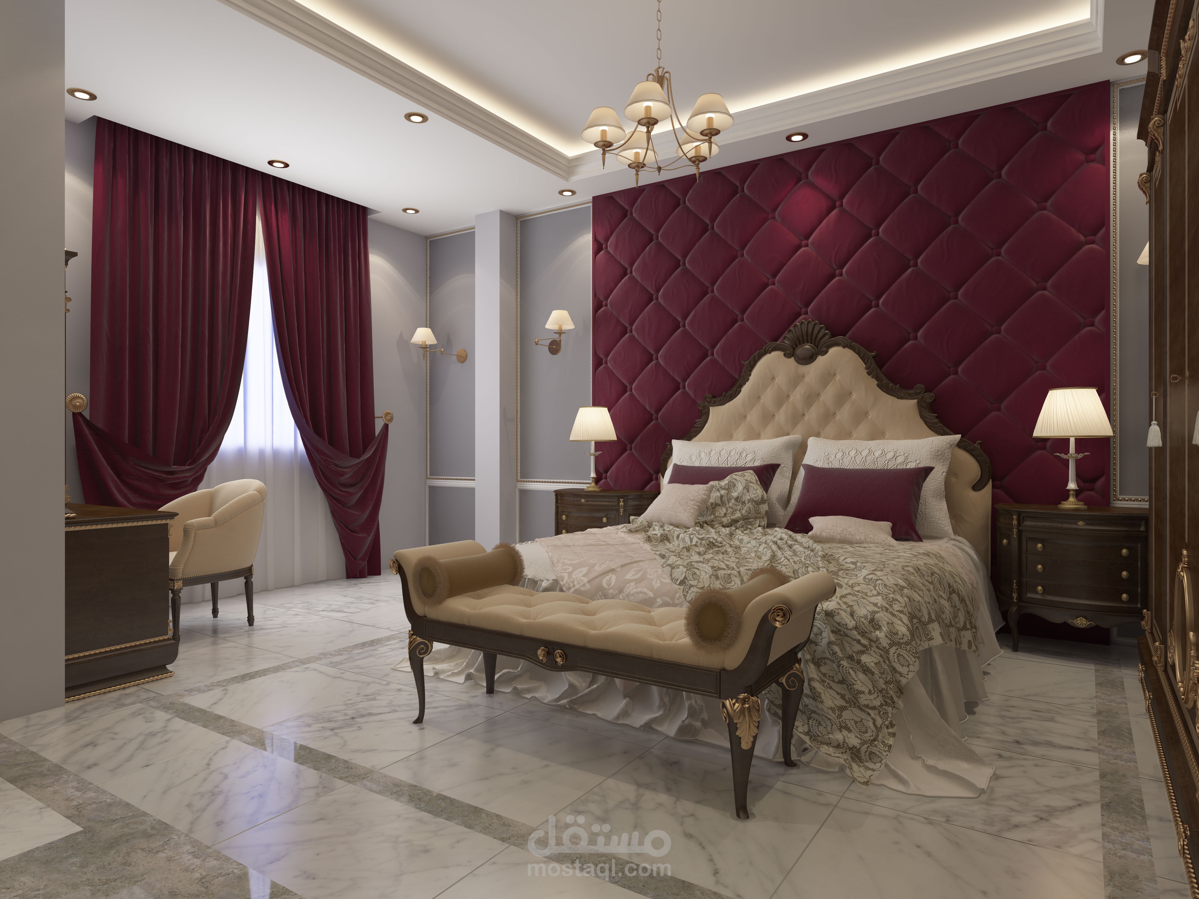 تصميم داخلي وديكور لغرفة نوم رئيسيه