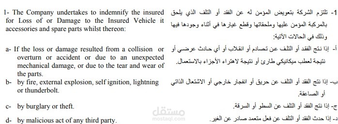 جزء من ترجمة قانونية لعقد لأحد الشركات