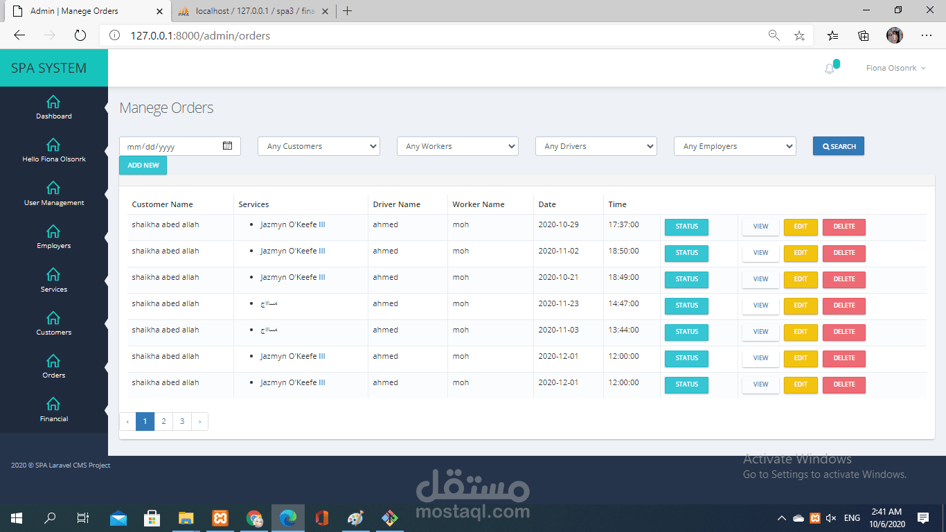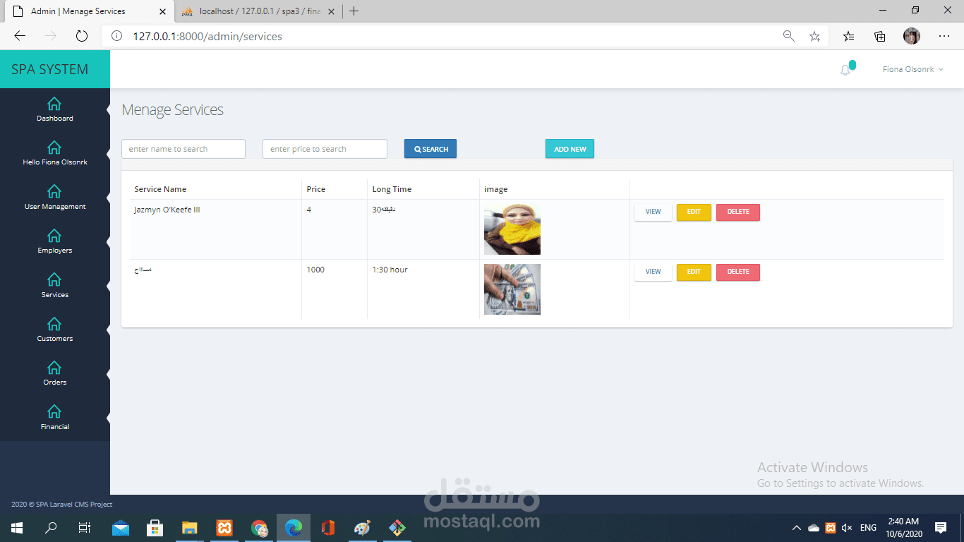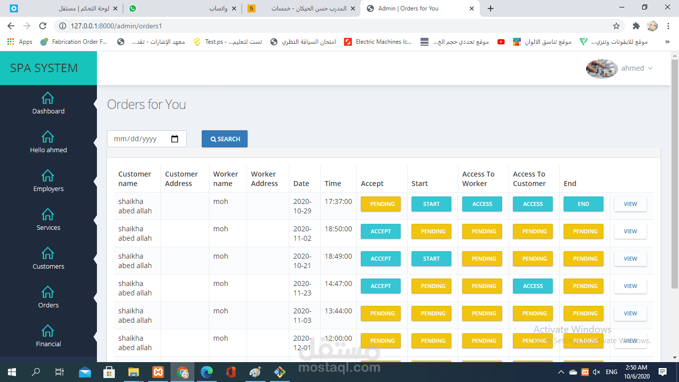 برنامج اداري اون لاين لمجموعه مراكز spa لتنظيم العمل والمواعيد بين موظفينها