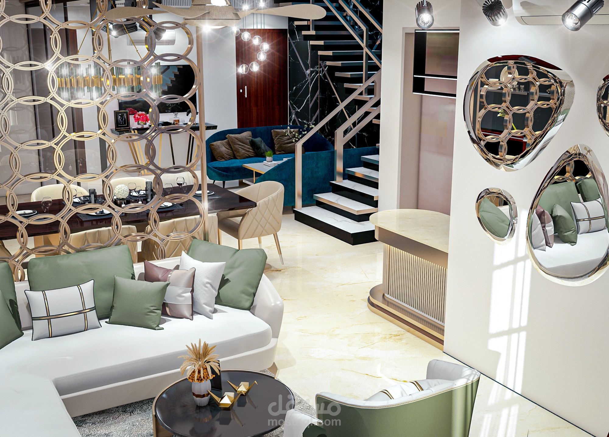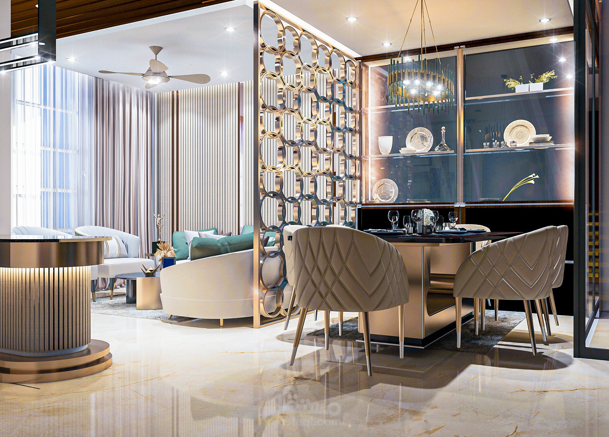 Modern reception ( drawing area , dinning area and living area ) ,in india