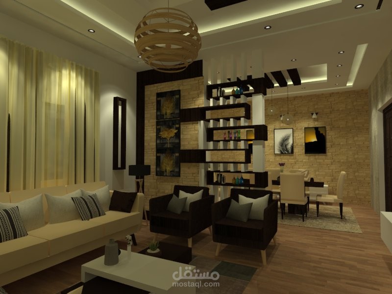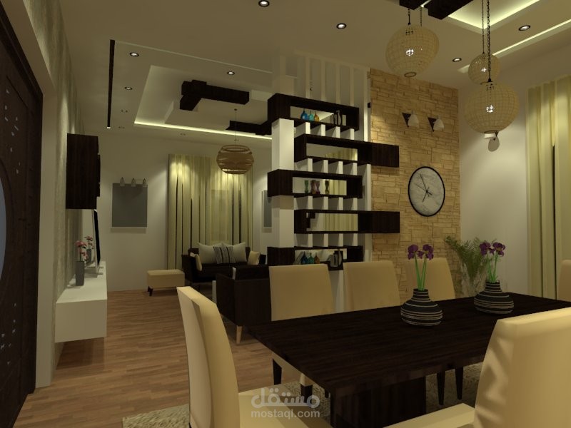 تصميم غرفة طعام وصالة معيشة من تصميمي الخاص