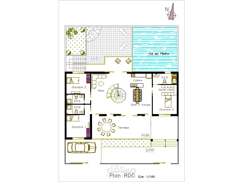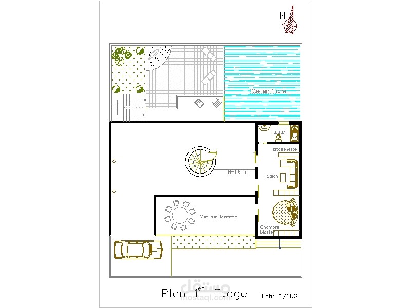 Il s'agit d'un chalet en milieu urbain, conçu selon le principe du plan libre