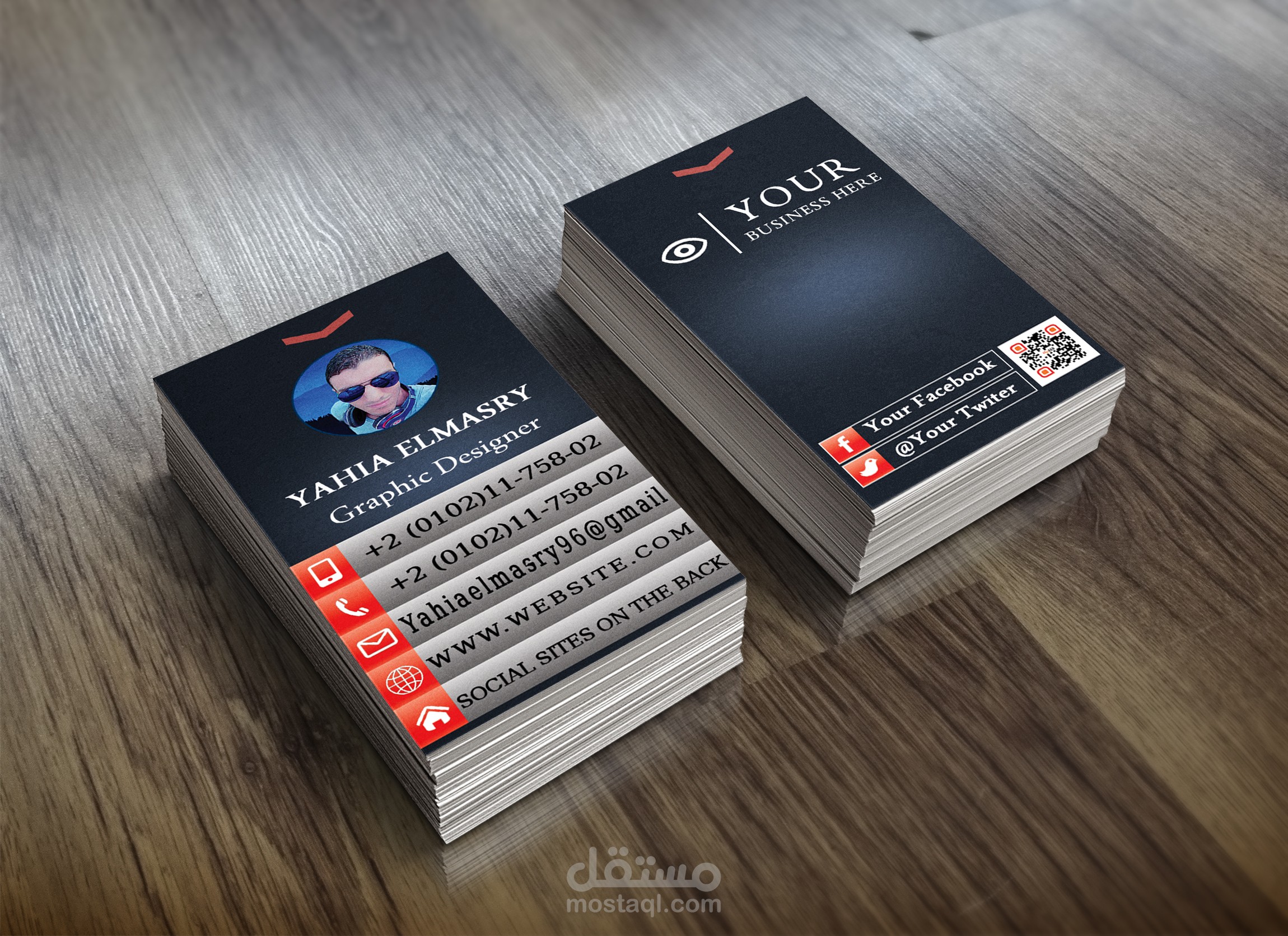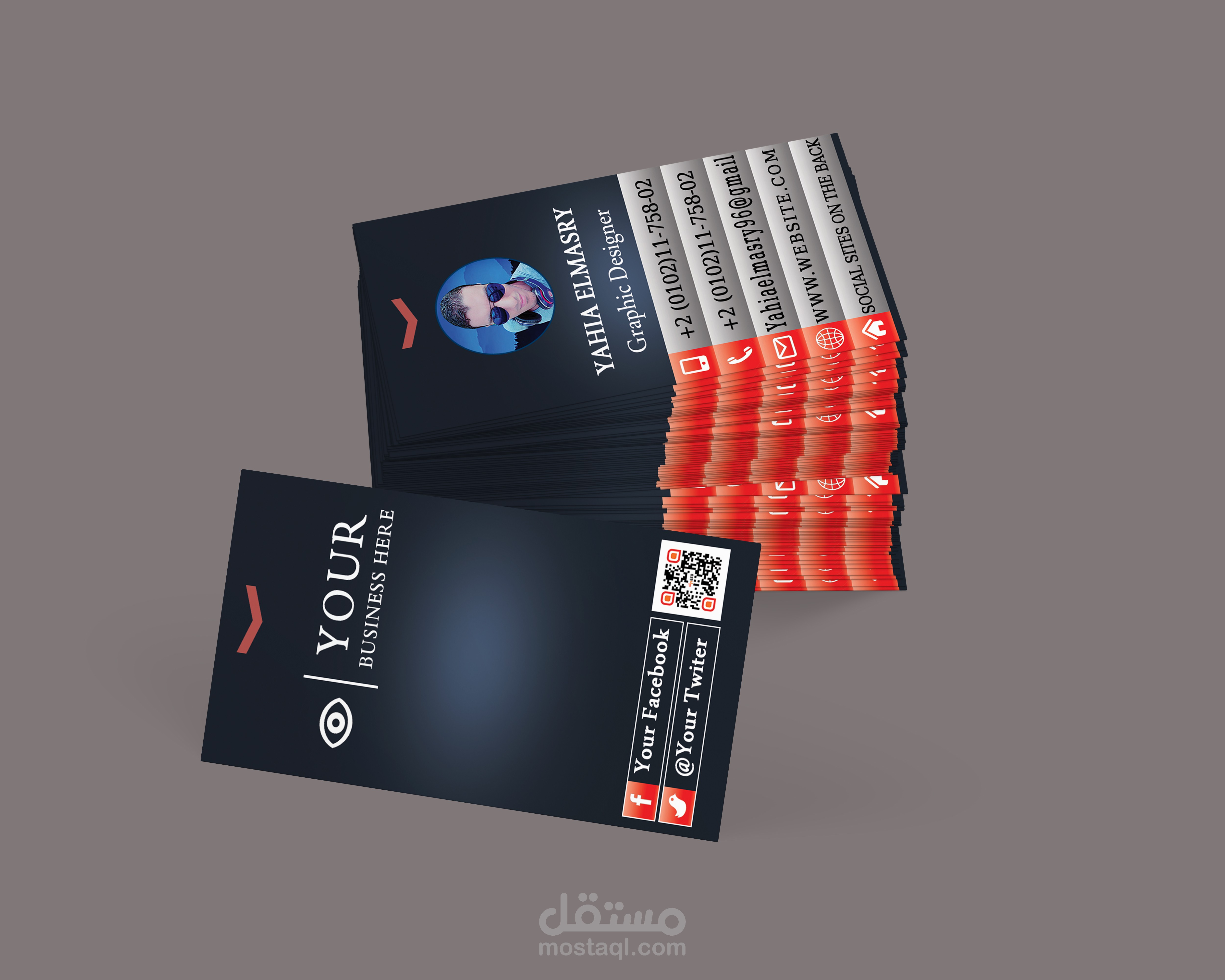 أحد الأفكار لتصميم كارت شخصي مدرج الصورة والبيانات