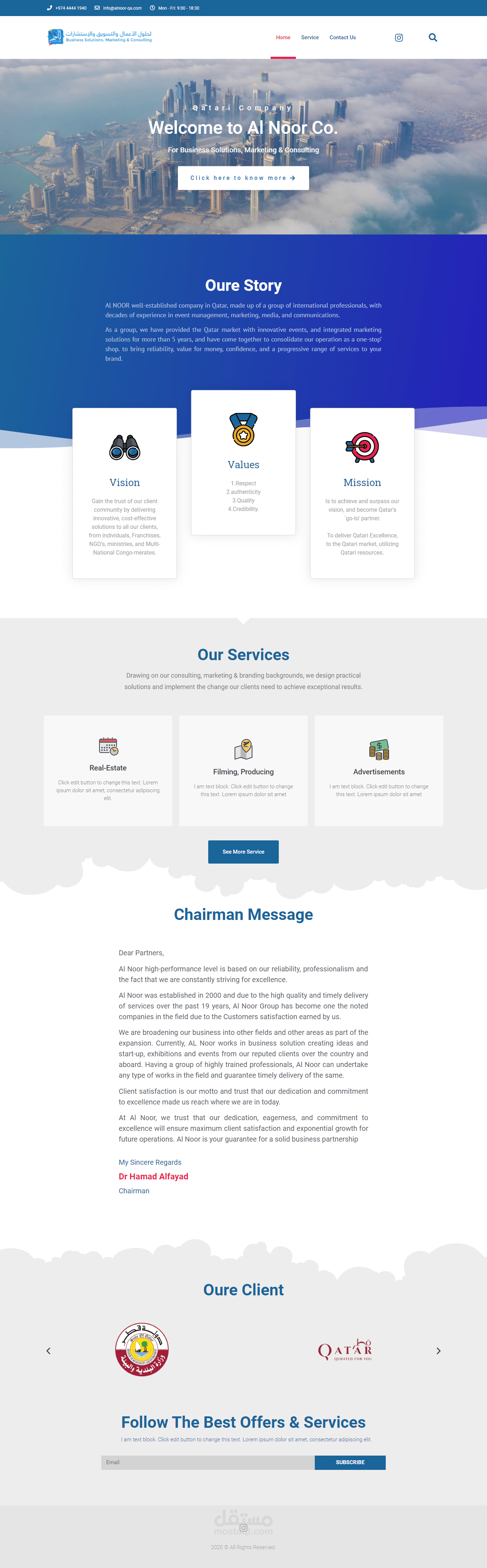 تم برمجة وتصميم الموقع لصالح شركة النور الراسخة في قطر