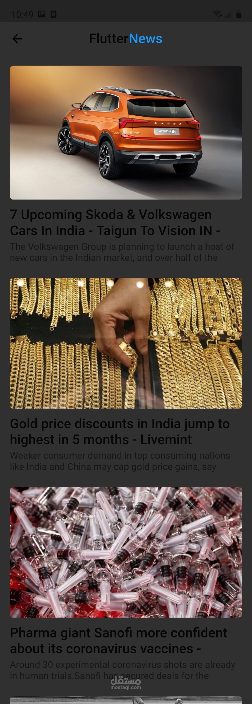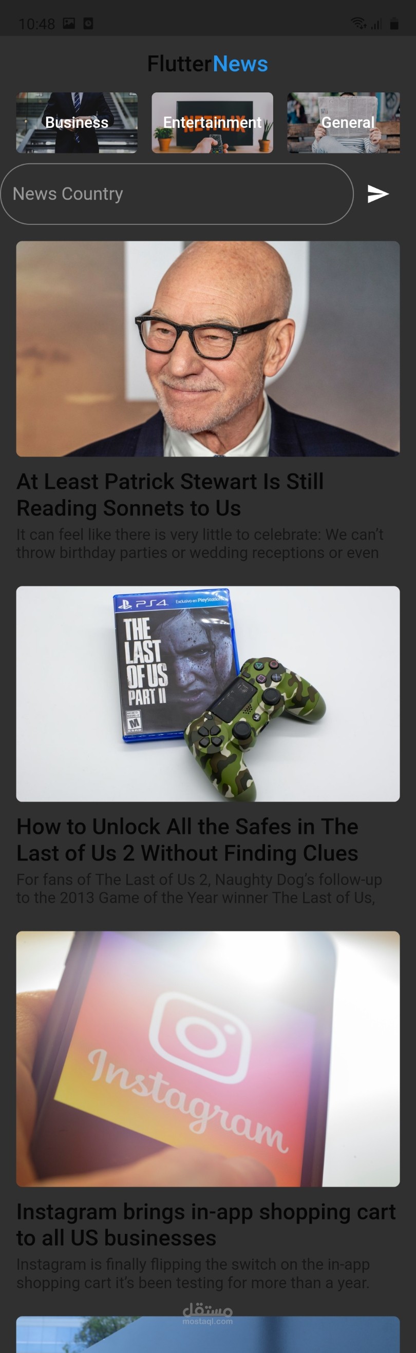 تطبيق لعرض الأخبار بشكل عام يوجد ايضا خيار البحث عن اخبار مدينة معينة ويوجد عدة مجالات يختار المستخدم منها مجال معين لعرض الأخبار الخاصة فيه