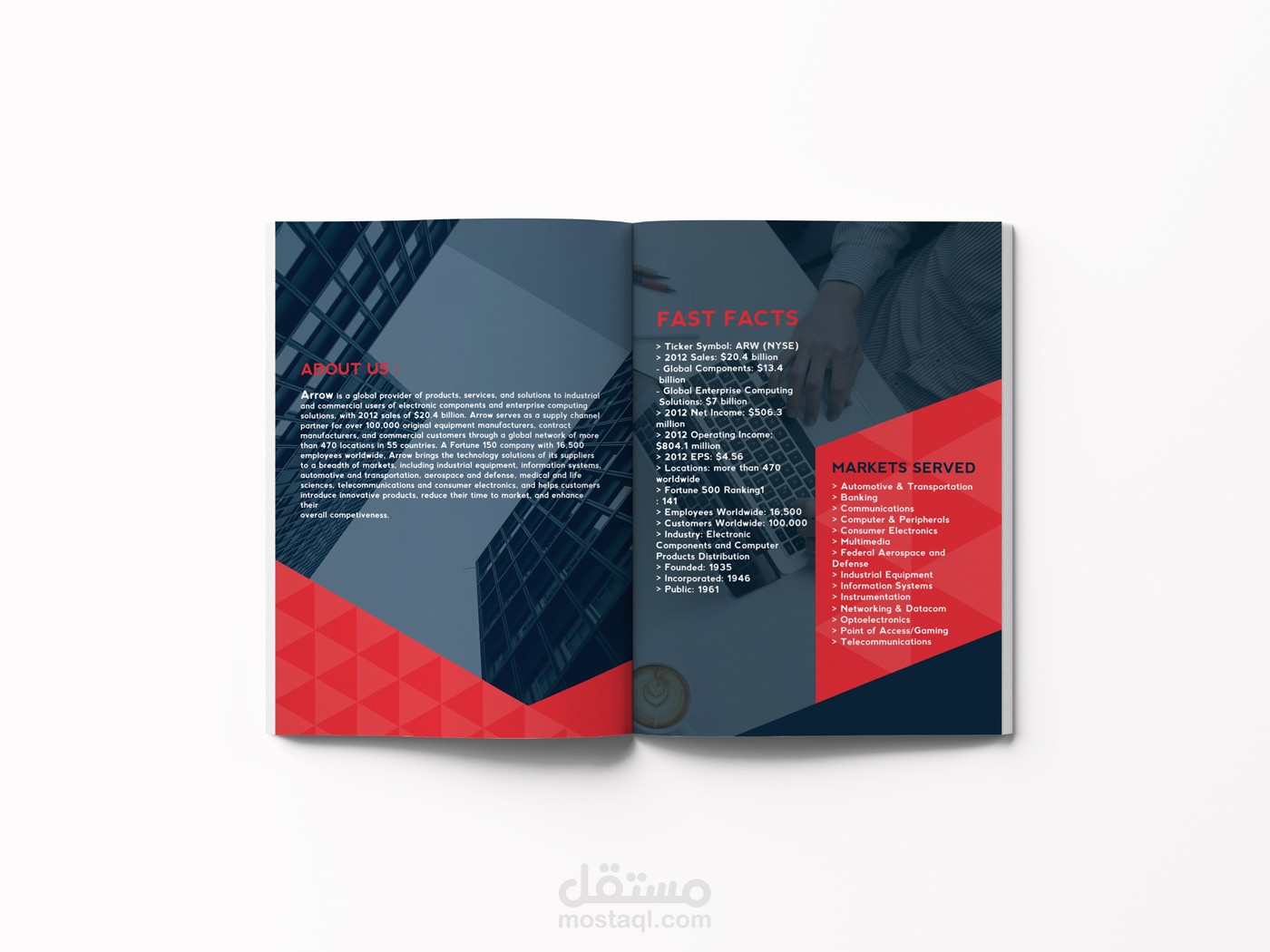تصميم بروفايل نموذجي لمؤسسة آرون بعدد من الصفحات.