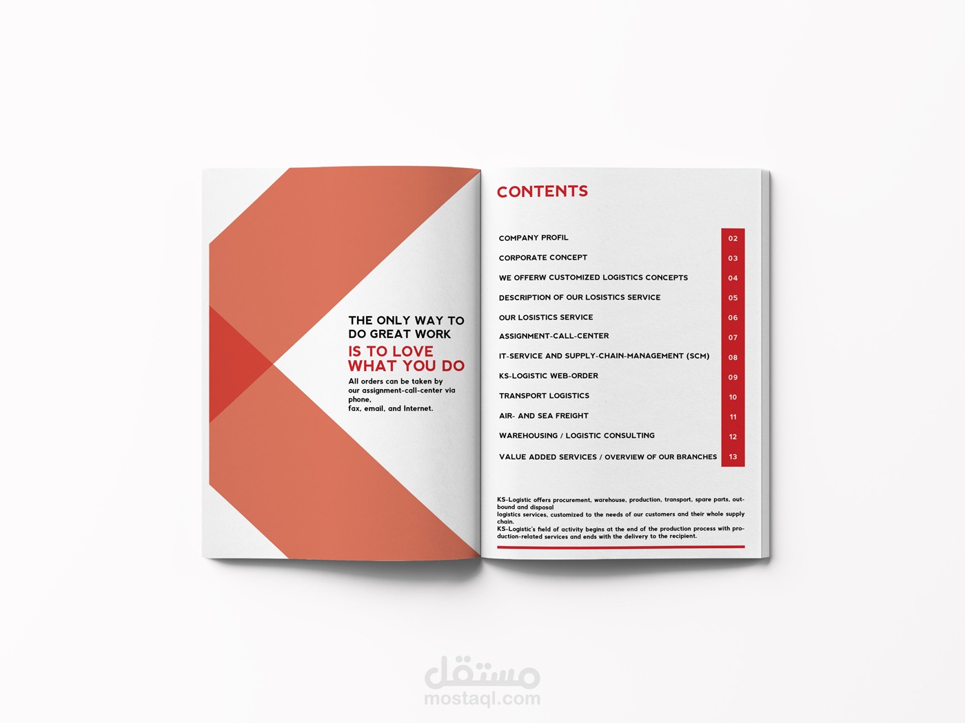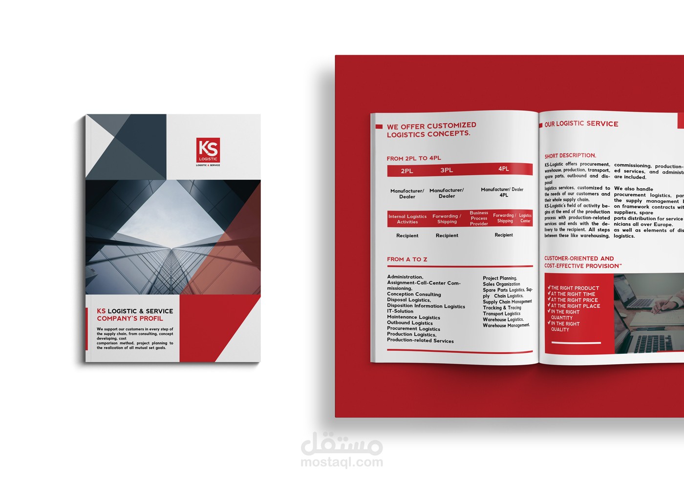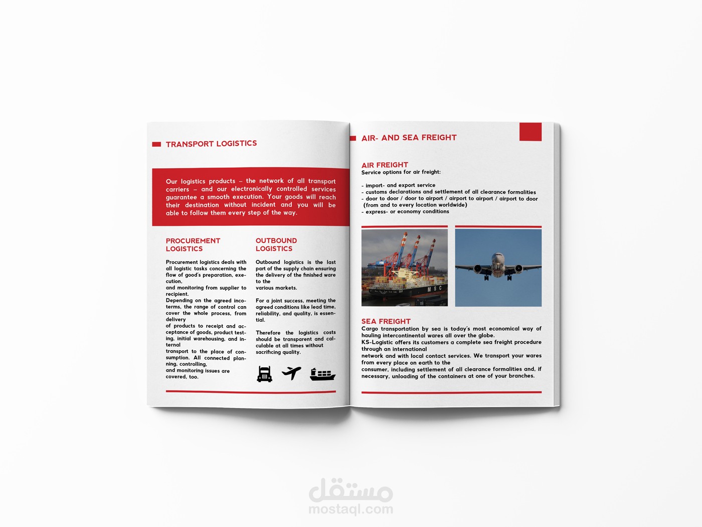 تصميم بروفايل بعدد من الصفحات لمؤسسة خدمات لوجيستيكية.