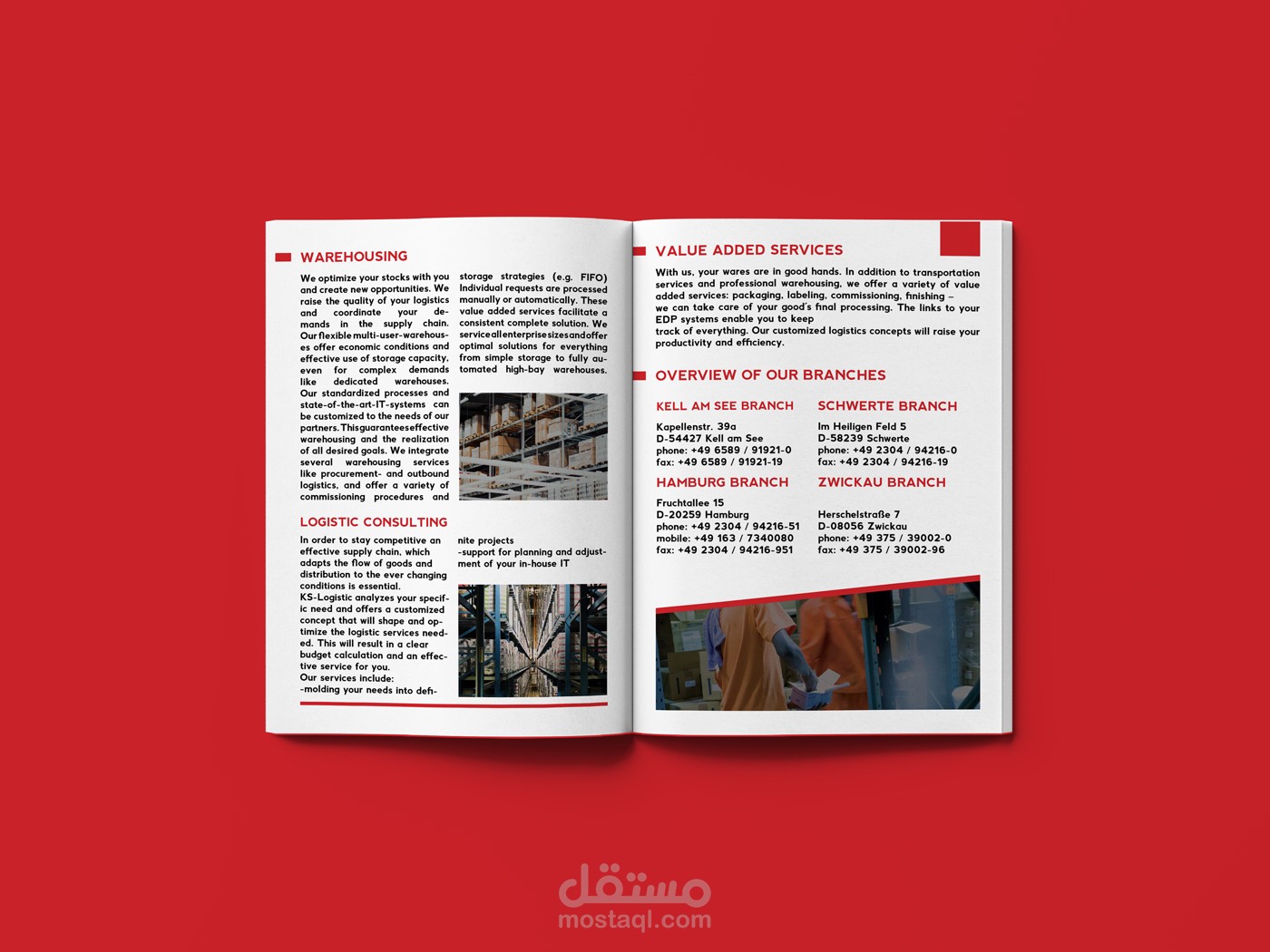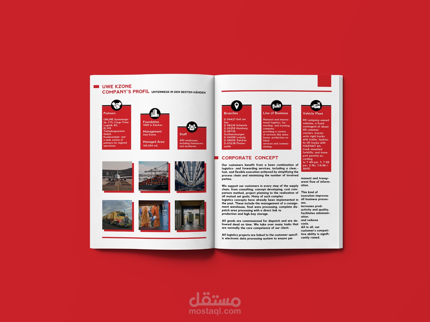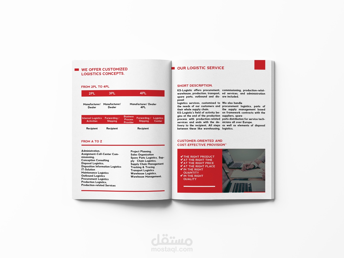 تصميم بروفايل بعدد من الصفحات لمؤسسة خدمات لوجيستيكية.