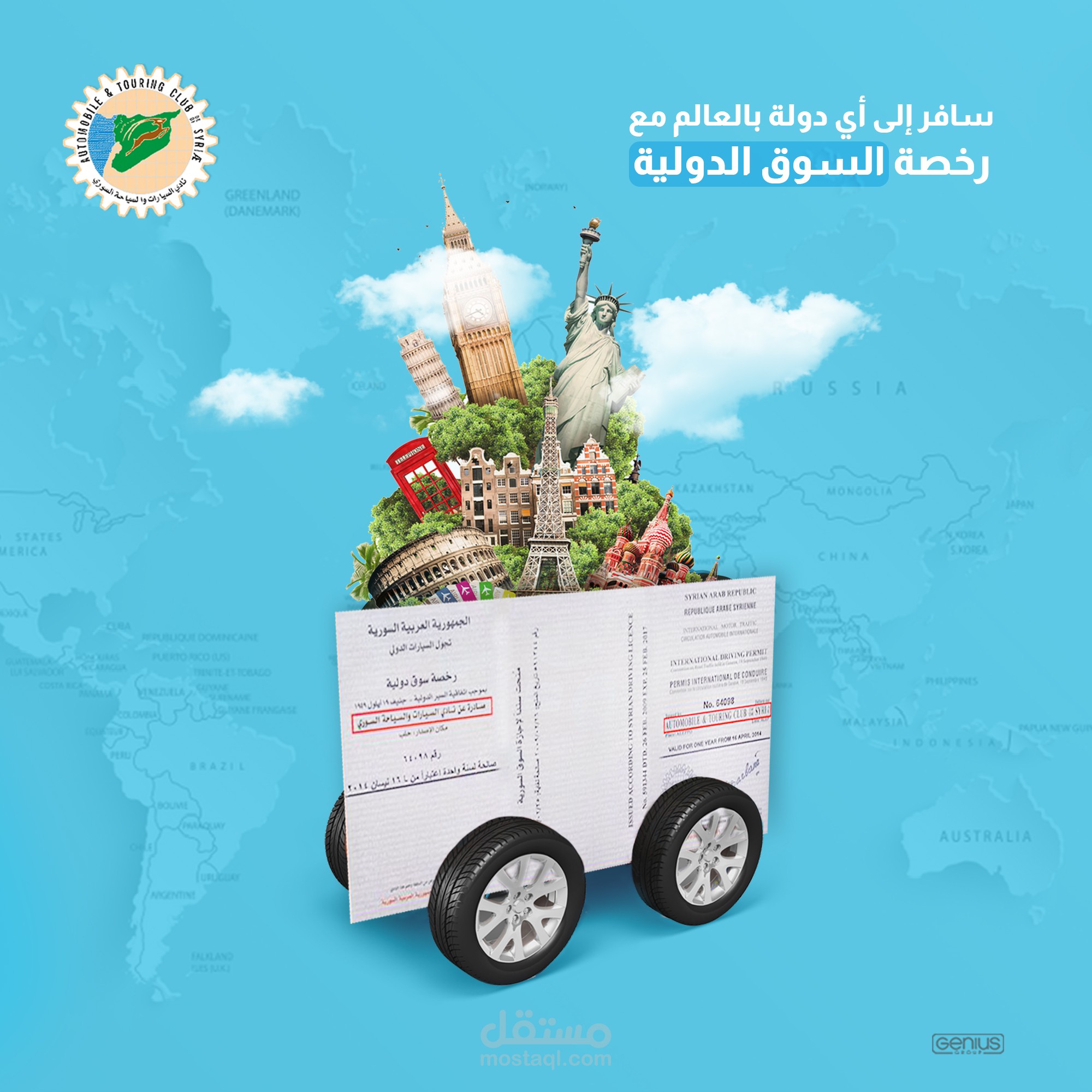 التصاميم الخاصة لنادي السيارات المختص في إصدار شهادات السوق الدولية و التوعية المرورية على الإنستغرام والفيسبوك