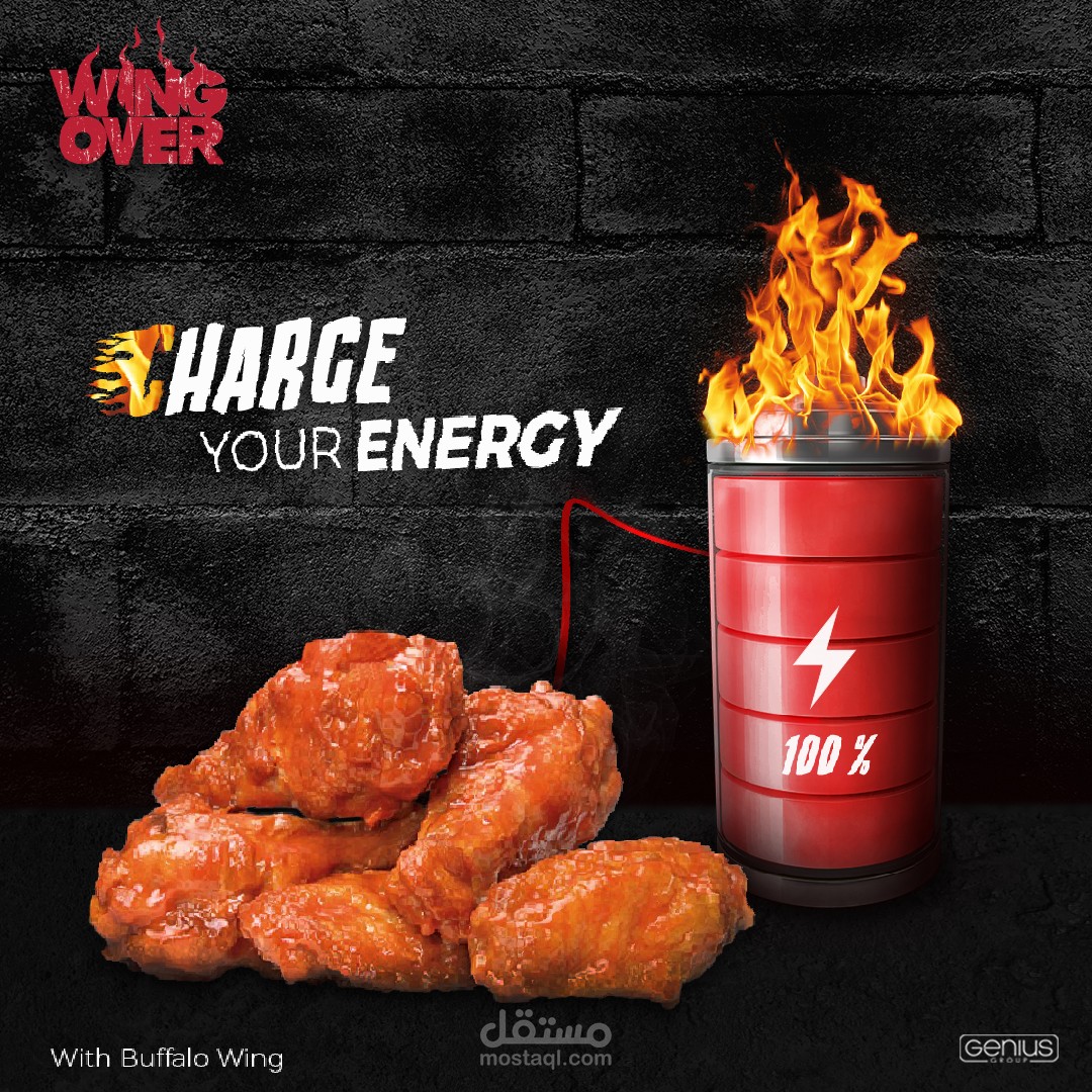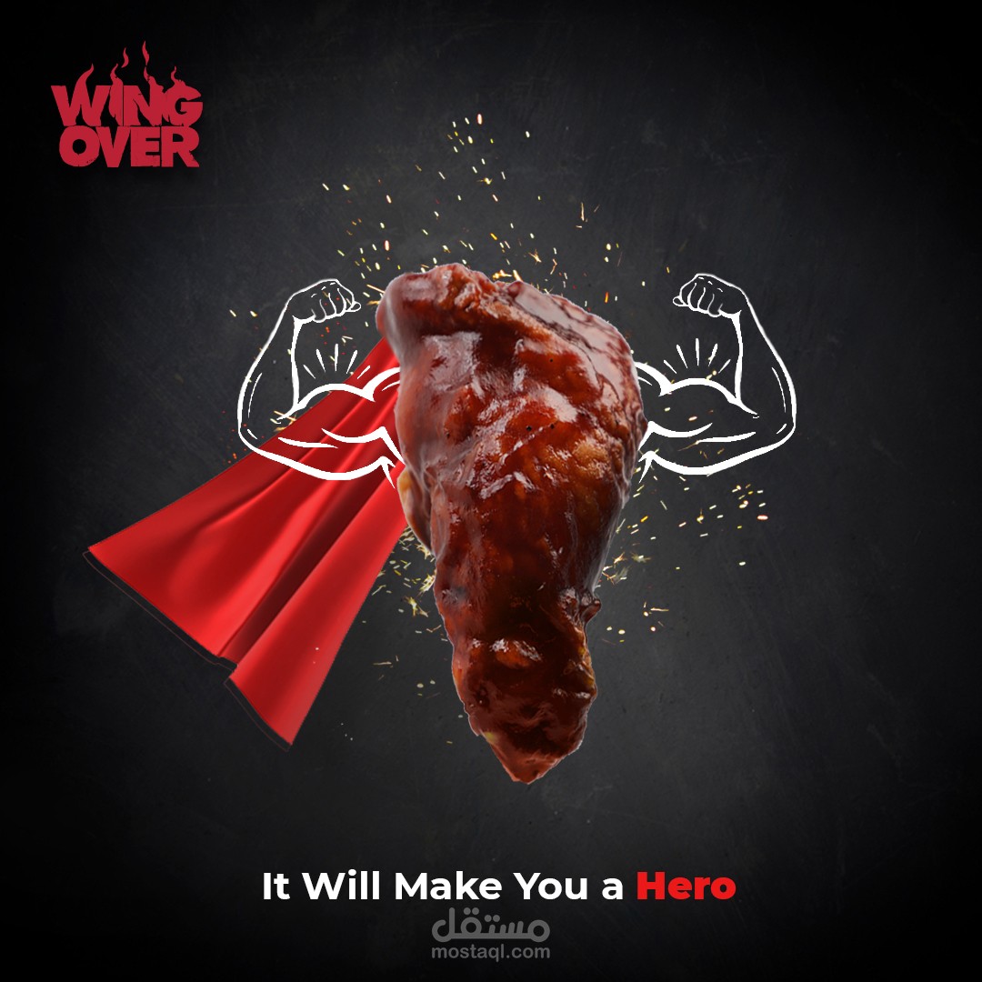 التصاميم الخاصة بمطعم Wing over على الفيسبوك والانستغرام