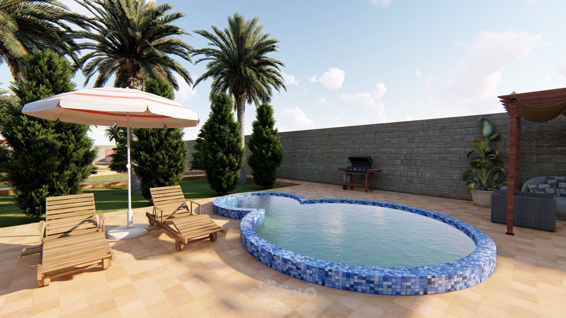 تم تصميم هذا المشروع لاحد عملاء مستقل و هو عبارة عن مزرعة بداخلها استراحة
